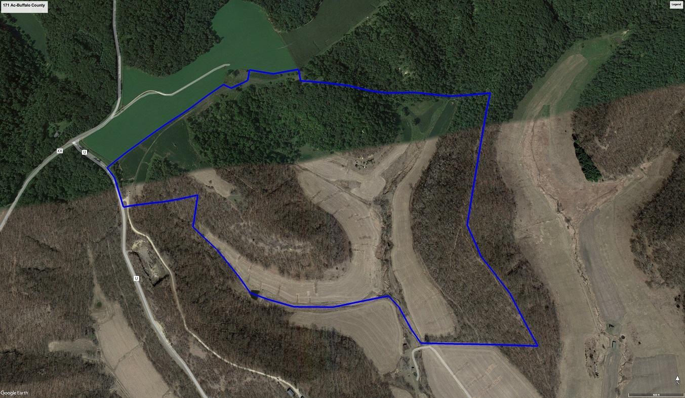 171 Acre hunting property located in the heart of Buffalo County. Property features a large ridge system that provides incredible bedding areas, crop fields in the valleys that work perfectly for secluded food plots, and a creek flowing through the property. Property features top and bottom access for easy access, a trail system throughout, and bluffs with over 400 feet of elevation change that make this property hunt big! Located in a QDM neighborhood that has consistently produced some giant deer, this property is sure to produce world class hunting opportunities.