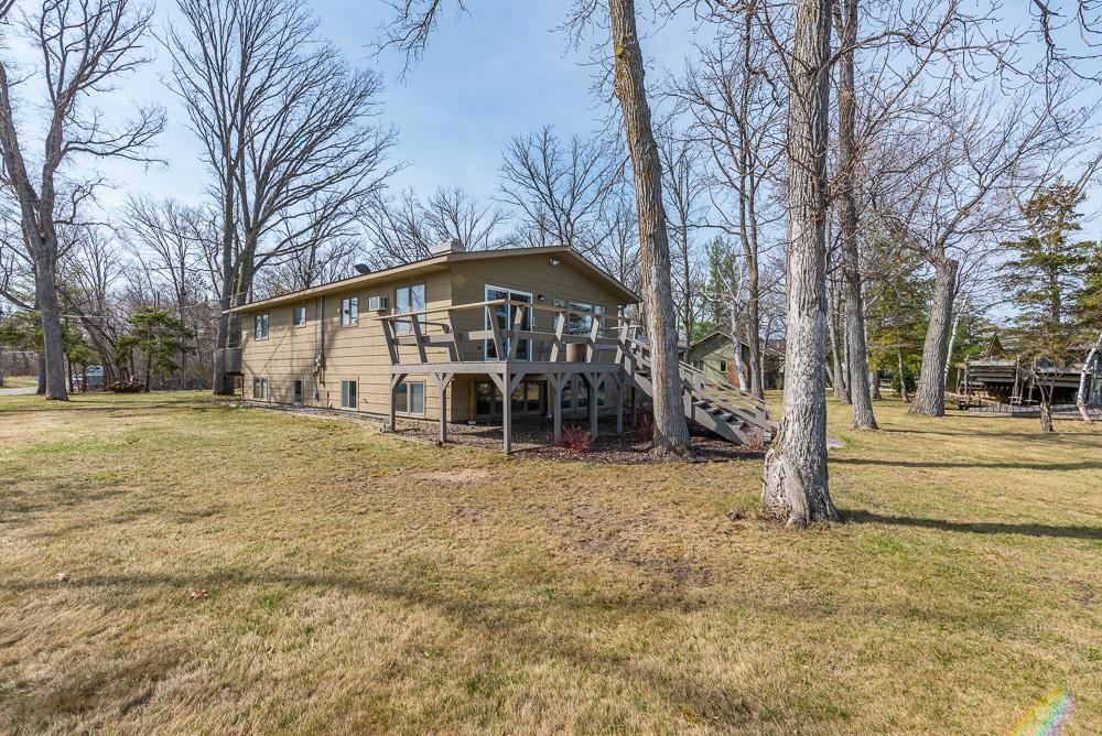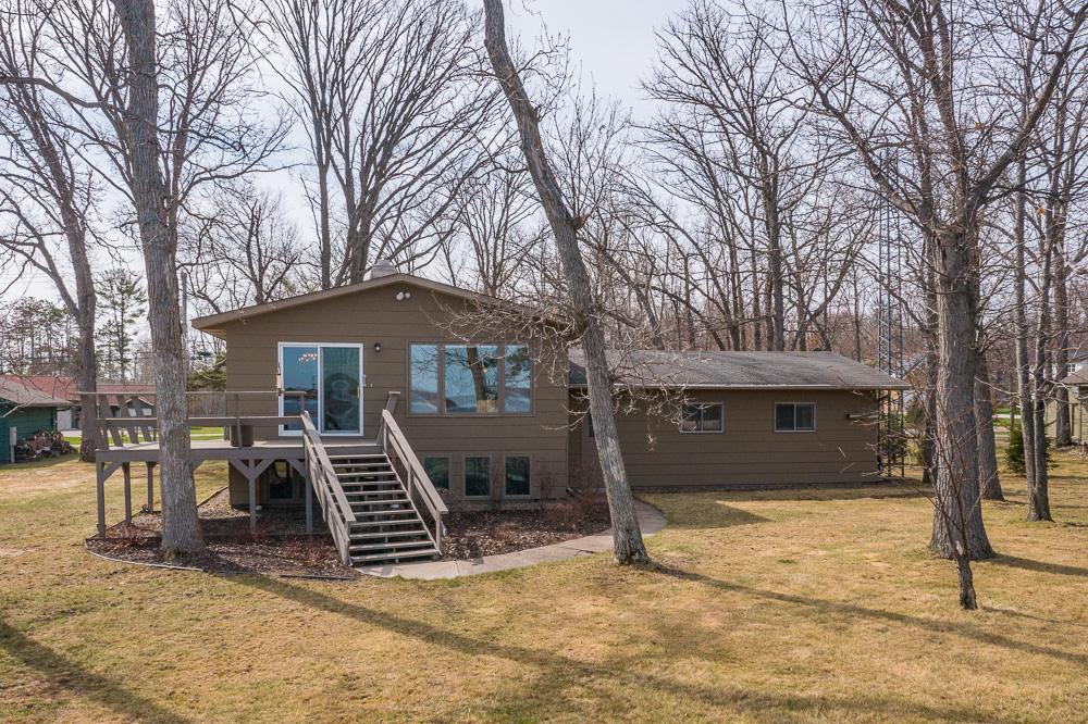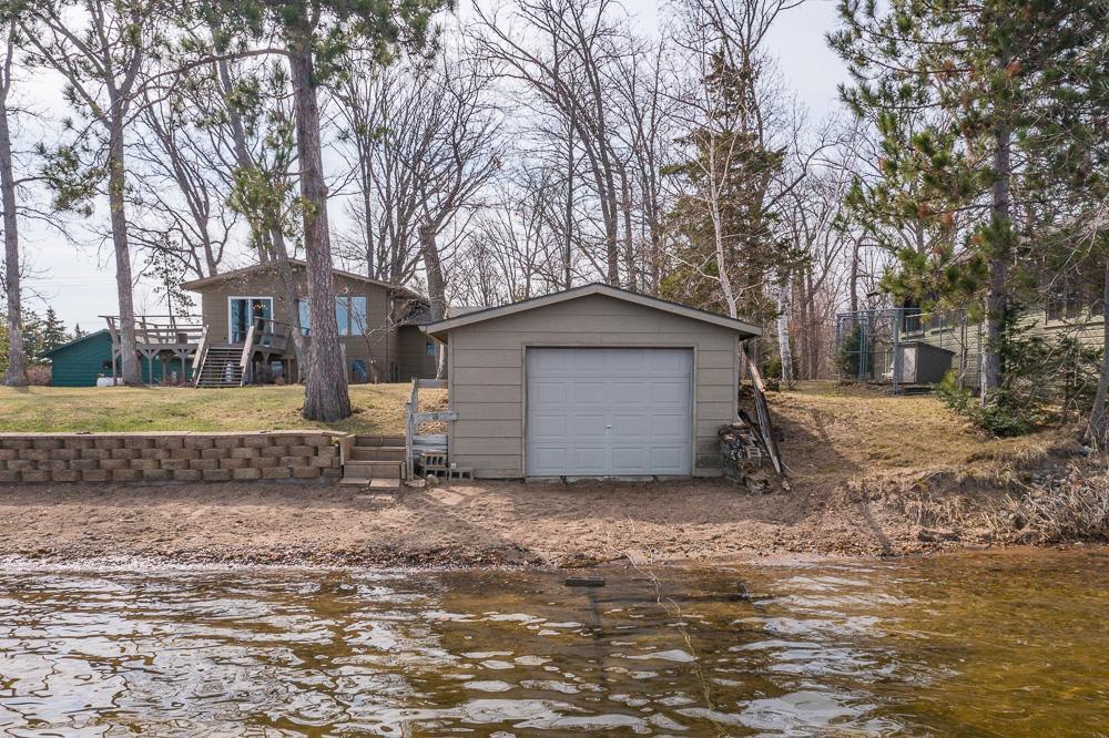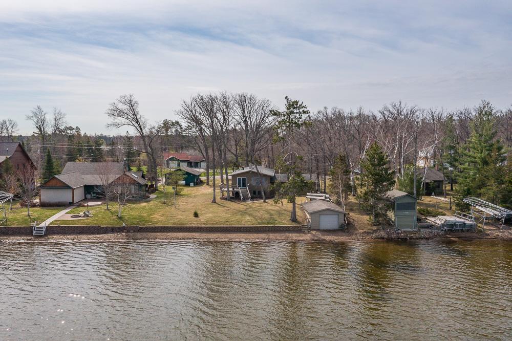 Life is better at the lake! Prime gold coast location on main Gull Lake featuring level elevation, sunsets and excellent sand beach. 5 BR, 2 BA, year round home w/ 2 FPs, attached double garage and lakeside deck is there to enjoy until you are ready to build your dream lake home. Property includes 15 x 26 boat house with track and winch system for boat storage, plus property across the road for extra garage space, city sewer and private water well.