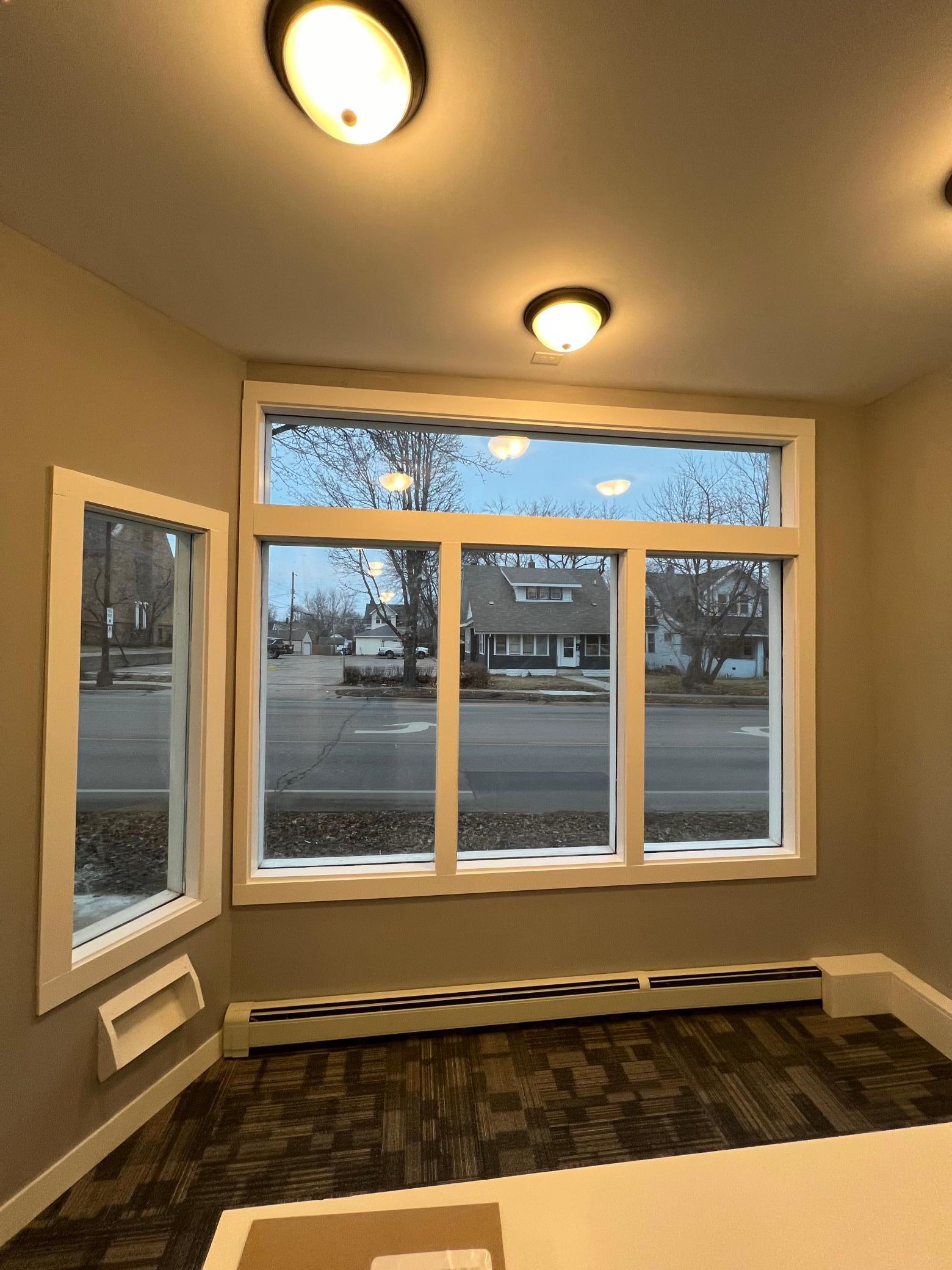 Come take a look at this Beautiful New office space for lease! There are 3 closed offices, an open reception area that doubles as an office if needed and a conference room that could also be an office. The small waiting area is right in front of the beautiful new windows and the bathroom is all the way in the back.... The wide part of the hallway will be finished with cabinets and will be perfect for a common area resource room. lease rate for each office is between $300 and $400 per month. Lease 1, 2 or 3 as shared offices or the whole place! High speed internet is included in the price.