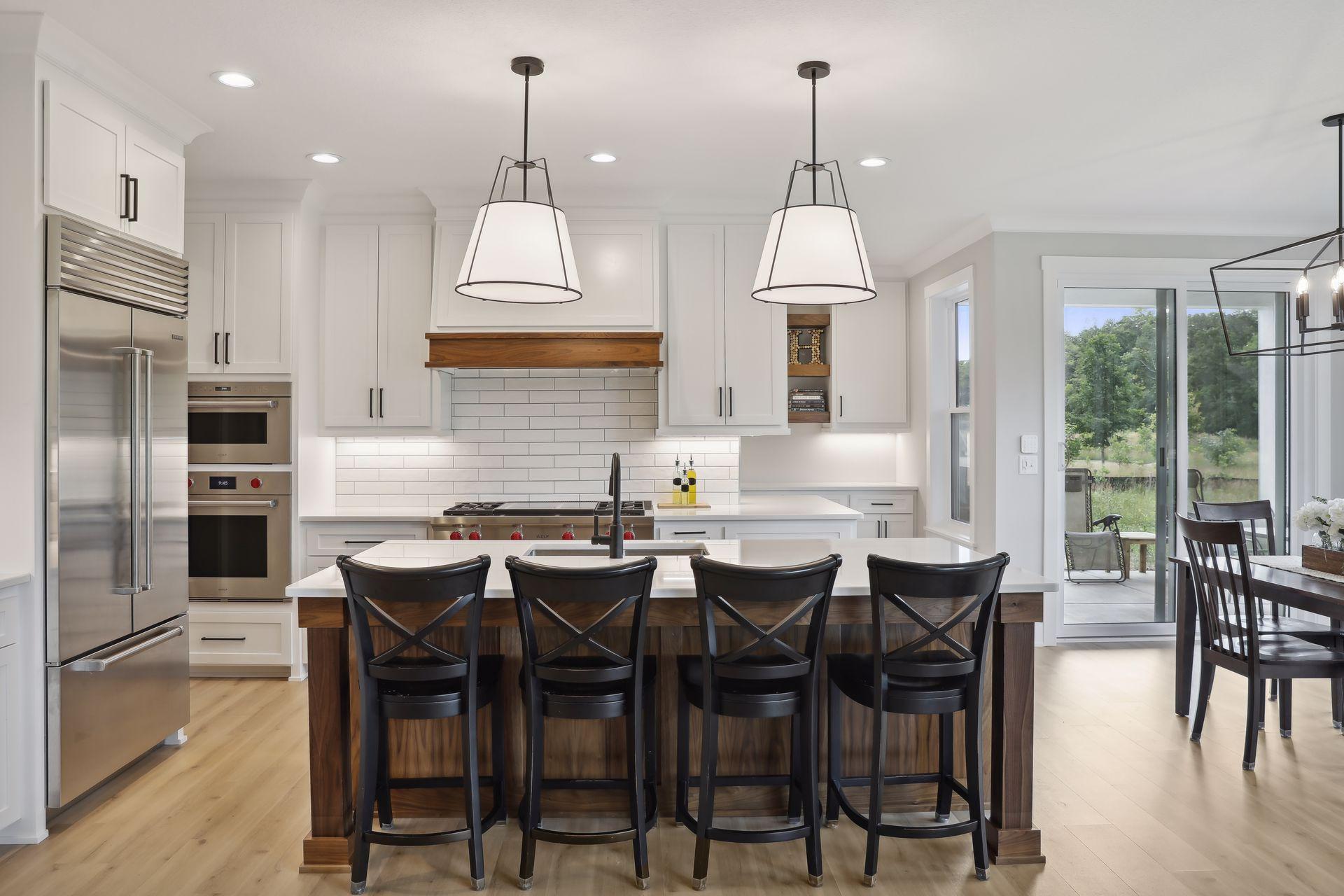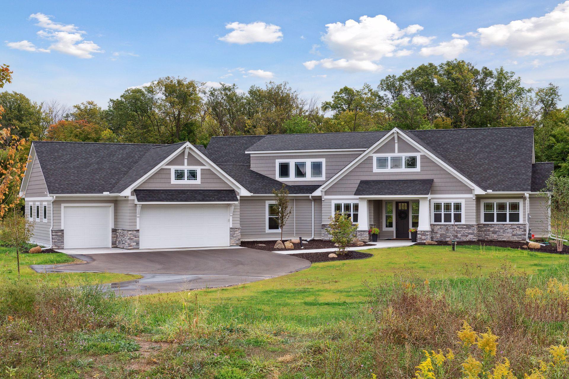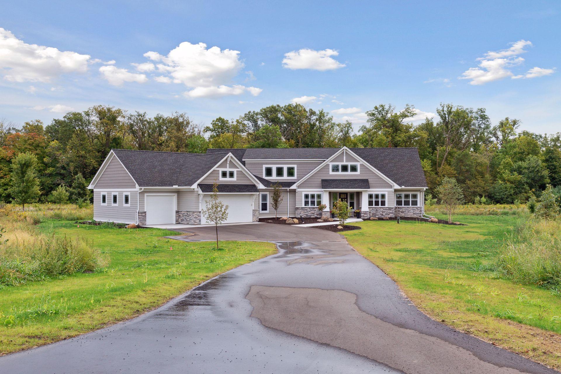 Public Remarks: Welcome to this beautiful newly completed 4BD 4BA custom Derrick built home situated on almost 2.5 acres & nestled in the Bluffs of the St. Croix River. Open concept floorplan soaks in the natural light. French doors lead to your front office space. Living area showcases gorgeous built-in cabinetry, coffered ceilings & gas fireplace. Kitchen features to-the-ceiling paneled, white cabinetry, Wolf & subzero appliances, butler’s pantry & slow close drawers. Informal dining opens to tongue & groove wood covered patio. Primary suite offers sizable walk-in closet & private bath w/dual sink vanity, a luxurious soaker tub & walk-in shower. Two additional bedrooms, joined by ¾ Jack & Jill bath, laundry room, mudroom & ½ bath complete the space. Upper-level living includes bedroom, bonus room, full bath & great room plumbed for wet bar & gas fireplace. Enjoy the spacious three-car garage w/front-back access, plenty of storage & workshop. See supplements for photos, 3D Tour, floorplans and more.