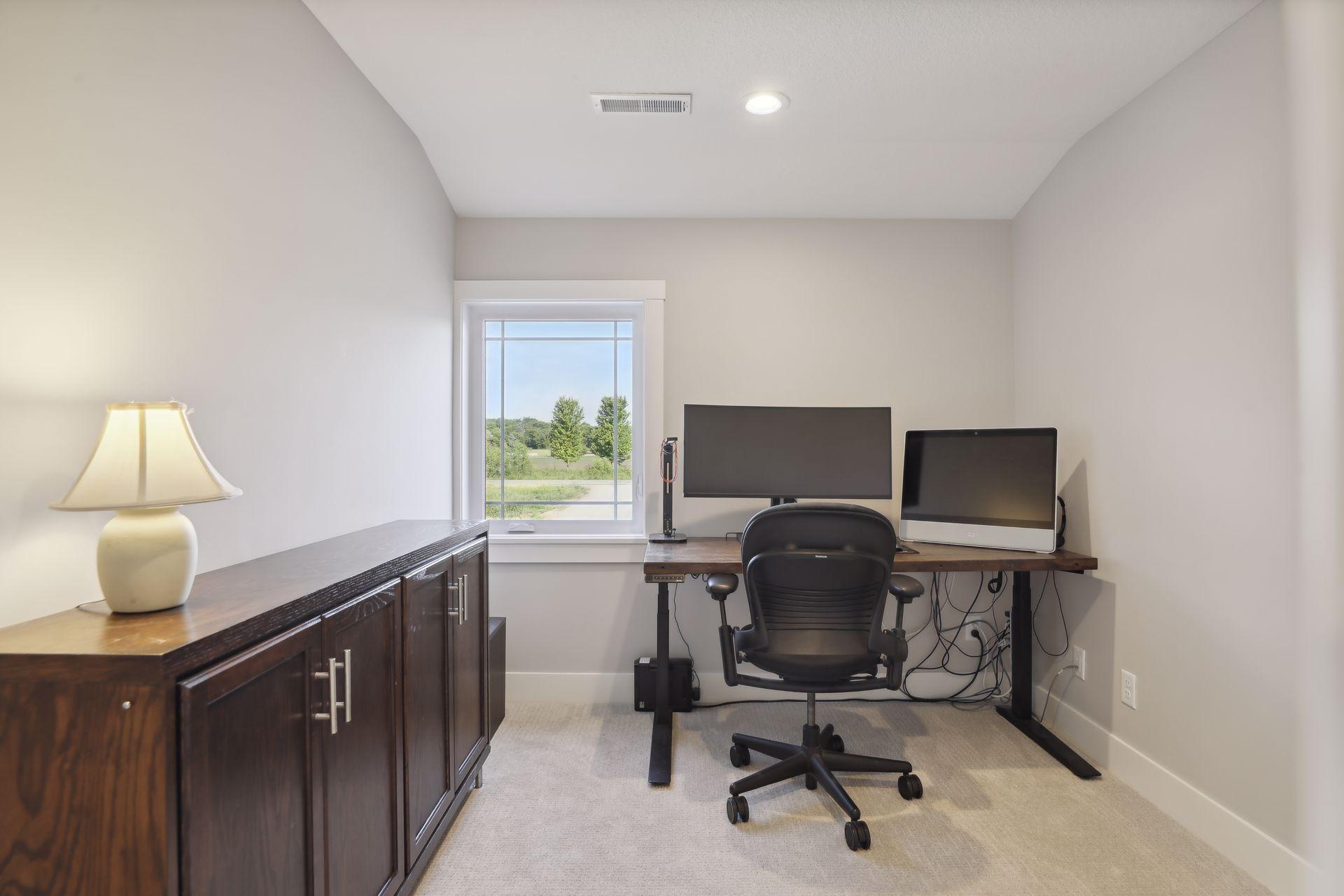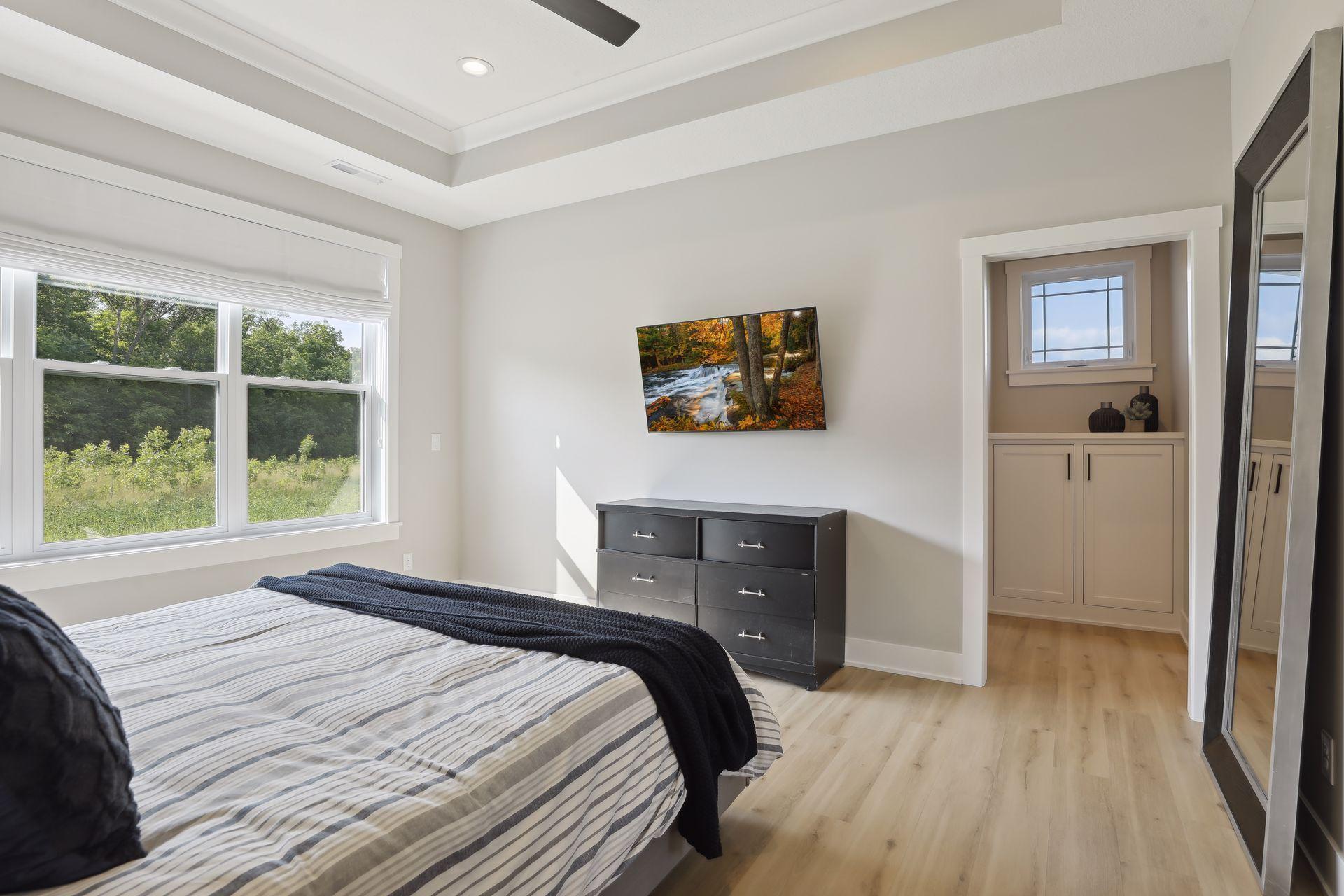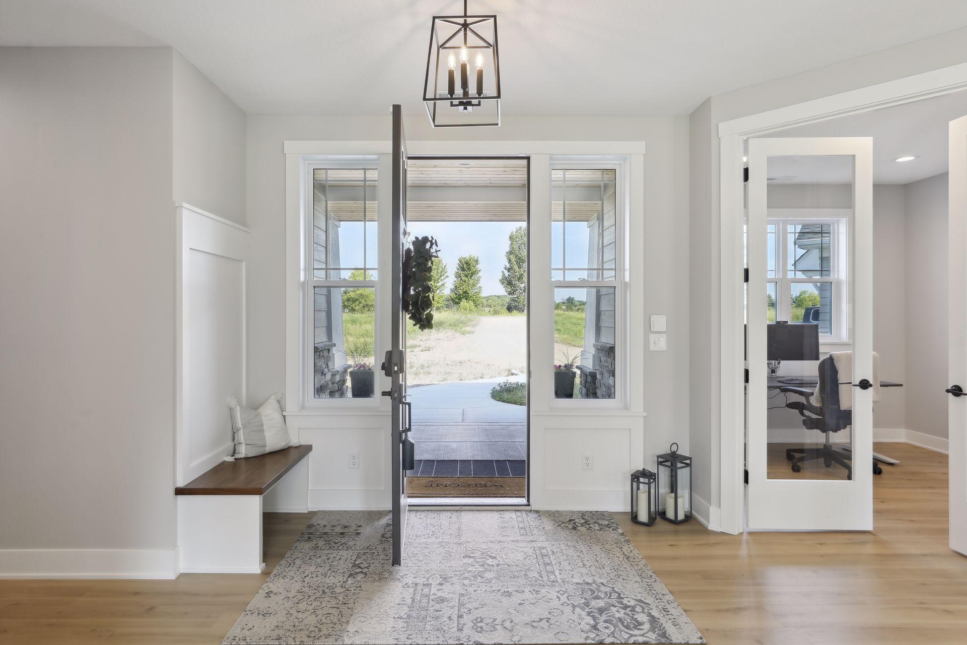 Public Remarks: Welcome to this beautiful newly completed 4BD 4BA custom Derrick built home situated on almost 2.5 acres & nestled in the Bluffs of the St. Croix River. Open concept floorplan soaks in the natural light. French doors lead to your front office space. Living area showcases gorgeous built-in cabinetry, coffered ceilings & gas fireplace. Kitchen features to-the-ceiling paneled, white cabinetry, Wolf & subzero appliances, butler’s pantry & slow close drawers. Informal dining opens to tongue & groove wood covered patio. Primary suite offers sizable walk-in closet & private bath w/dual sink vanity, a luxurious soaker tub & walk-in shower. Two additional bedrooms, joined by ¾ Jack & Jill bath, laundry room, mudroom & ½ bath complete the space. Upper-level living includes bedroom, bonus room, full bath & great room plumbed for wet bar & gas fireplace. Enjoy the spacious three-car garage w/front-back access, plenty of storage & workshop. See supplements for photos, 3D Tour, floorplans and more.