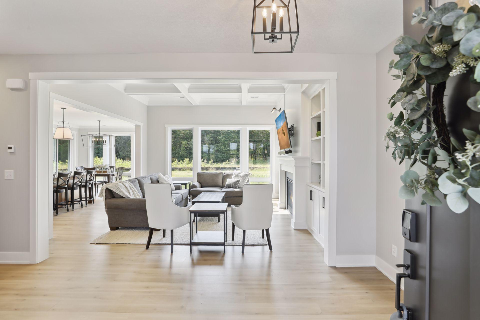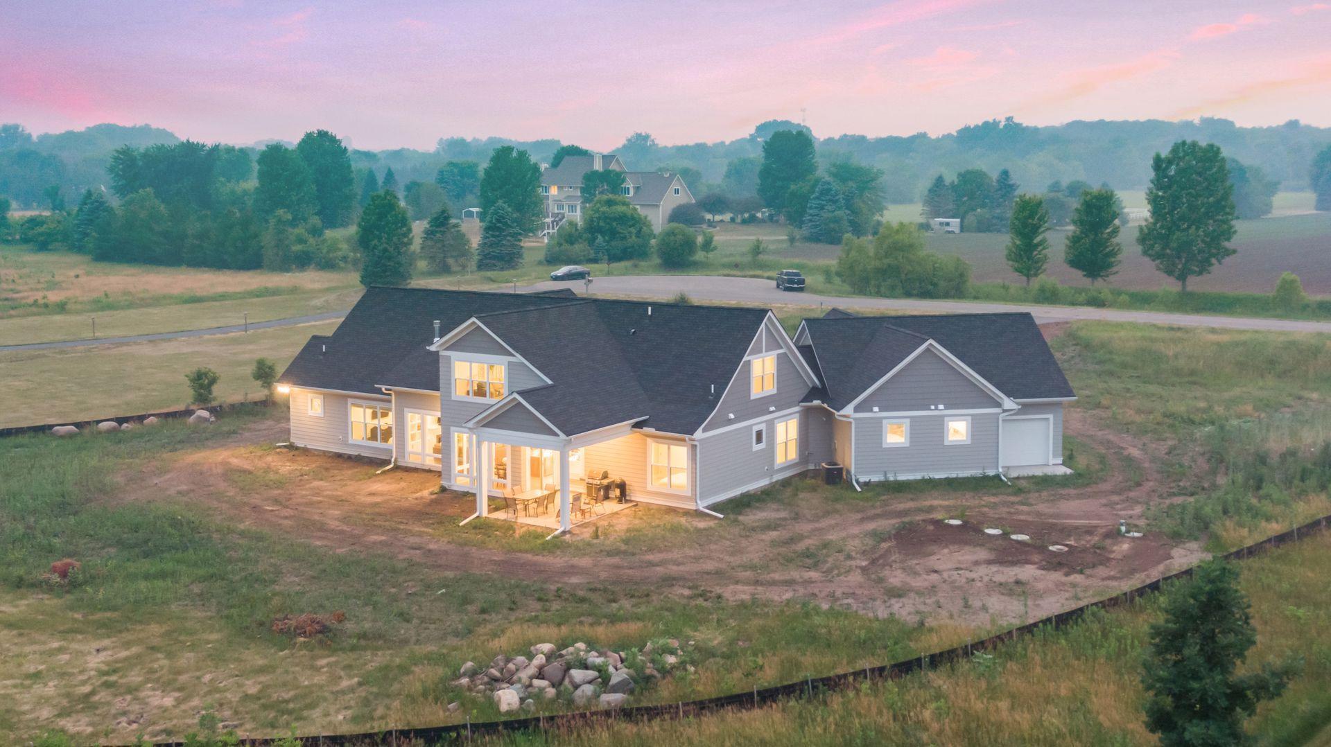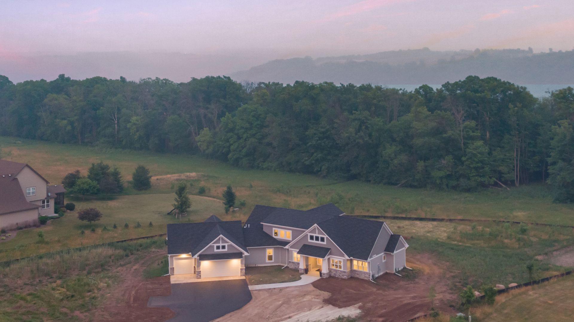 Welcome to this beautiful newly completed 4BD 4BA custom Derrick built home situated on almost 2.5 acres & nestled in the Bluffs of the St. Croix River. Open concept floorplan soaks in the natural light. French doors lead to your front office space. Living area showcases gorgeous built-in cabinetry, coffered ceilings & gas fireplace. Kitchen features to-the-ceiling paneled, white cabinetry, Wolf & subzero appliances, butler’s pantry & slow close drawers. Informal dining opens to tongue & groove wood covered patio. Primary suite offers sizable walk-in closet & private bath w/dual sink vanity, a luxurious soaker tub & walk-in shower. Two additional bedrooms, joined by ¾ Jack & Jill bath, laundry room, mudroom & ½ bath complete the space. Upper-level living includes bedroom, bonus room, full bath & great room plumbed for wet bar & gas fireplace. Enjoy the spacious three-car garage w/front-back access, plenty of storage & workshop. See supplements for photos, 3D Tour, floorplans and more.