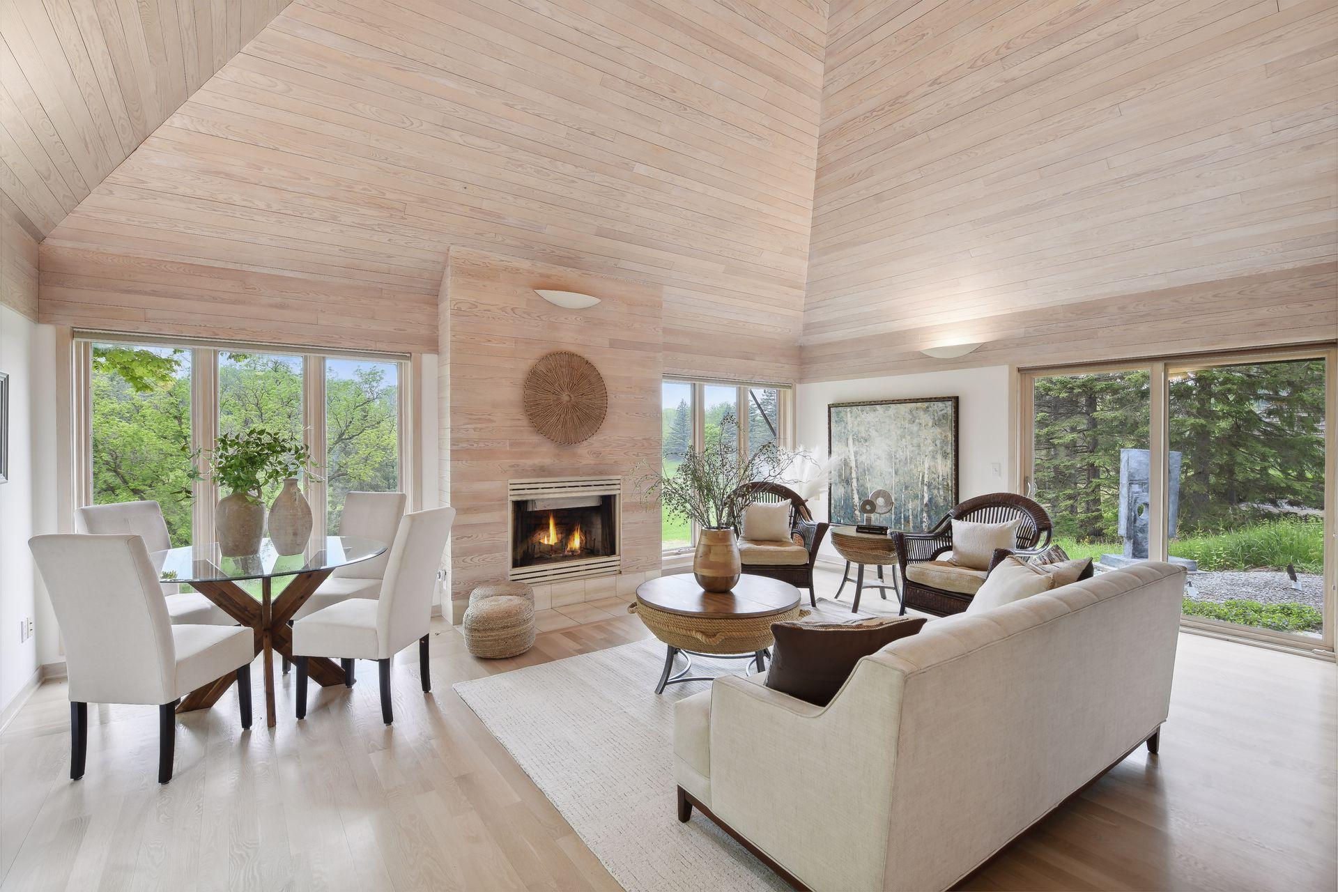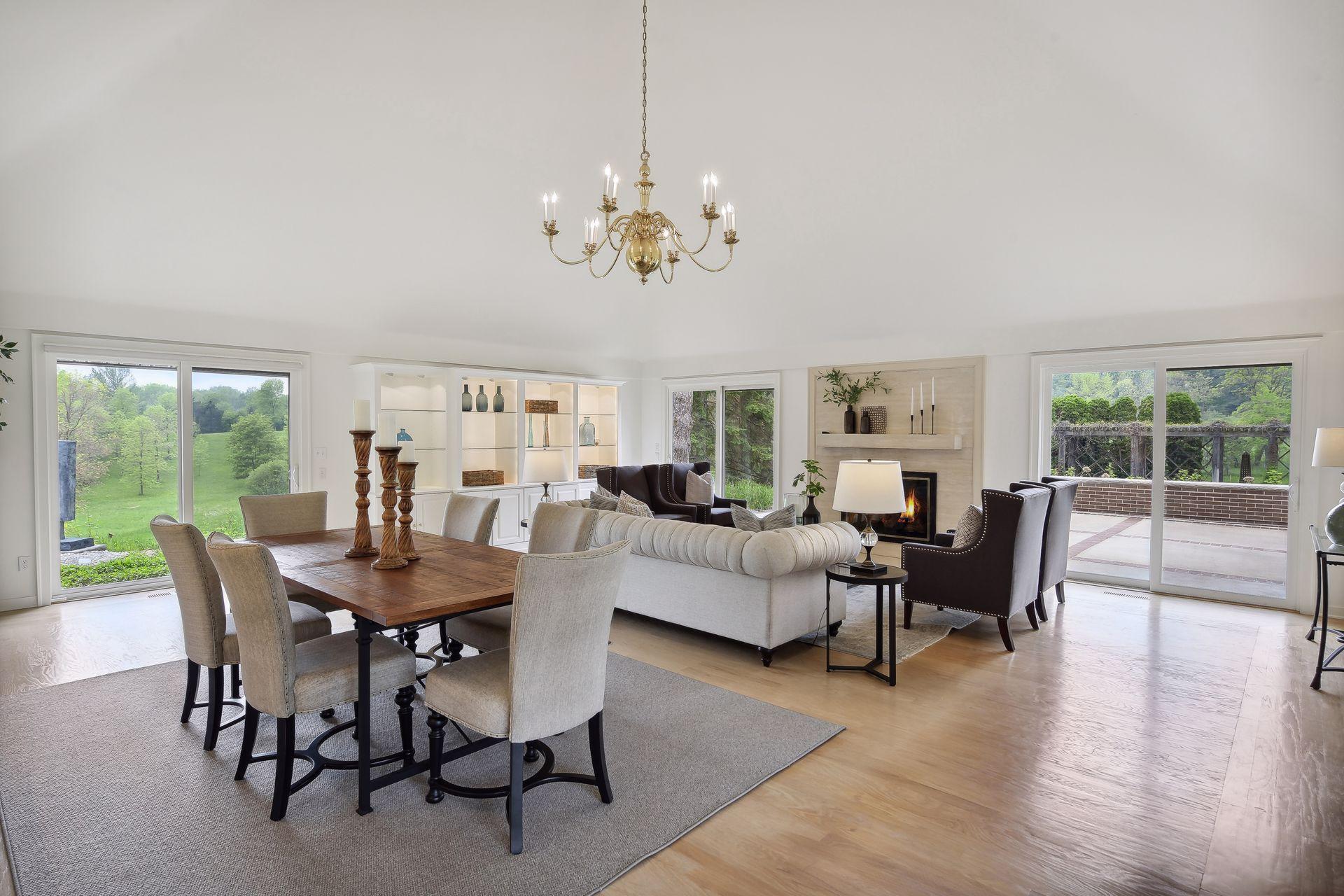 Exquisite 3.5-acre private country estate nestled in a coveted close-in location. This remarkable residence boasts charming architectural elements, including vaulted living areas enhanced by wood-burning fireplaces that open to the breathtaking grounds. The luxurious main-level owner’s suite is complemented by two additional bedrooms. The upper level provides a bedroom with an ensuite bathroom perfect for privacy and convenience. The lower level holds unlimited potential, currently featuring a den/game room, wine cellar and ample storage, awaiting your personal touch. Step outside to the enchanting outdoor oasis, where a stunning pool, extensive patio areas, gazebo and pool house invite relaxation and entertainment. Enjoy the picturesque surroundings of rolling meadows and a serene pond. The property offers two detached garages, providing ample parking for up to six vehicles. Located within the highly rated Orono School District.
