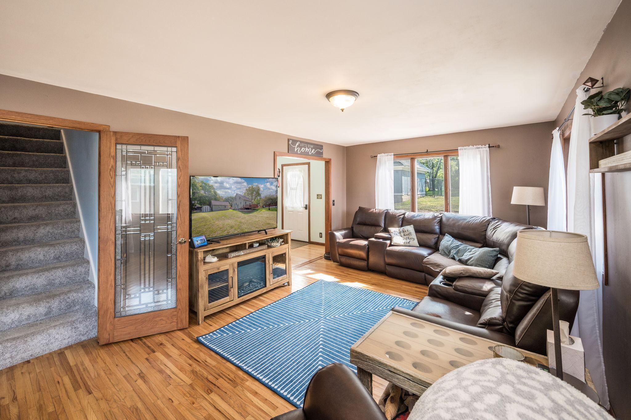 If you want privacy you'll want to check out this well kept two bedroom home locarted on the west edge of Blue Earth. The dining/living room have hardwood floors and open to the spacious back deck. The basement has family room and office area with built in shelving. Outside is nicely landscaped with an oversized single garage and storage shed.