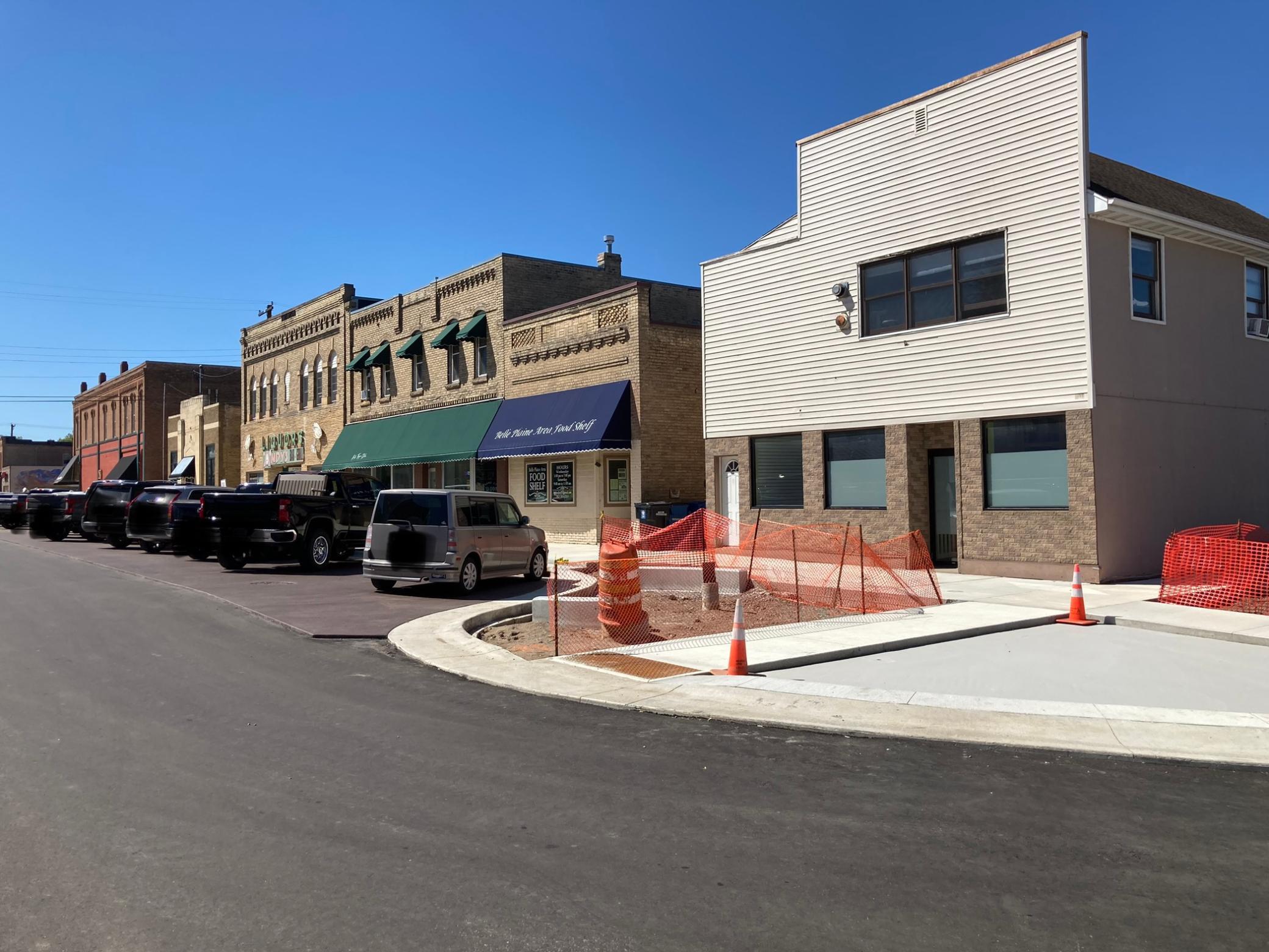 Wonderful corner lot commercial space for rent in downtown Belle Plaine! 1500 sq ft, brand new road, curb and sidewalk almost complete. The 2x4's in the photos can be removed. Great place to have your business!!