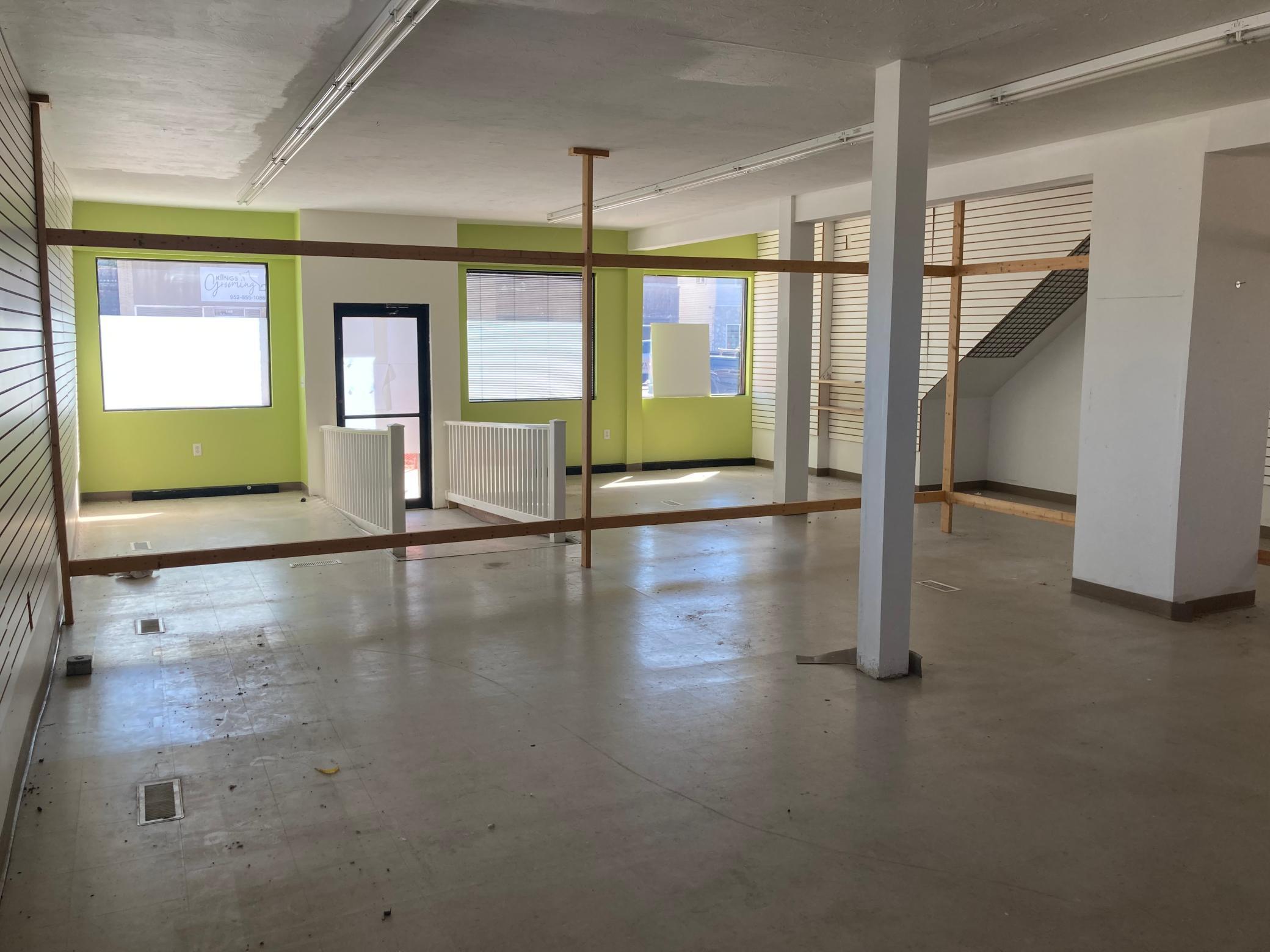 Public Remarks: Wonderful corner lot commercial space for rent in downtown Belle Plaine! 1500 sq ft, brand new road, curb and sidewalk almost complete. The 2x4's in the photos can be removed. Great place to have your business!!