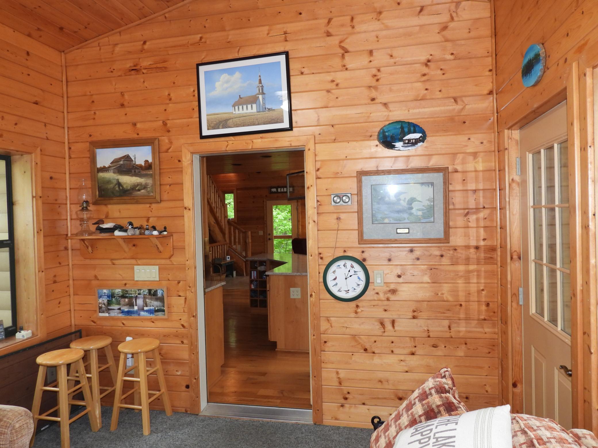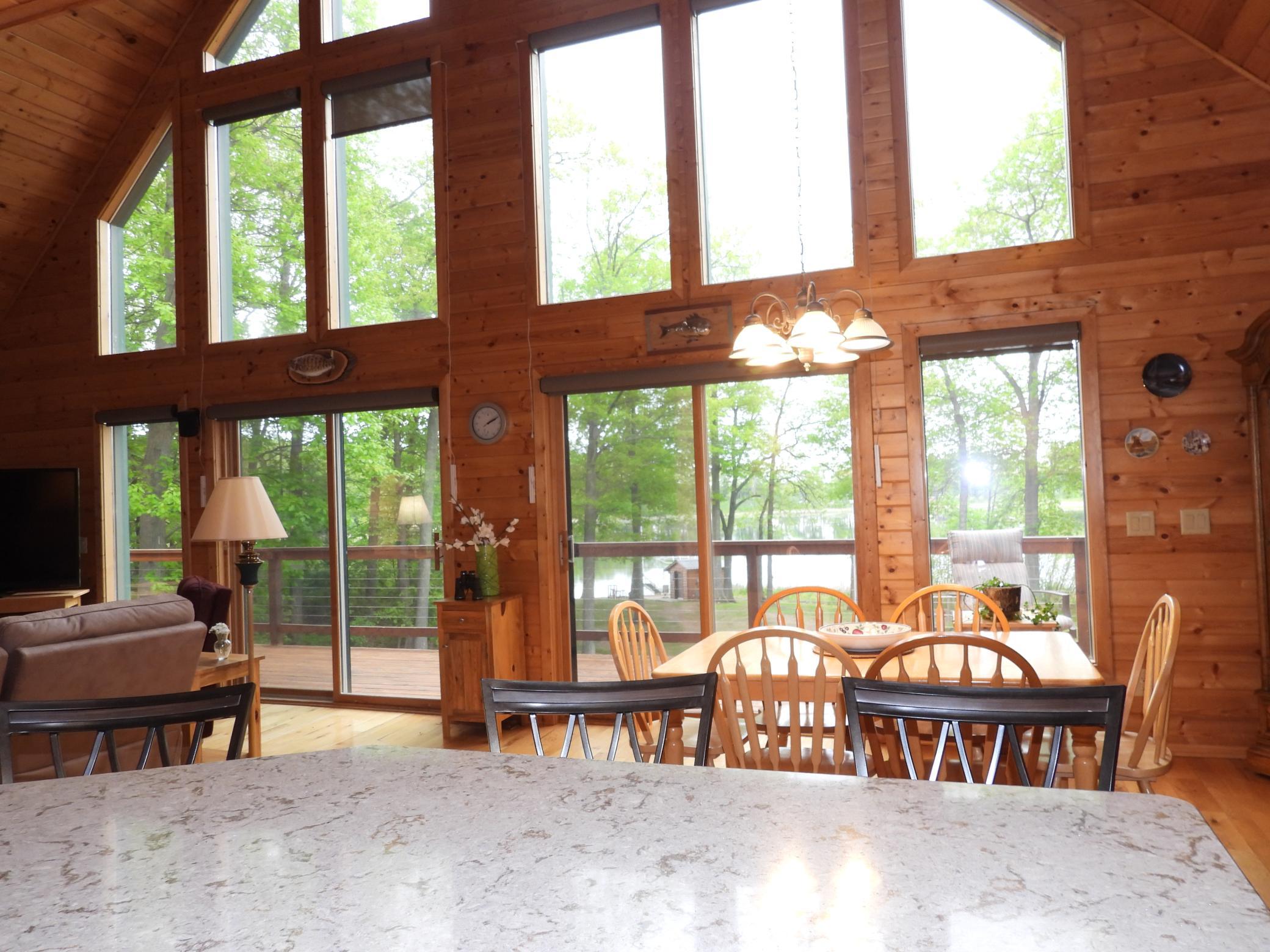 Amenities Unit: Cable; Ceiling Fan(s); Deck; Dock; Hardwood Floors; Kitchen Center Island; Main Floor Primary Bedroom; Natural Woodwork; Patio; Porch; Primary Bedroom Walk-In Closet; Security Lights; Security System; Sun Room; Vaulted Ceiling(s); Walk-In Closet; Wet Bar