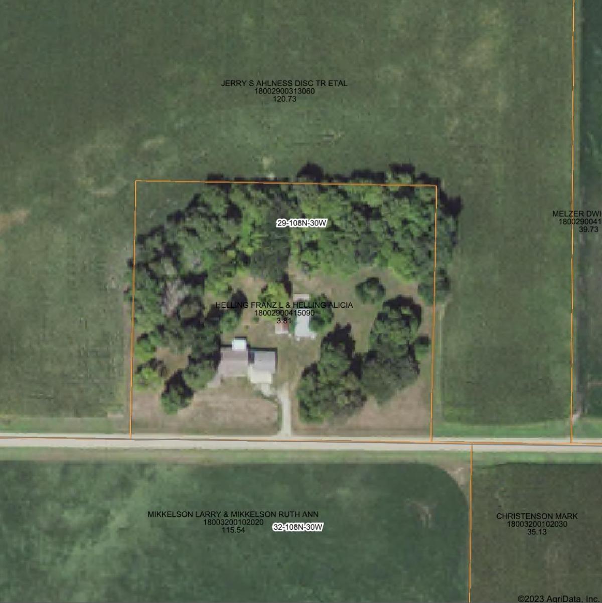 Legal Description: SECT-29 TWP-108 RANGE-030 3.81 AC PT OF SW4 OF SE4 CMCNG AT SE CORNER OF SECT 29; THEN S90 W ALNG S LINE OF SE4 1525' TO IRON PIPE MONUMENT BEING POB; THEN CONT S90 W ALNG S LINE 440' TO IRON PIPE MONUMENT; THEN N00 E 377' TO IRON PIPE MONUMENT; N90 E 440' TO IRON