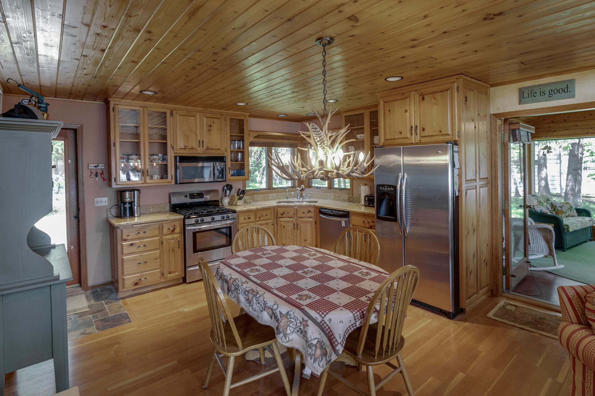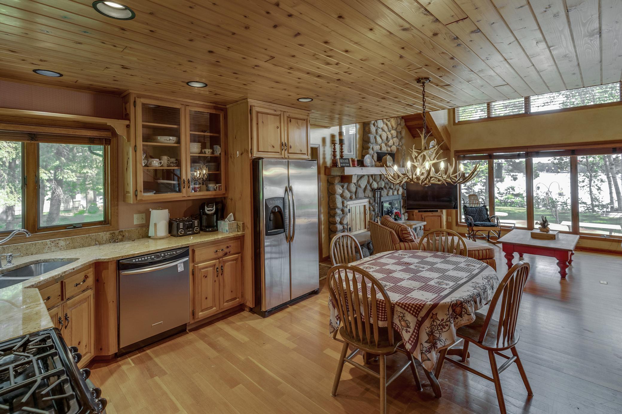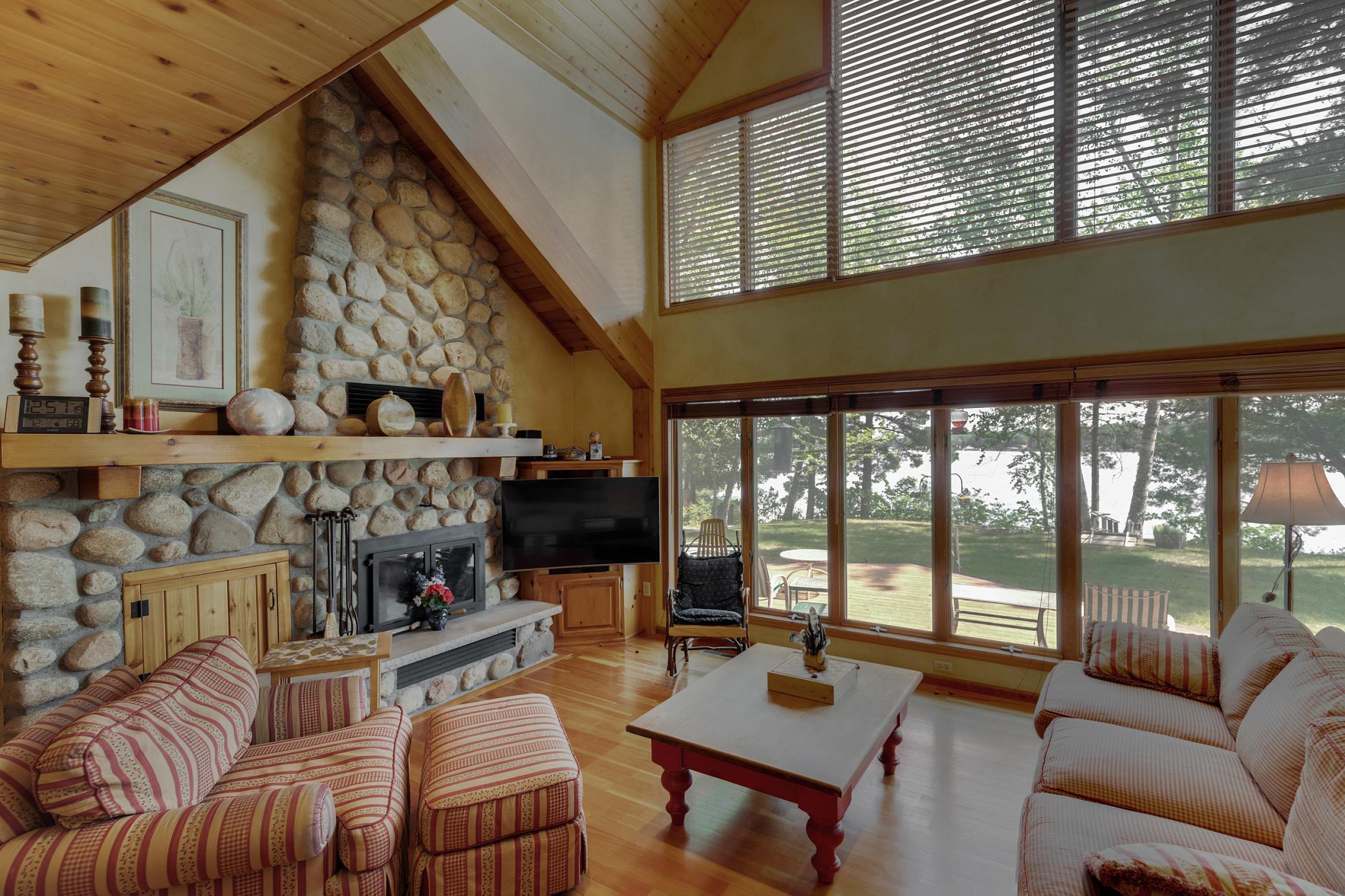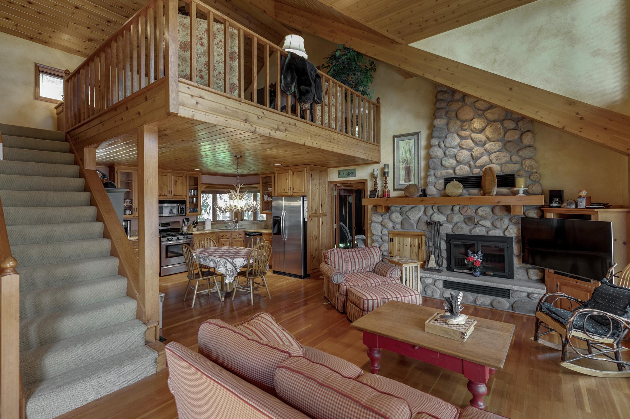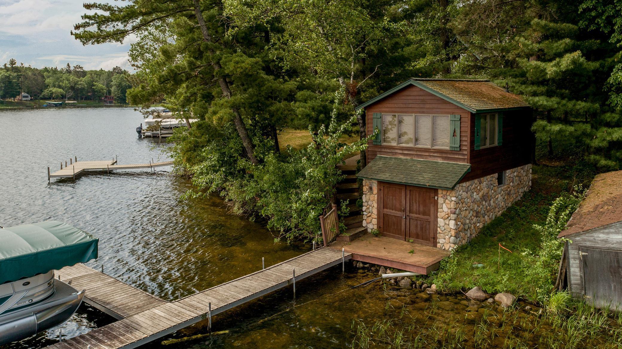 Public Remarks: Up-north Daggett Lake retreat on a pine studded .89 acre lot with 151 feet of frontage on the Whitefish Chain. This property features a beautiful cedar sided lake home with a wood burning stone fireplace, vaulted ceilings, a 16x14 screen porch, expansive lakeside deck, boathouse with an upper level bunk room, 2 detached garages with 4 stalls, upper level living quarters, workshop & upper level office area. All this and located on a quiet dead-end road with quick and easy access to all the amenities of Crosslake. The lower level bedroom window does not meet egress code and is not considered a legal bedroom.