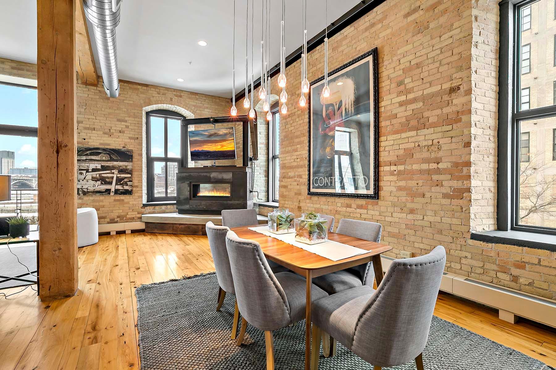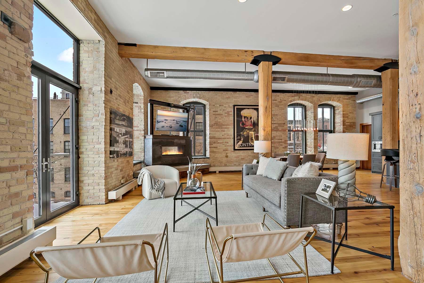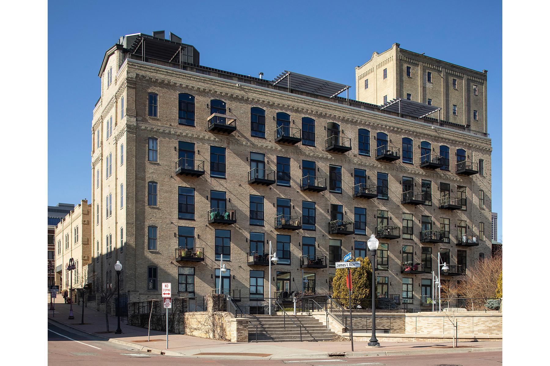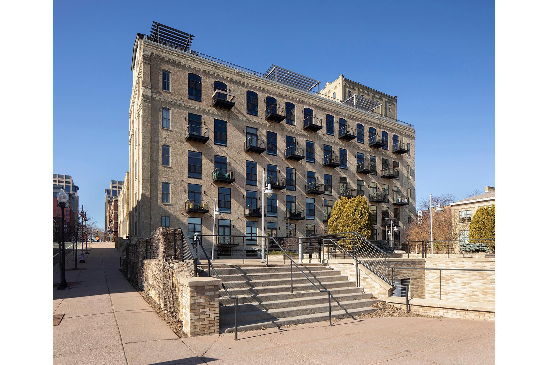 Welcome to 301 at the Whitney Landmark Residence! This condo features distinctive finishes, beautiful views of the river, Stone Arch Bridge and more. As a corner unit, an extraordinary amount of light fills the home. The open floor plan features a spacious living room area with the first of two balconies, a custom, stunning fireplace, and beautiful river views. The dining space is large and offers opportunities for entertaining large groups. The kitchen is stunning, including Wolf range, bar, and great storage. There's also a storage/laundry room off the kitchen. A custom bar that complements the kitchen was added to the home. Primary bedroom features a private balcony, updated 3/4 bath, and amazing, large closet. There's a second bedroom and full hallway bath. Mudroom with storage and second entry. Two parking spots + storage. Walk to everything in the Mill District including The Guthrie, Gold Medal Park, Mill City Farmer's Market, retail, restaurants & the Stone Arch Bridge.