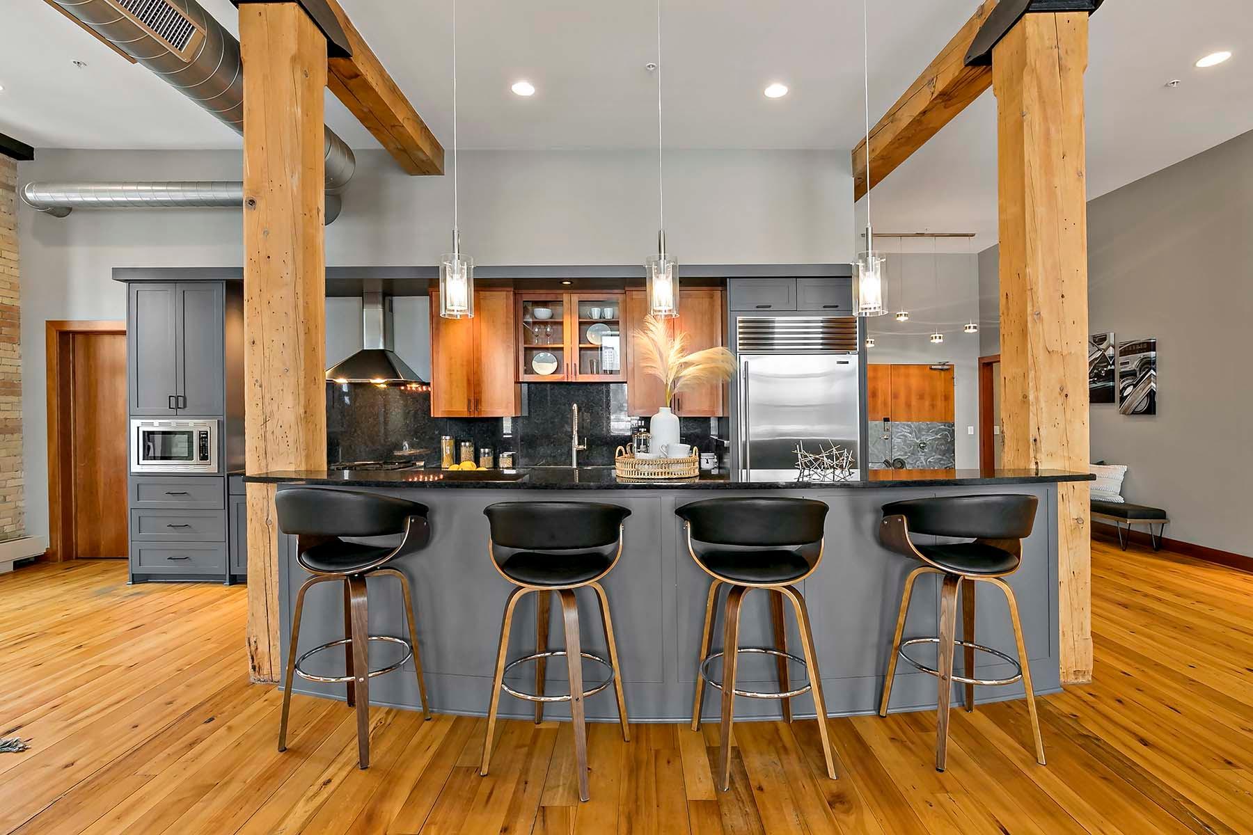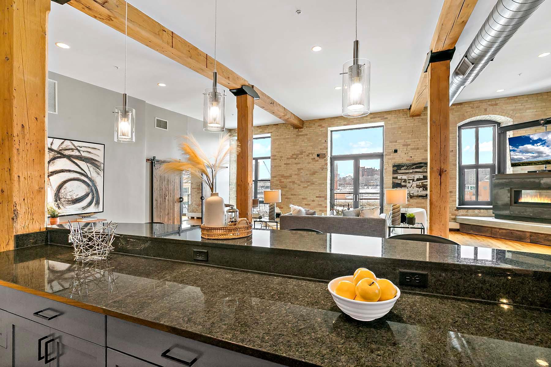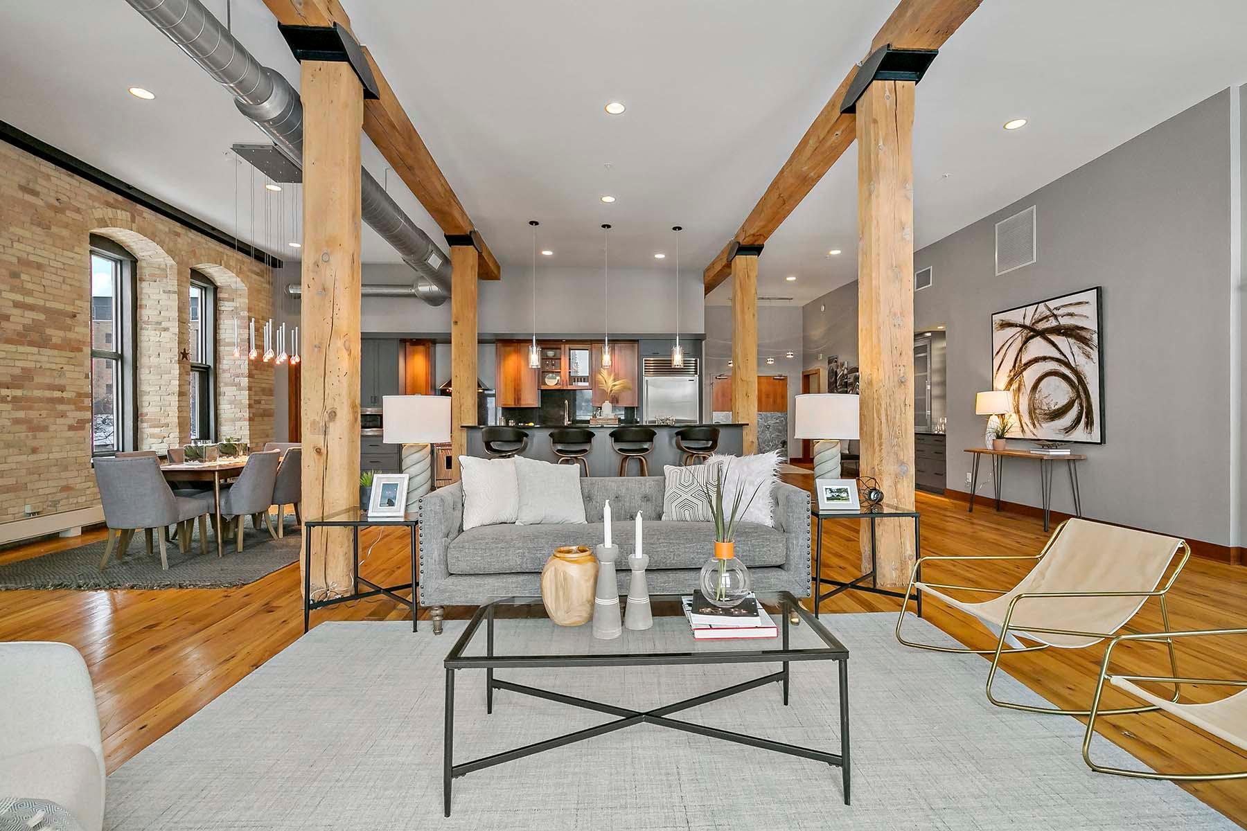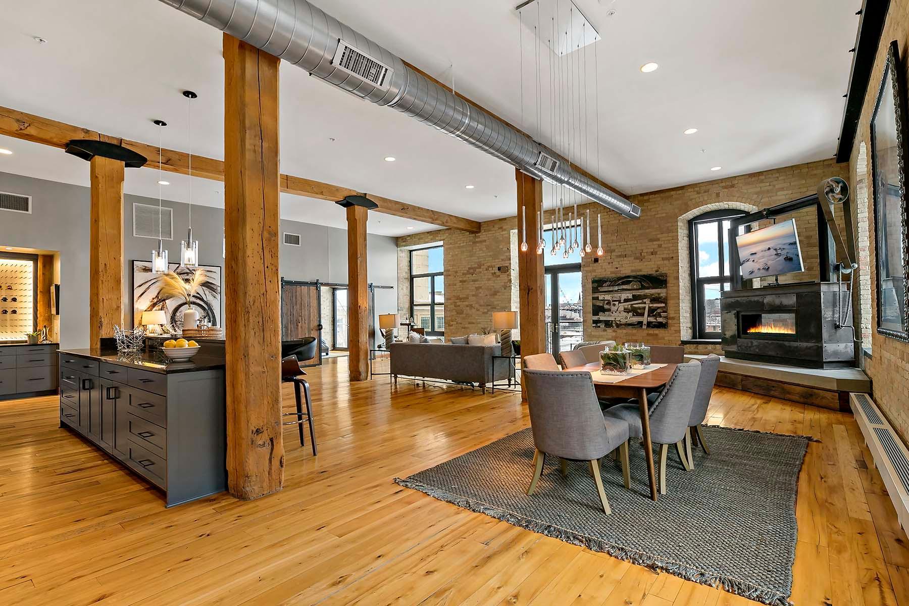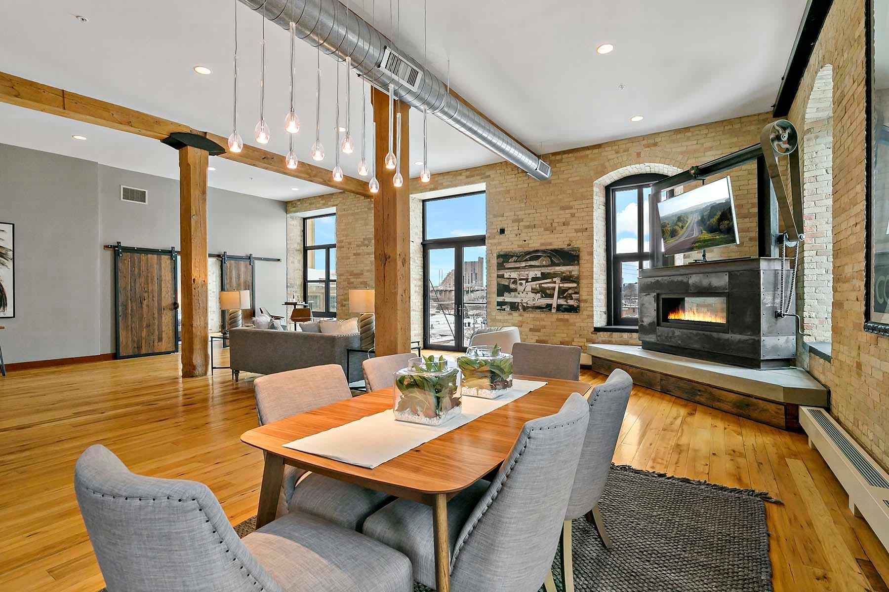 Welcome to 301 at the Whitney Landmark Residence! This condo features distinctive finishes, beautiful views of the river, Stone Arch Bridge and more. As a corner unit, an extraordinary amount of light fills the home. The open floor plan features a spacious living room area with the first of two balconies, a custom, stunning fireplace, and beautiful river views. The dining space is large and offers opportunities for entertaining large groups. The kitchen is stunning, including Wolf range, bar, and great storage. There's also a storage/laundry room off the kitchen. A custom bar that complements the kitchen was added to the home. Primary bedroom features a private balcony, updated 3/4 bath, and amazing, large closet. There's a second bedroom and full hallway bath. Mudroom with storage and second entry. Two parking spots + storage. Walk to everything in the Mill District including The Guthrie, Gold Medal Park, Mill City Farmer's Market, retail, restaurants & the Stone Arch Bridge.