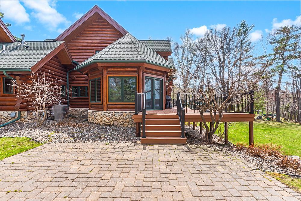 Public Remarks: Located just 2 hours from The Cities, this breathtaking 6BR-5 bath AUTHENTIC LOG lake home offers level elevation to 234' of shoreline, nice sand lake bottom, SUNSETS and plenty of room for entertaining w/ over 6,000sf of living space! Enjoy…a welcoming covered porch entry; breathtaking views through walls of lakeside glass; soaring cathedral log-beamed ceilings; stunning gas stone fireplace; hardwood floors; T&G knotty pine & log interior; spacious gourmet kitchen w/ Viking SS appliances-abundant custom cabinetry-granite c’tops; gazebo-styled 4-season sunroom; lakeside deck; lakeside owner’s suite w/ deluxe bath-fireplace-private deck; main level ensuite guest room; upper-level: 2 large bedrooms-bath-loft/sitting area; lower level: large family/rec. room, wood-burning stone FP, wet bar, 2 bedrooms & bath; 30x24 insulated & heated garage that leads to the back hall w/ mudroom, 1/2 bath & laundry room; beautifully treed 2+ acres…tranquility on one of the area’s most sought after lakes!