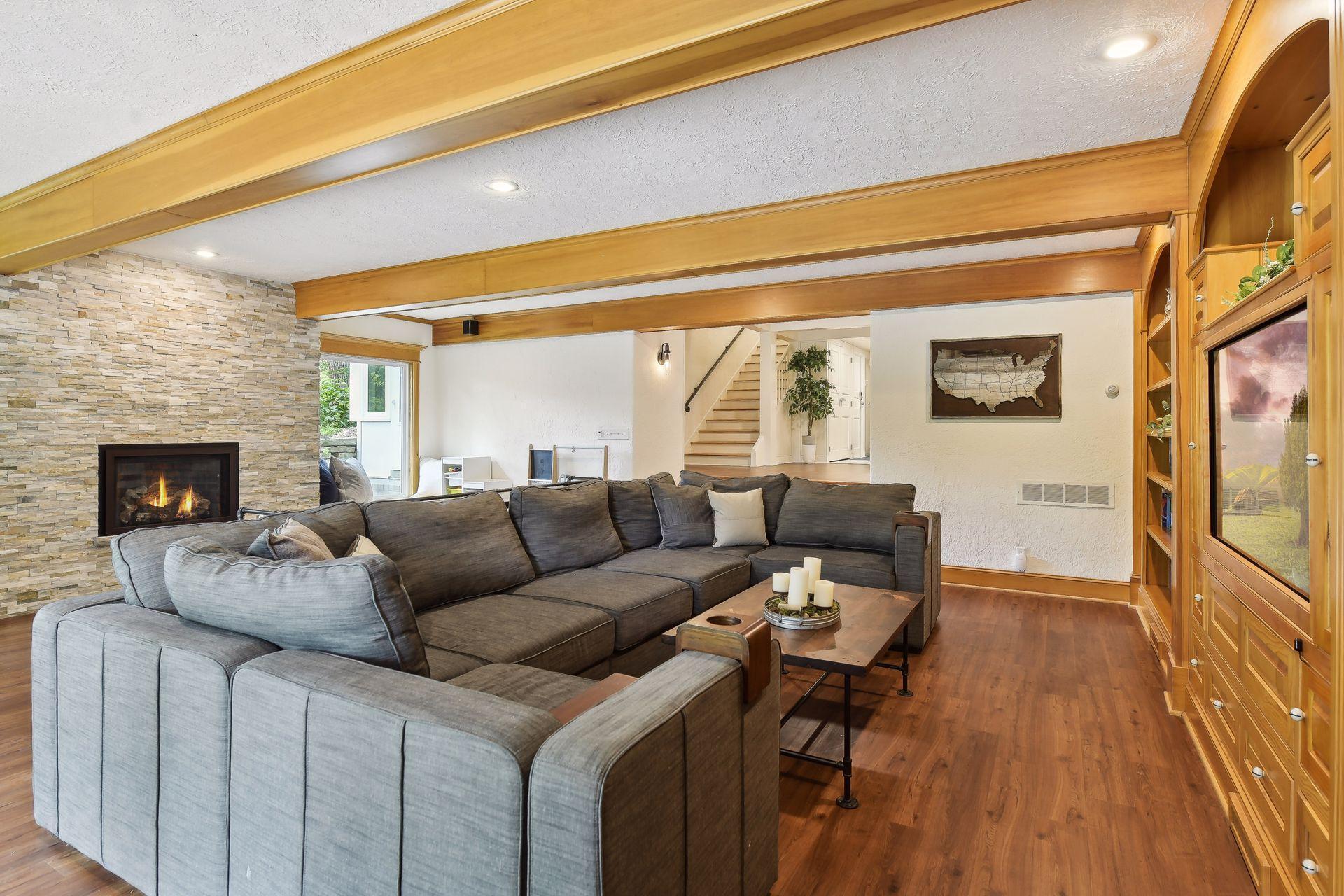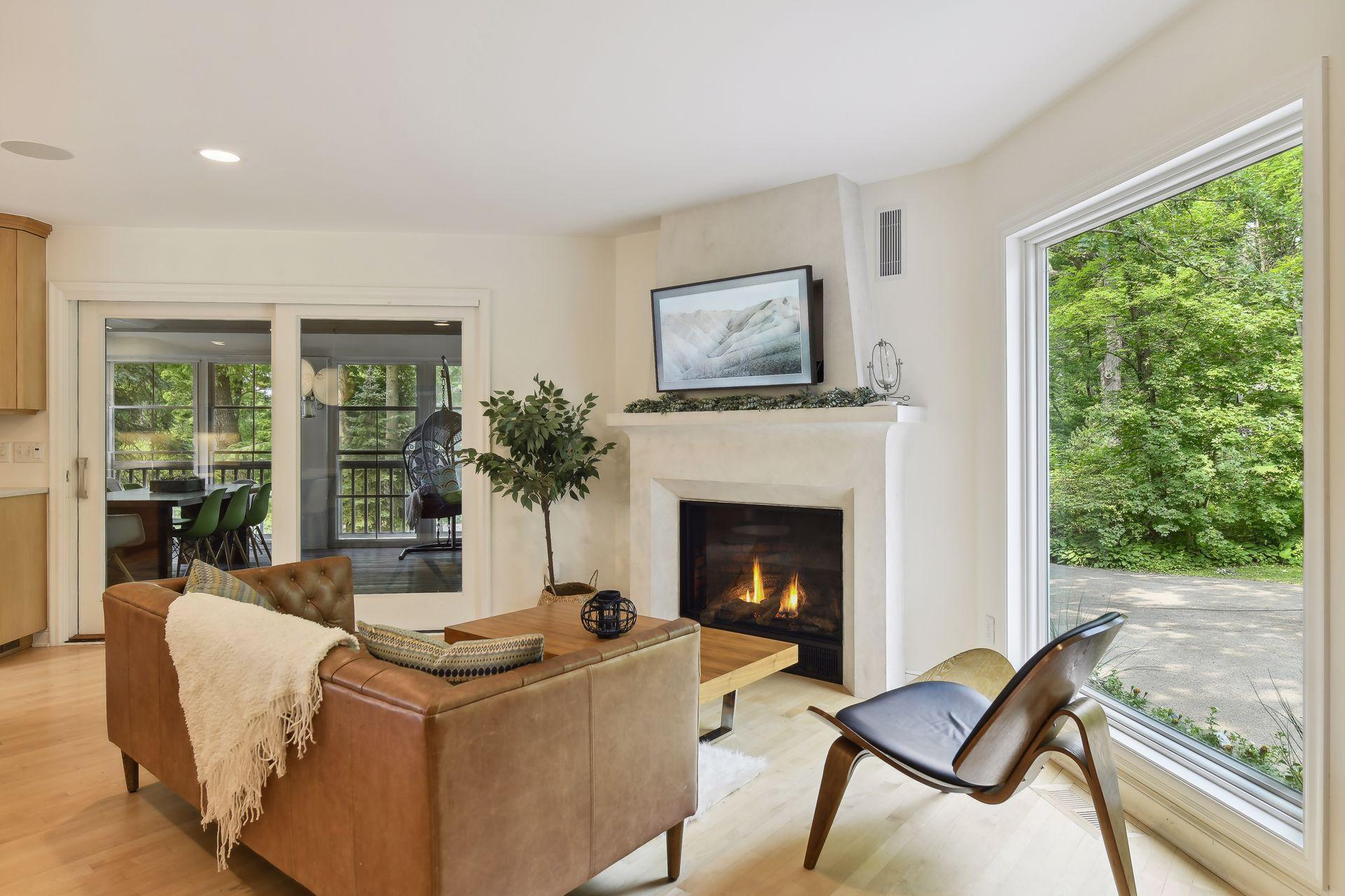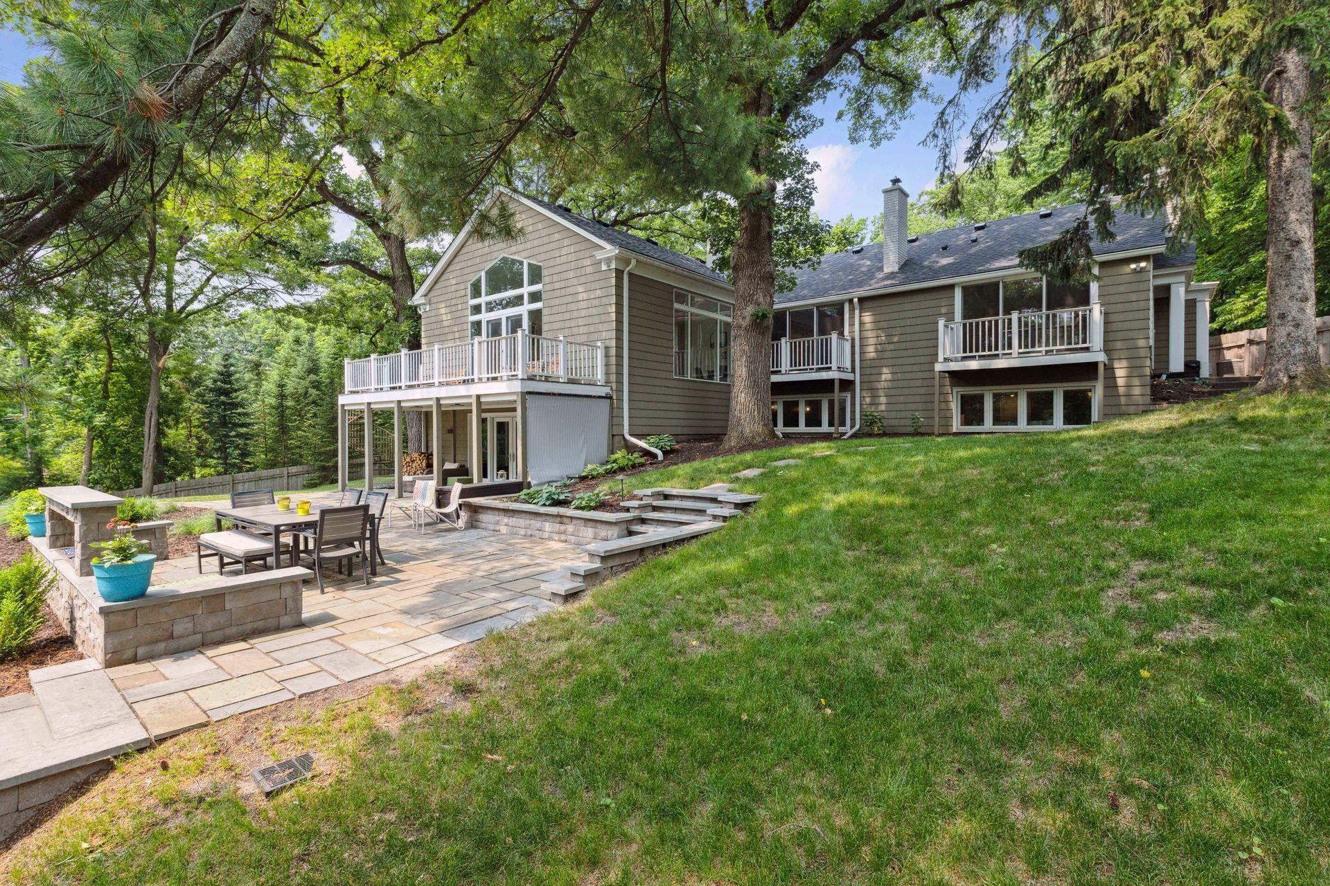 This truly exquisite oasis in the city is nestled in nature on over an acre of wooded privacy! The open and bright floorplan is ideal for both comfortable living and elegant entertaining, with so many updates to enhance your lifestyle! Large windows seamlessly blend the inside space with the tranquility of "Mother Nature." The grand foyer leads to a vaulted great room. A gas fireplace sets the mood, and there is access to the deck. The elegant, unique formal dining room features treetop views. The dream kitchen offers quartz countertops, 2 sinks, and an island with breakfast bar. There is also a hearth area with fireplace and W/O to the porch. The vaulted owner's suite boasts a walk-in closet, luxurious bath with jetted tub. A bedroom, three-quarter bath, a laundry & office complete the main level. The lower level is sophisticated & stylish, with a family room, kitchen, 2 bedrooms, a full and a half bath, 2nd laundry. Outdoor spaces include decks, a patio, sauna, gorgeous landscaping!