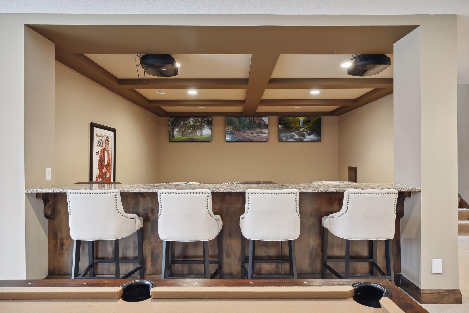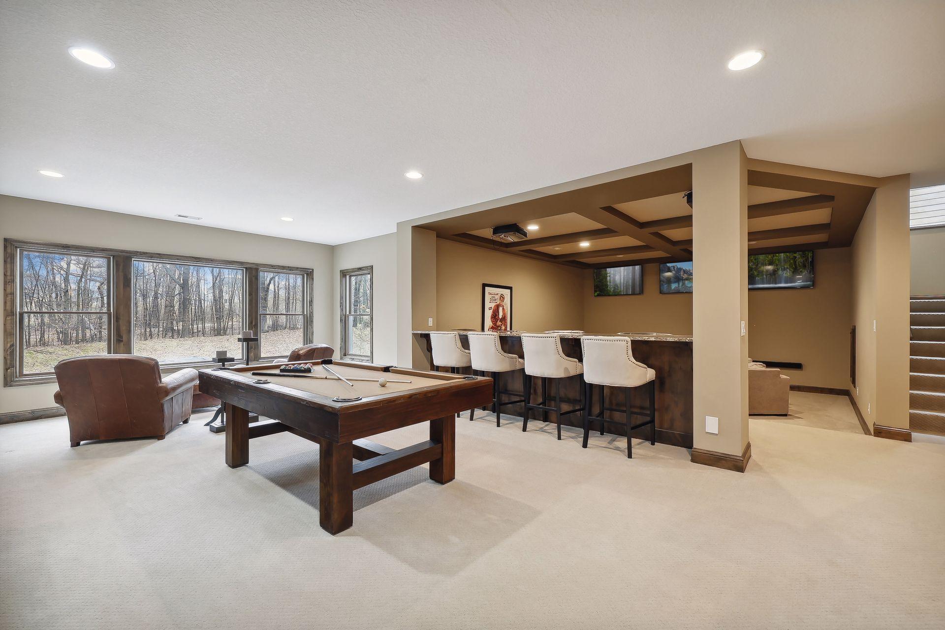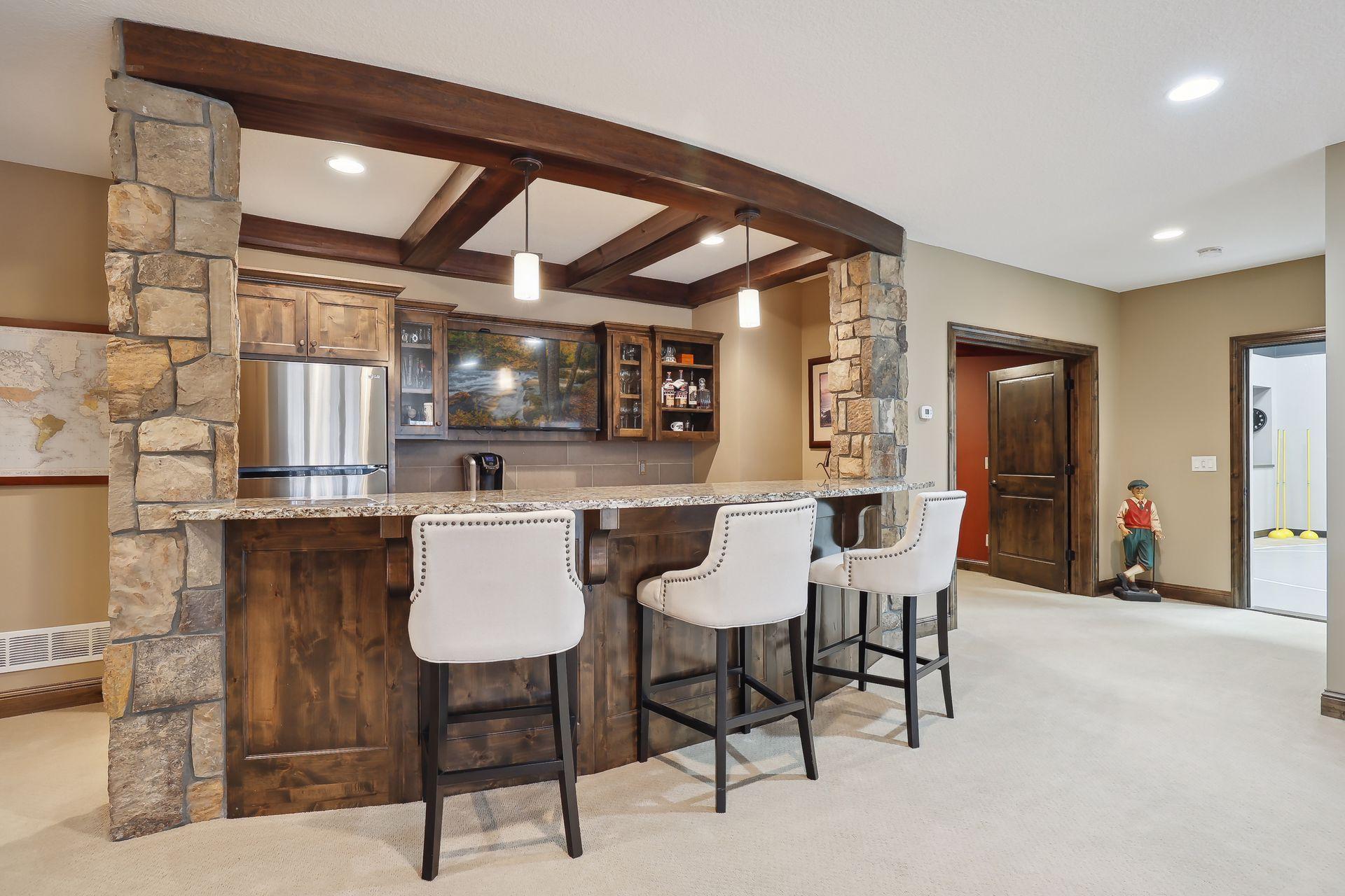 Public Remarks: Stunning finishes & impressive detailing throughout this entire property. Featuring 10' ceilings & hardwood plank flrs thru out main level. The gourmet kitchen w/granite countertops, CT backsplash, lg center island, SS appliances, enameled custom cabinets, WI pantry & in-formal DR. The stately GR w/2 story coffered ceiling & full stone gas fp w/ customer built-ins. Main fl study w/barn doors, craft rm w/built-ins, large mudroom & 1/2 bath. Off the dinette is the seasonal porch w/vaulted wood ceiling, gas fireplace, smart-ez screens & grill deck w/pond views. Upper level features the Owner's suite w/sitting rm, beverage fridge, gas fp & ensuite spa bath w/WI shower, custom linen built in, WI closet w/access to laundry, 2 additional bdrs each featuring private baths & WI closets. The LL is an entertainers dream featuring theater rm, billiard rm, bar, athletic ct, exercise rm, bdr 4 (non-conforming), 3/4 bath w/steam shower. LL patio w/gas fp, hot tub, & putting green