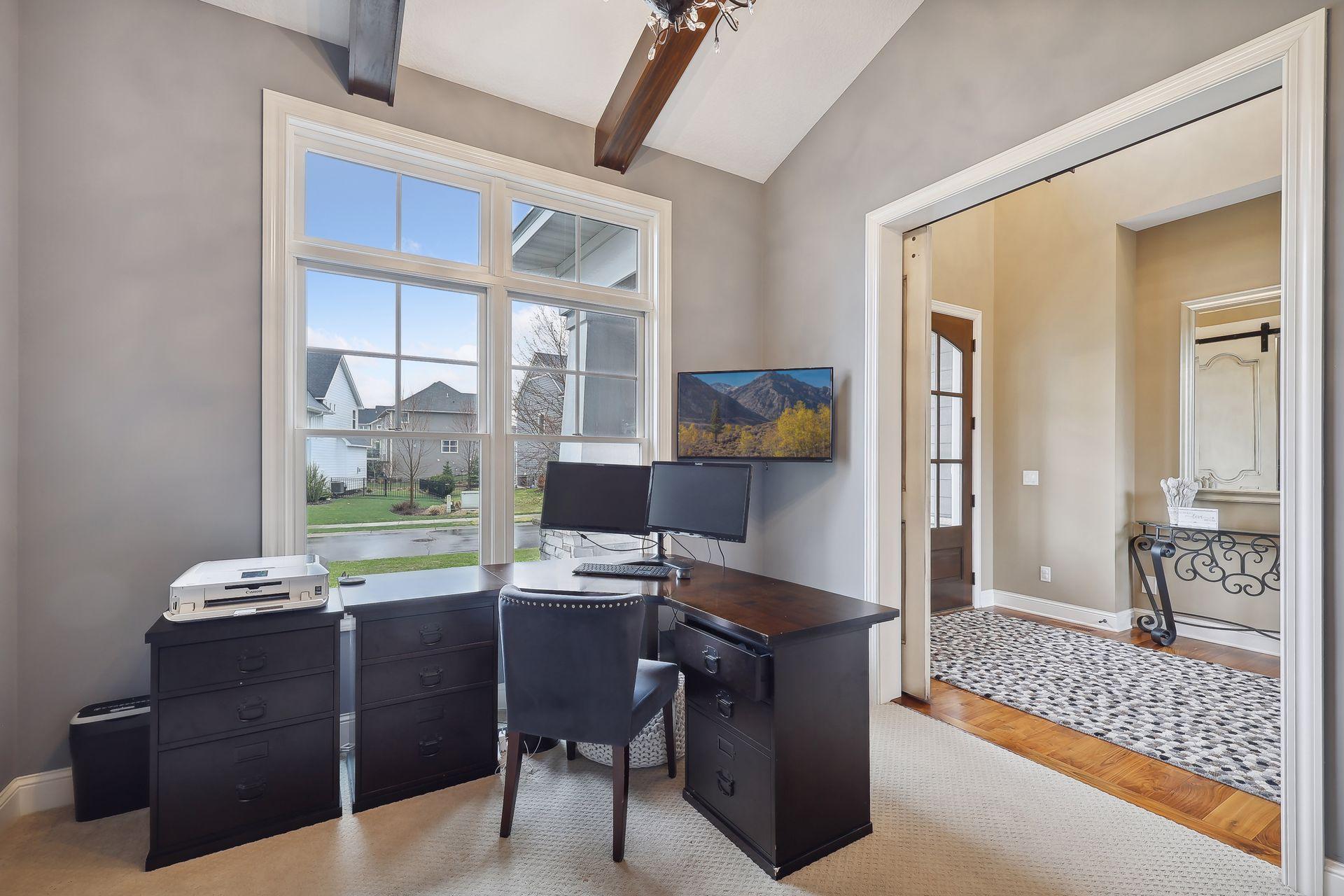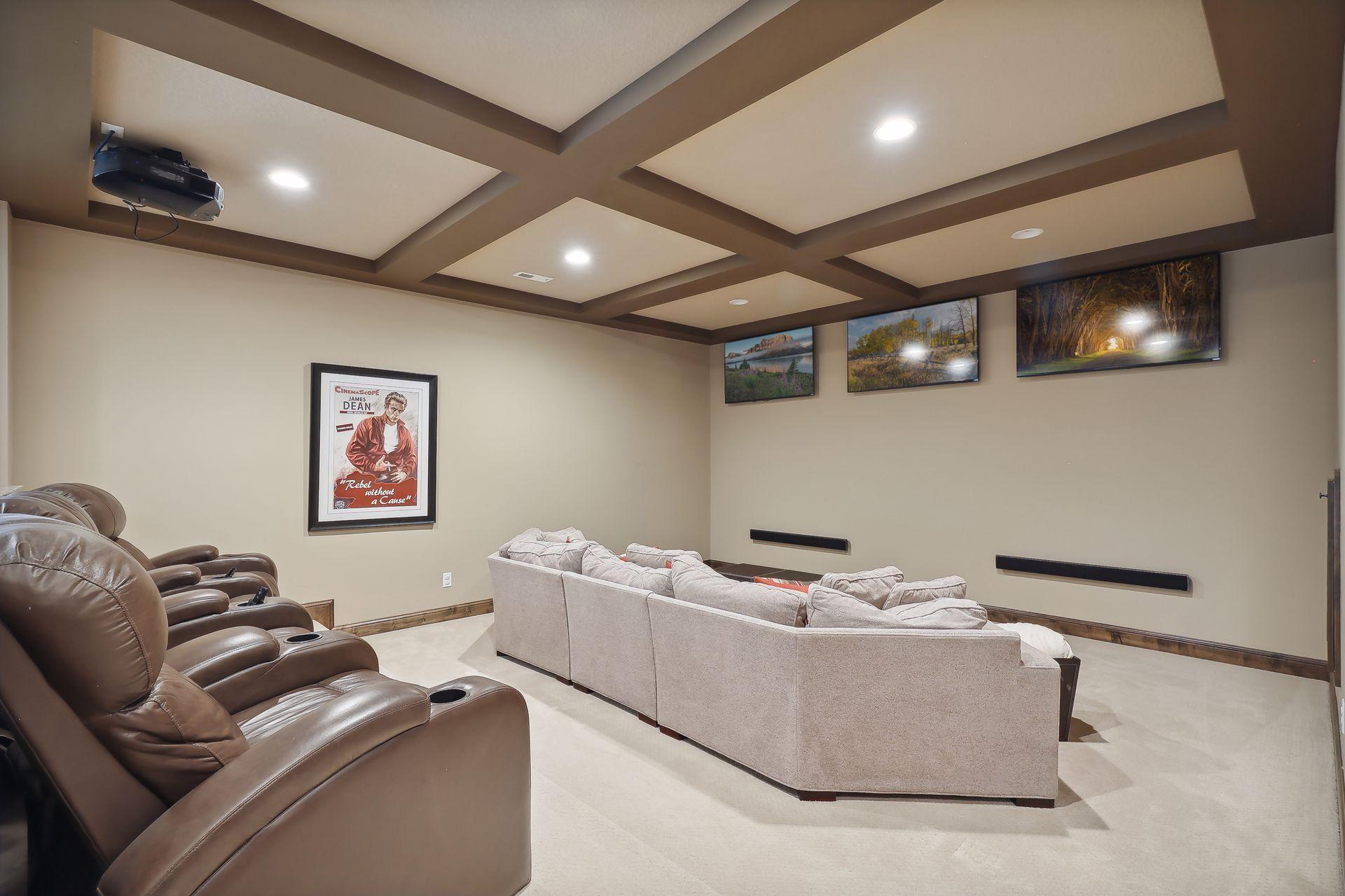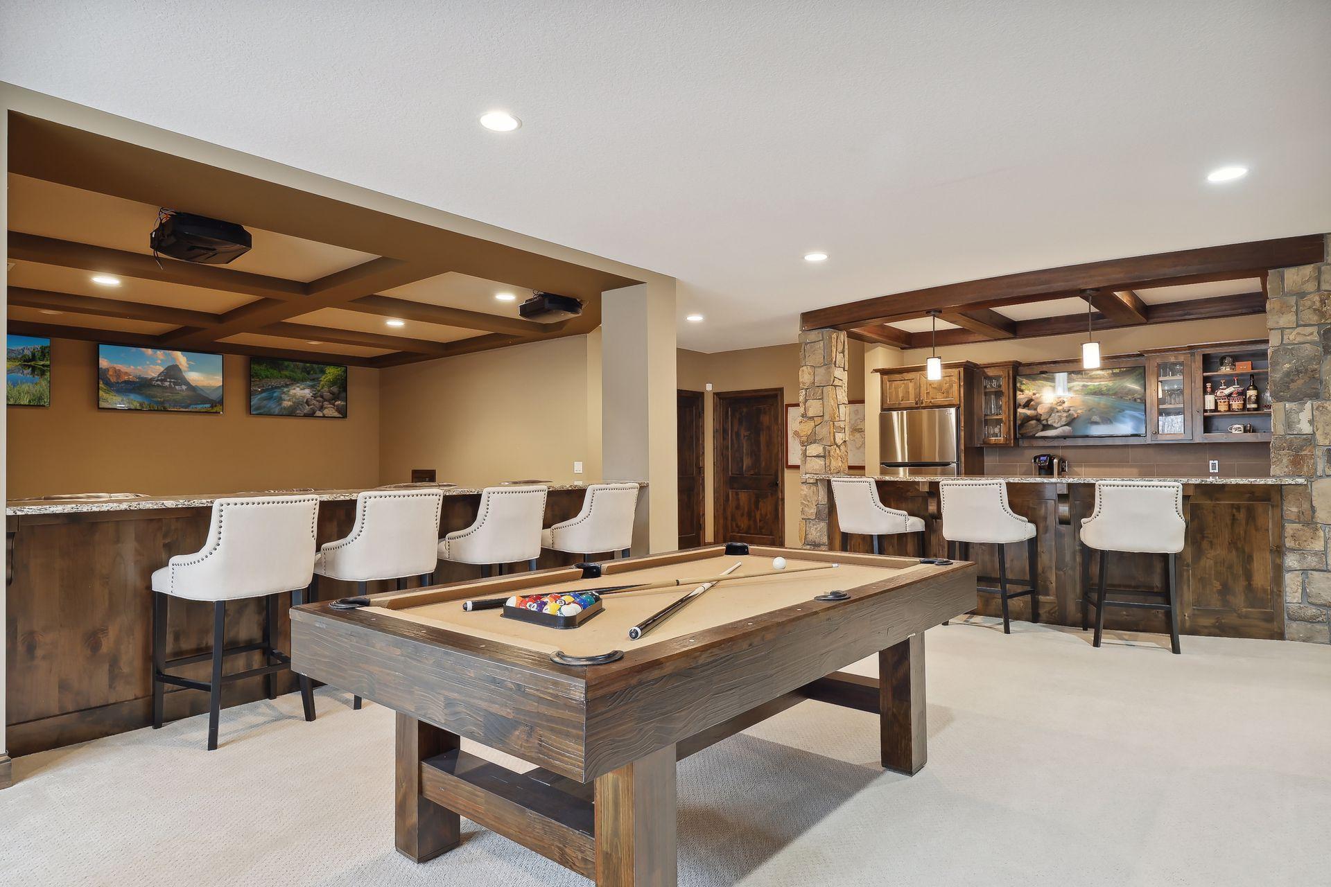 Public Remarks: Stunning finishes & impressive detailing throughout this entire property. Featuring 10' ceilings & hardwood plank flrs thru out main level. The gourmet kitchen w/granite countertops, CT backsplash, lg center island, SS appliances, enameled custom cabinets, WI pantry & in-formal DR. The stately GR w/2 story coffered ceiling & full stone gas fp w/ customer built-ins. Main fl study w/barn doors, craft rm w/built-ins, large mudroom & 1/2 bath. Off the dinette is the seasonal porch w/vaulted wood ceiling, gas fireplace, smart-ez screens & grill deck w/pond views. Upper level features the Owner's suite w/sitting rm, beverage fridge, gas fp & ensuite spa bath w/WI shower, custom linen built in, WI closet w/access to laundry, 2 additional bdrs each featuring private baths & WI closets. The LL is an entertainers dream featuring theater rm, billiard rm, bar, athletic ct, exercise rm, bdr 4 (non-conforming), 3/4 bath w/steam shower. LL patio w/gas fp, hot tub, & putting green