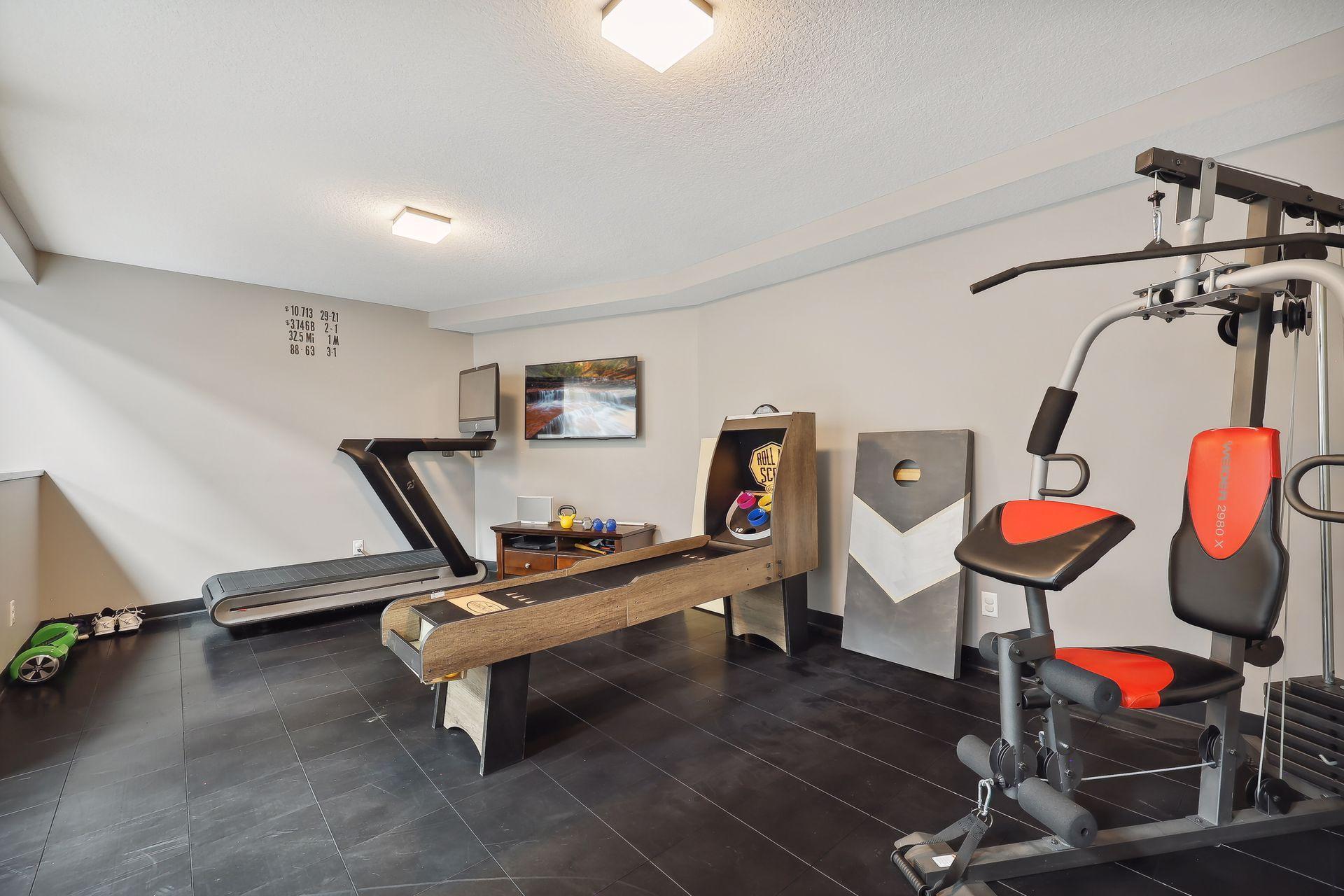 Amenities Unit: Ceiling Fan(s); Deck; Exercise Room; Hardwood Floors; Hot Tub; In-Ground Sprinkler; Kitchen Center Island; Natural Woodwork; Patio; Porch; Primary Bedroom Walk-In Closet; Security System; Vaulted Ceiling(s); Walk-In Closet; Washer/Dryer Hookup; Wet Bar