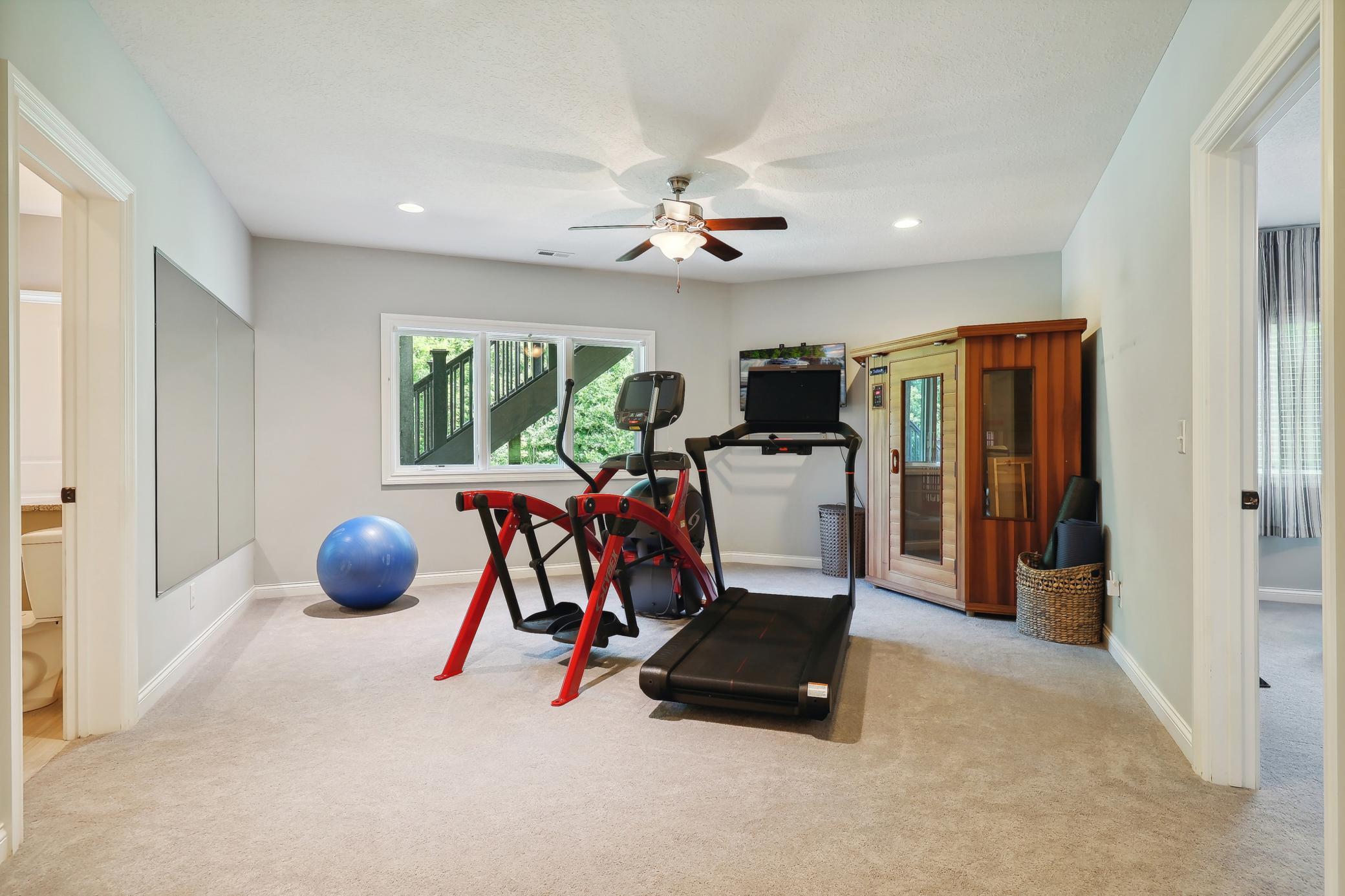 Amenities Unit: Cable; Ceiling Fan(s); Deck; Ethernet Wired; Exercise Room; French Doors; Hardwood Floors; In-Ground Sprinkler; Kitchen Center Island; Paneled Doors; Panoramic View; Patio; Porch; Primary Bedroom Walk-In Closet; Security Lights; Security System; Tile Floors; Vaulted Ceiling(s); Walk-In Closet; Washer/Dryer Hookup