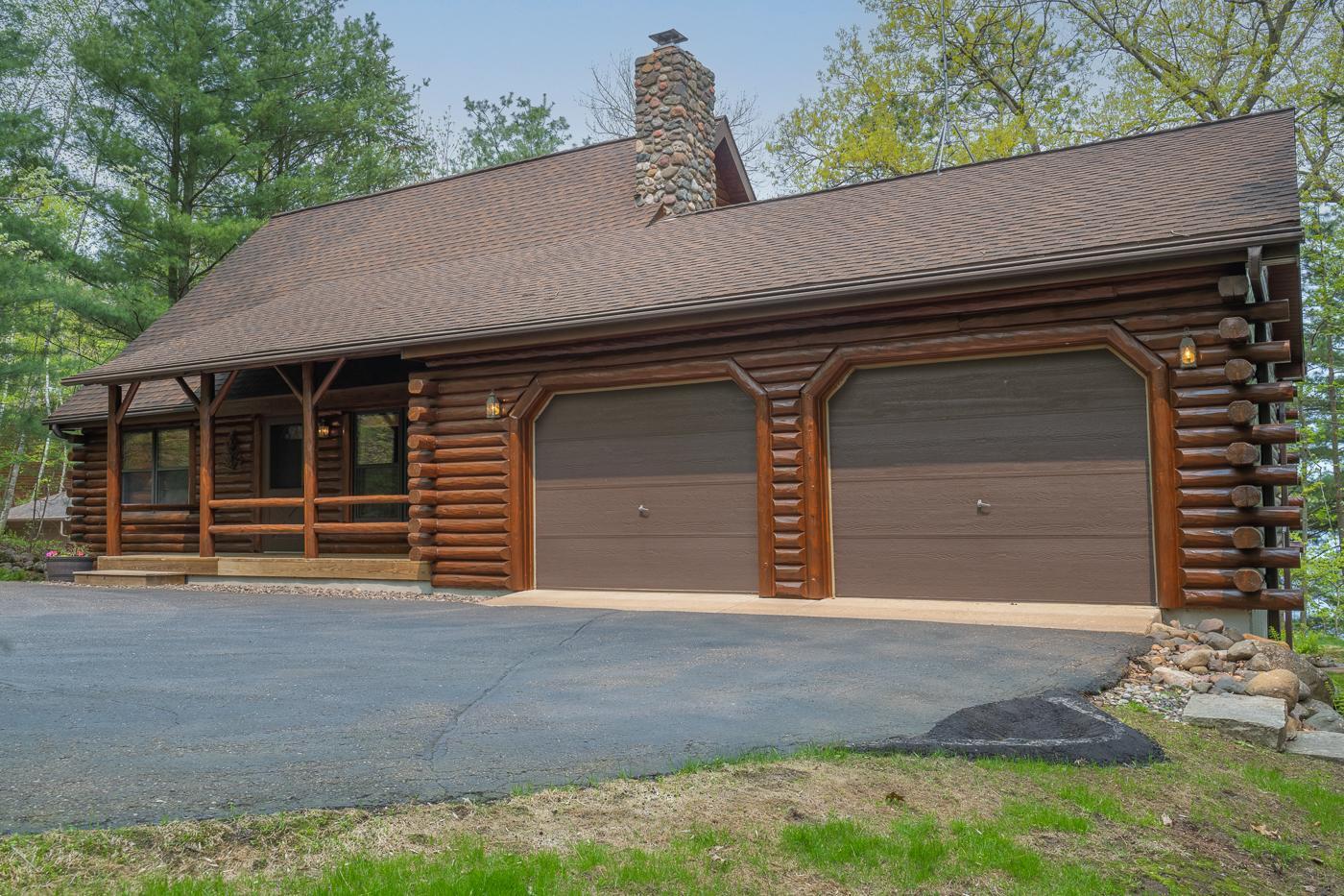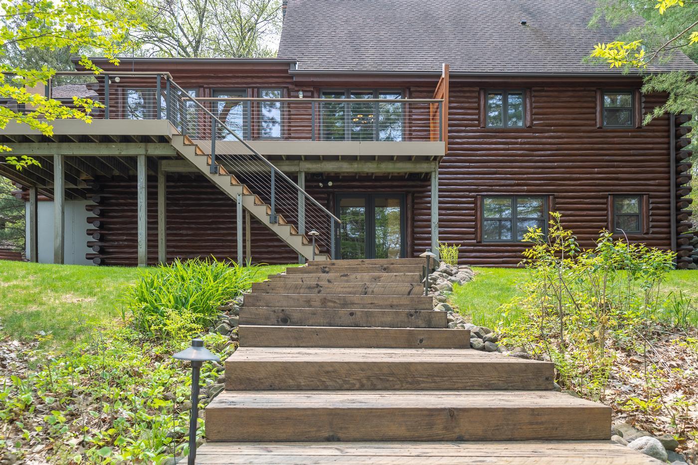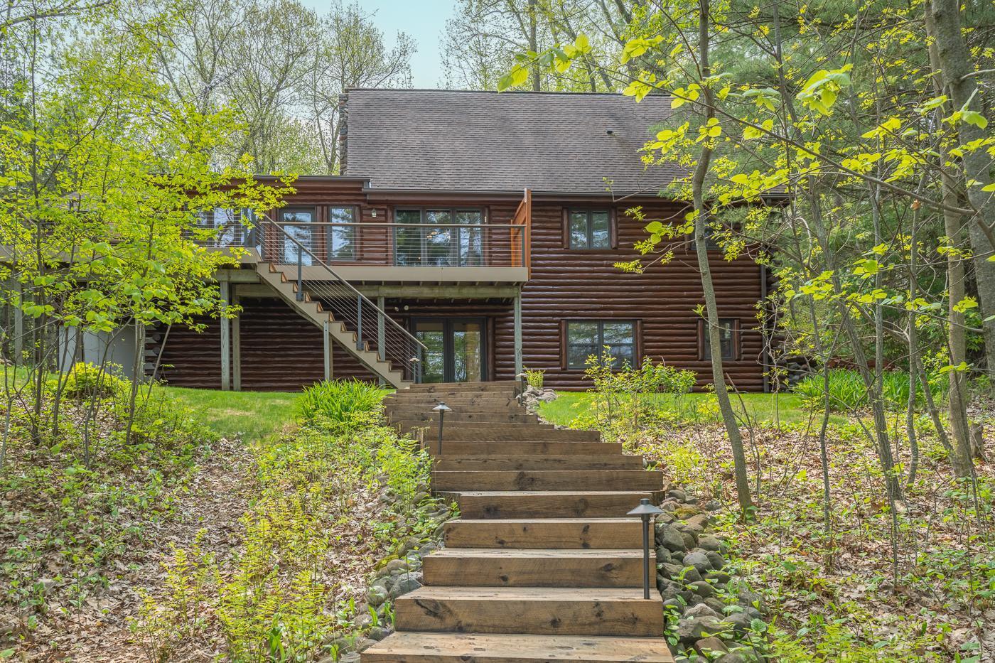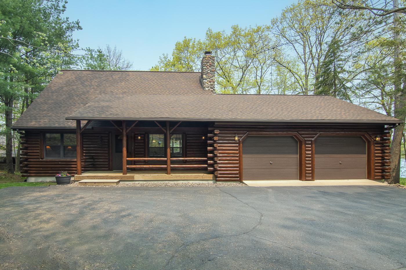 Pride of ownership is evident throughout every inch of this quintessential lakefront log cabin. This meticulously maintained home features an eat-in kitchen, 2 fireplaces (wood & electric), ash flooring, an indoor sauna, a walk-out lower level, 100' of pristine shoreline and so much more! The open kitchen offers ample cupboard & granite counter spaces, a handy pantry & center island. The informal dining room adjoins both the kitchen & living room making entertaining family & friends a breeze. The upstairs loft area is perfectly sized for a cherished home office, library or guest/play room. The finished lower level holds a large family room, a convenient 3/4 bath & an electric sauna creating the ideal space to play or watch TV. Relax & soak up the sun & lake views in the comfy sunroom or on the adjoining 34x11 composite deck. The private backyard oasis is ideal for grilling dinner or relaxing around the lakeside fire pit with your new neighbors. All situated on 2+ acres of paradise!
