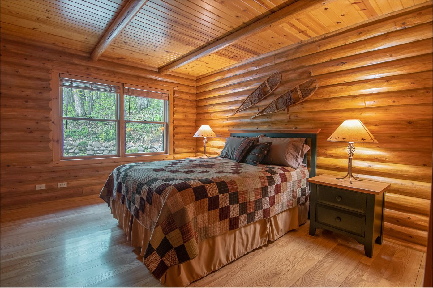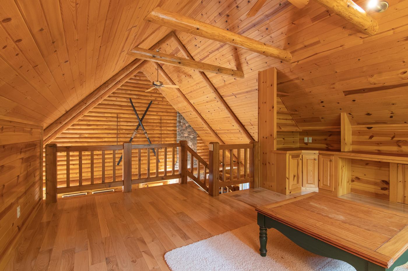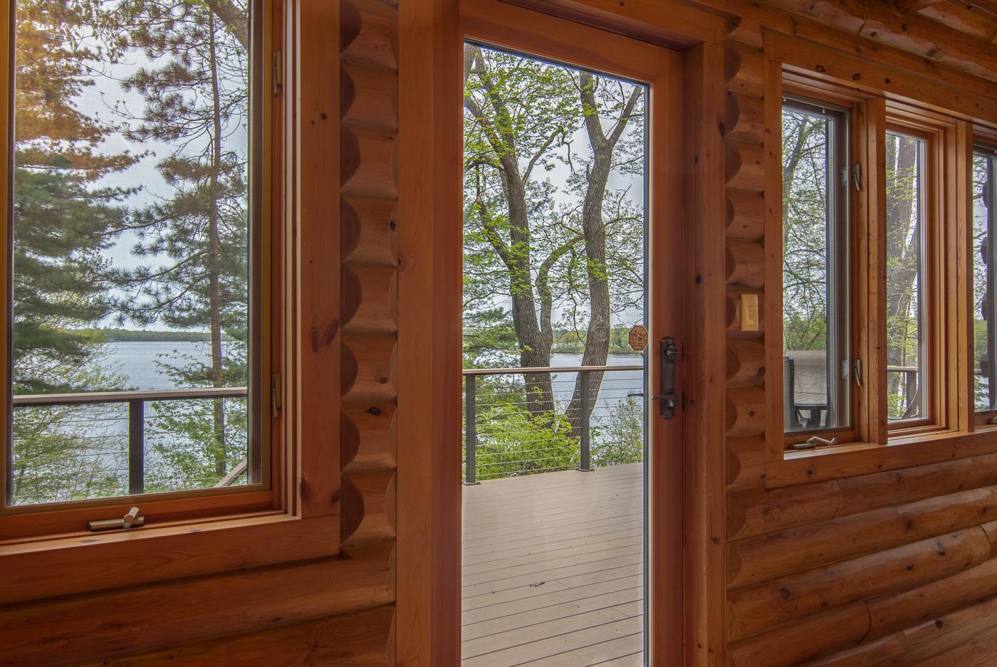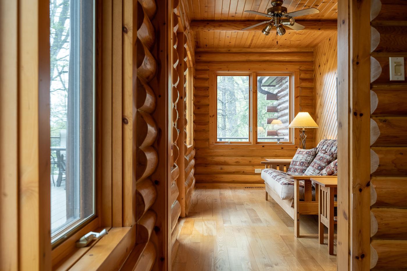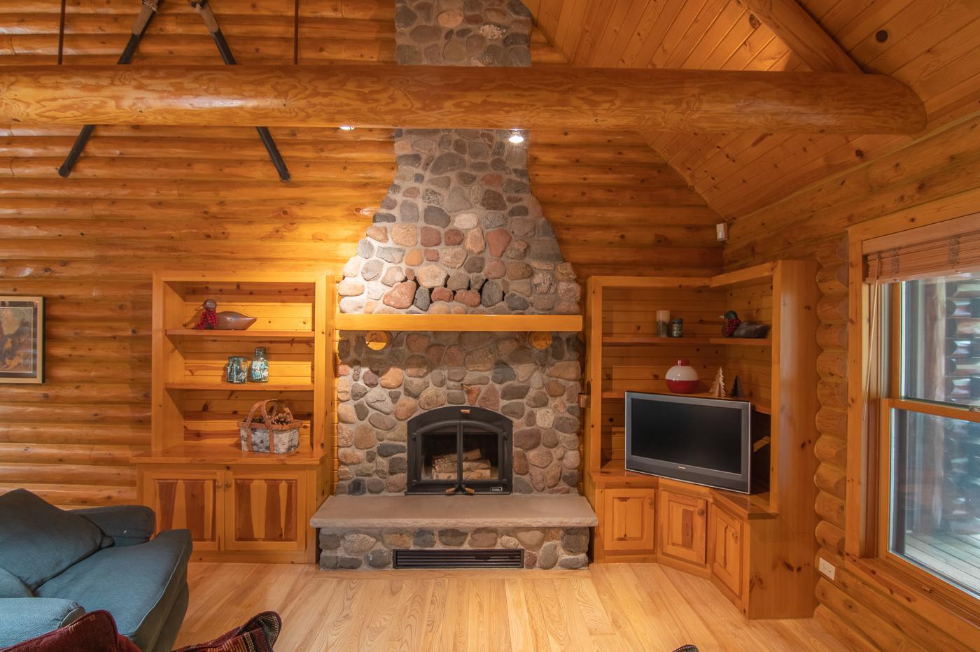 Pride of ownership is evident throughout every inch of this quintessential lakefront log cabin. This meticulously maintained home features an eat-in kitchen, 2 fireplaces (wood & electric), ash flooring, an indoor sauna, a walk-out lower level, 100' of pristine shoreline and so much more! The open kitchen offers ample cupboard & granite counter spaces, a handy pantry & center island. The informal dining room adjoins both the kitchen & living room making entertaining family & friends a breeze. The upstairs loft area is perfectly sized for a cherished home office, library or guest/play room. The finished lower level holds a large family room, a convenient 3/4 bath & an electric sauna creating the ideal space to play or watch TV. Relax & soak up the sun & lake views in the comfy sunroom or on the adjoining 34x11 composite deck. The private backyard oasis is ideal for grilling dinner or relaxing around the lakeside fire pit with your new neighbors. All situated on 2+ acres of paradise!