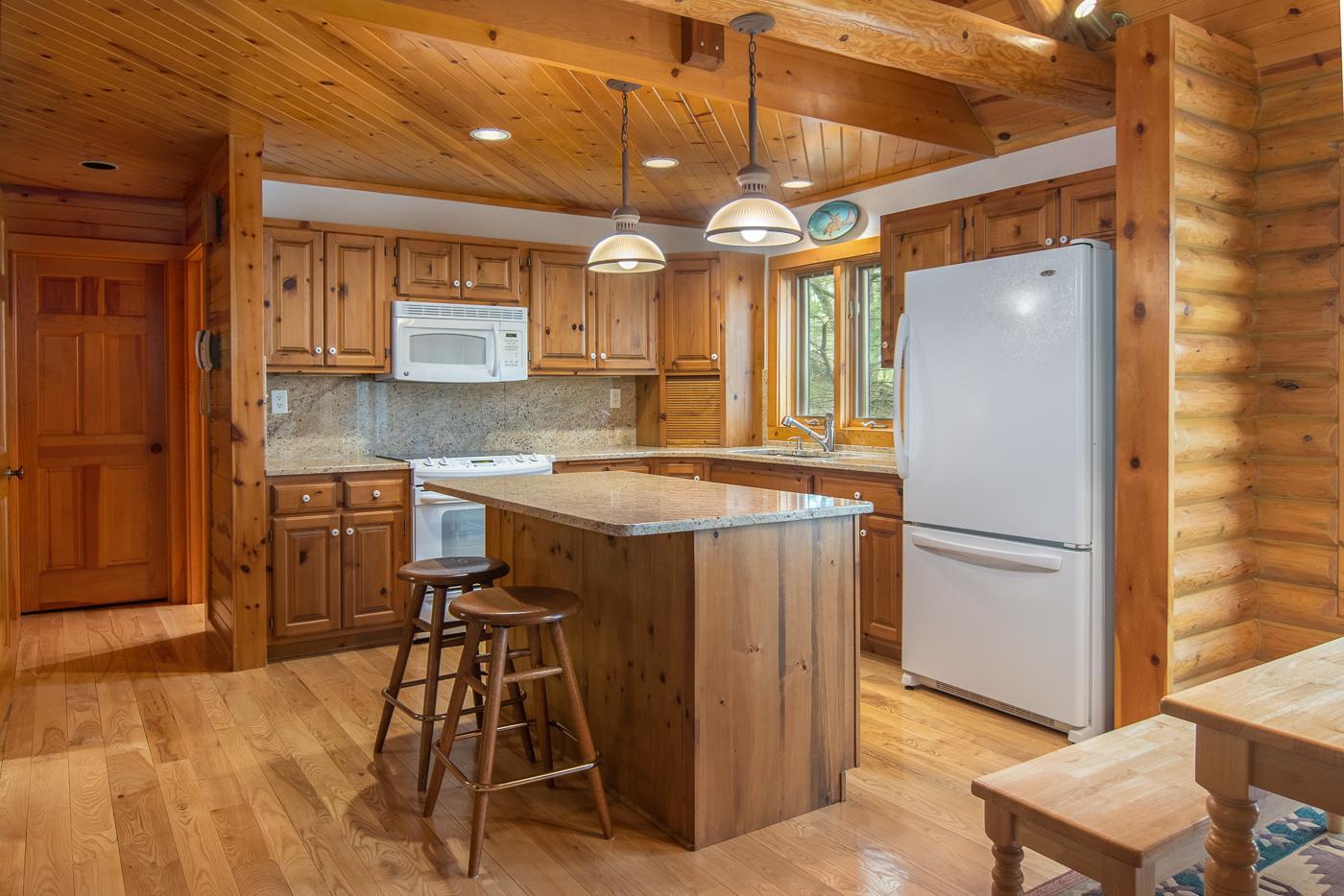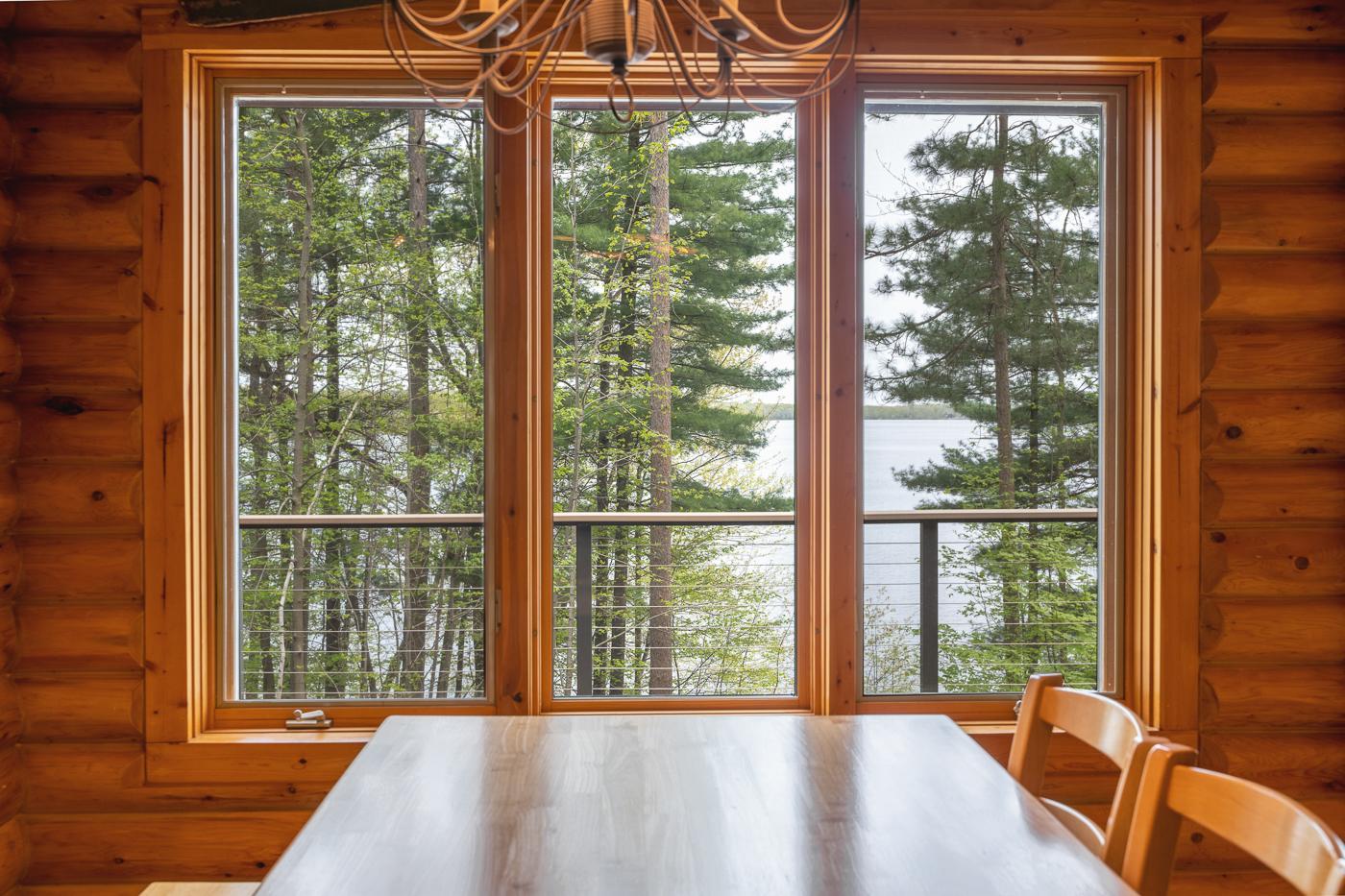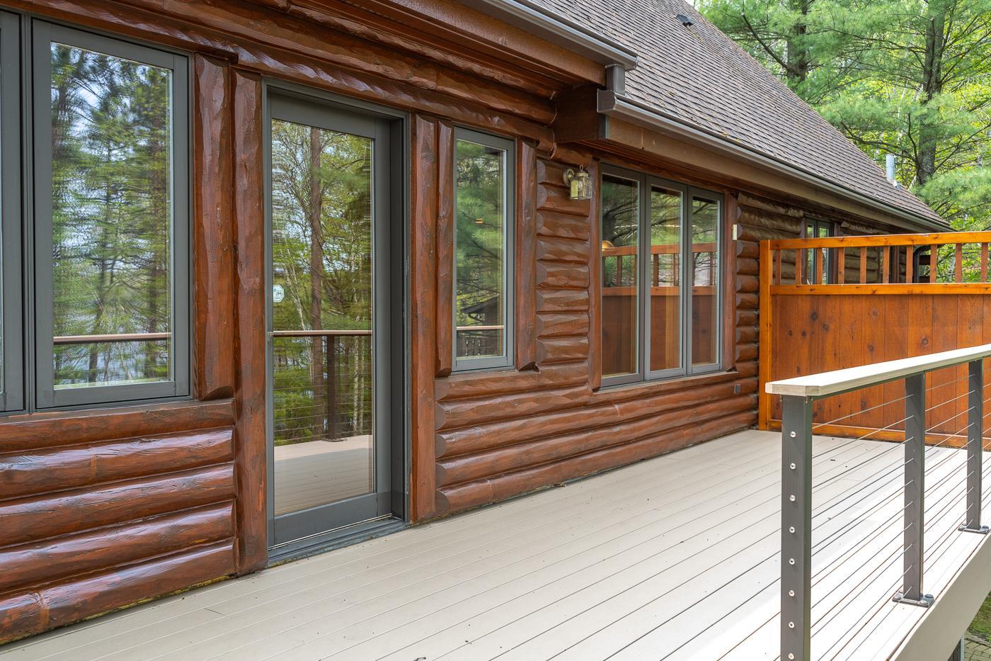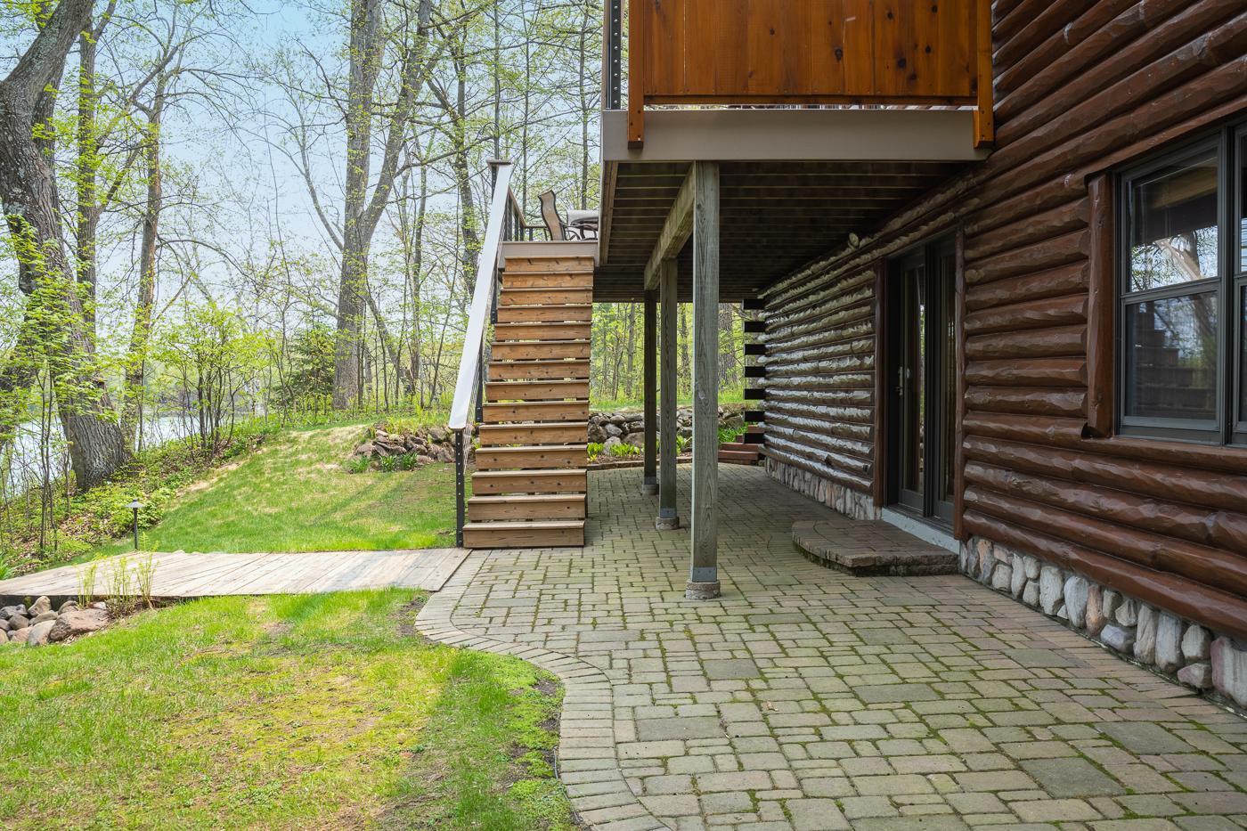 Pride of ownership is evident throughout every inch of this quintessential lakefront log cabin. This meticulously maintained home features an eat-in kitchen, 2 fireplaces (wood & electric), ash flooring, an indoor sauna, a walk-out lower level, 100' of pristine shoreline and so much more! The open kitchen offers ample cupboard & granite counter spaces, a handy pantry & center island. The informal dining room adjoins both the kitchen & living room making entertaining family & friends a breeze. The upstairs loft area is perfectly sized for a cherished home office, library or guest/play room. The finished lower level holds a large family room, a convenient 3/4 bath & an electric sauna creating the ideal space to play or watch TV. Relax & soak up the sun & lake views in the comfy sunroom or on the adjoining 34x11 composite deck. The private backyard oasis is ideal for grilling dinner or relaxing around the lakeside fire pit with your new neighbors. All situated on 2+ acres of paradise!
