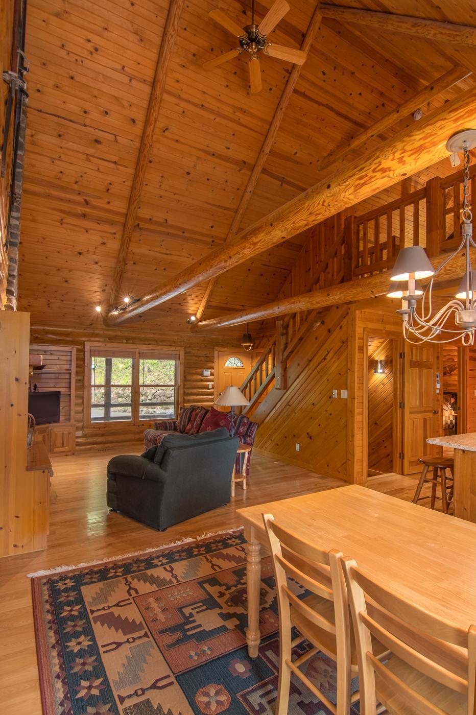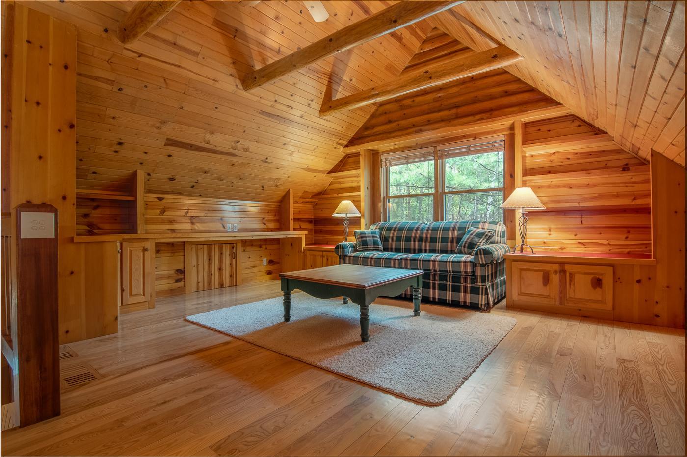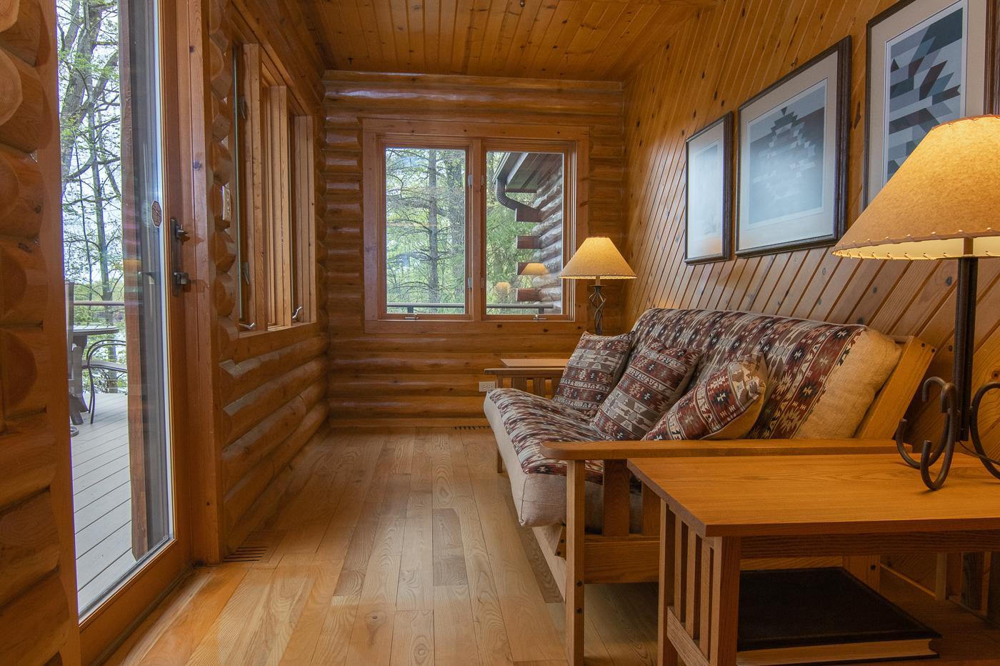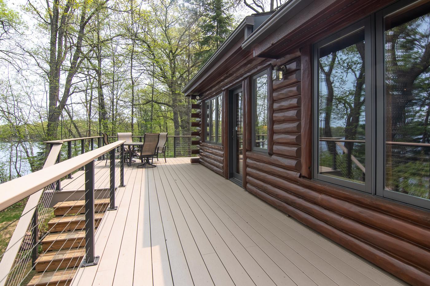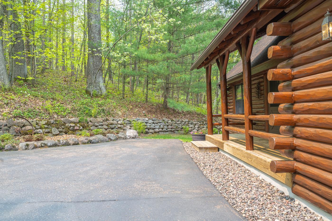 Pride of ownership is evident throughout every inch of this quintessential lakefront log cabin. This meticulously maintained home features an eat-in kitchen, 2 fireplaces (wood & electric), ash flooring, an indoor sauna, a walk-out lower level, 100' of pristine shoreline and so much more! The open kitchen offers ample cupboard & granite counter spaces, a handy pantry & center island. The informal dining room adjoins both the kitchen & living room making entertaining family & friends a breeze. The upstairs loft area is perfectly sized for a cherished home office, library or guest/play room. The finished lower level holds a large family room, a convenient 3/4 bath & an electric sauna creating the ideal space to play or watch TV. Relax & soak up the sun & lake views in the comfy sunroom or on the adjoining 34x11 composite deck. The private backyard oasis is ideal for grilling dinner or relaxing around the lakeside fire pit with your new neighbors. All situated on 2+ acres of paradise!