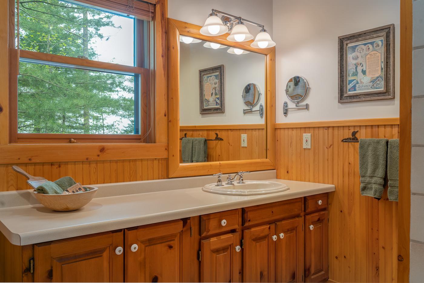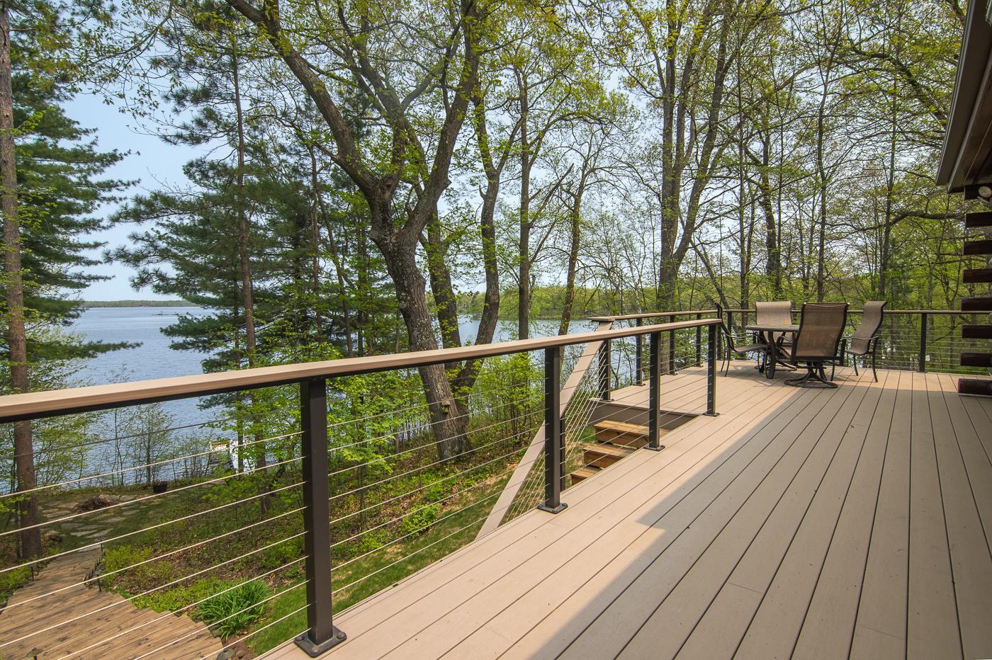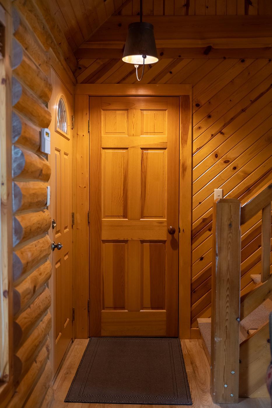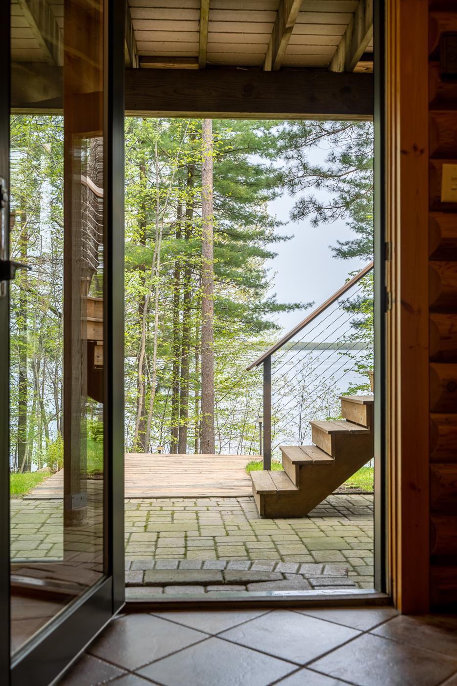 Pride of ownership is evident throughout every inch of this quintessential lakefront log cabin. This meticulously maintained home features an eat-in kitchen, 2 fireplaces (wood & electric), ash flooring, an indoor sauna, a walk-out lower level, 100' of pristine shoreline and so much more! The open kitchen offers ample cupboard & granite counter spaces, a handy pantry & center island. The informal dining room adjoins both the kitchen & living room making entertaining family & friends a breeze. The upstairs loft area is perfectly sized for a cherished home office, library or guest/play room. The finished lower level holds a large family room, a convenient 3/4 bath & an electric sauna creating the ideal space to play or watch TV. Relax & soak up the sun & lake views in the comfy sunroom or on the adjoining 34x11 composite deck. The private backyard oasis is ideal for grilling dinner or relaxing around the lakeside fire pit with your new neighbors. All situated on 2+ acres of paradise!