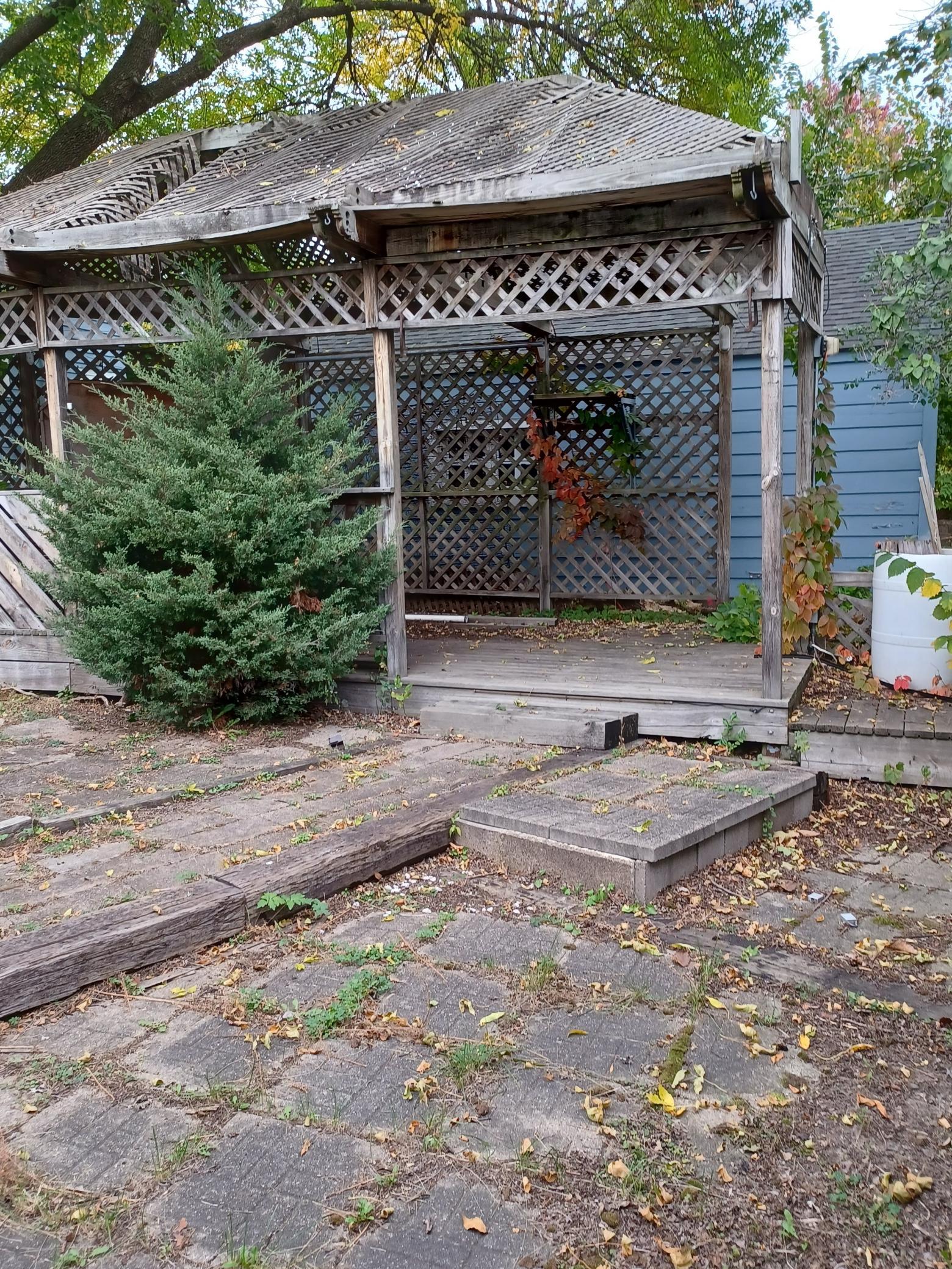 Public Remarks: 1/3 acre corner lot with detached garage, additional storage shed, and gazebo. Main floor has large open dining room and kitchen area. The back entry could be a main floor laundry or second kitchen. The living room has adjacent bonus room and a fireplace. The front porch is enclosed. The main floor bedroom could act as a family room but has an adjacent closet and bathroom equipped for accessibility complete with a roll in shower and a patio door to deck and ramp. Offer instructions are in the agent remarks. Code compliance report and sale requirement are in supplements. As is sale.