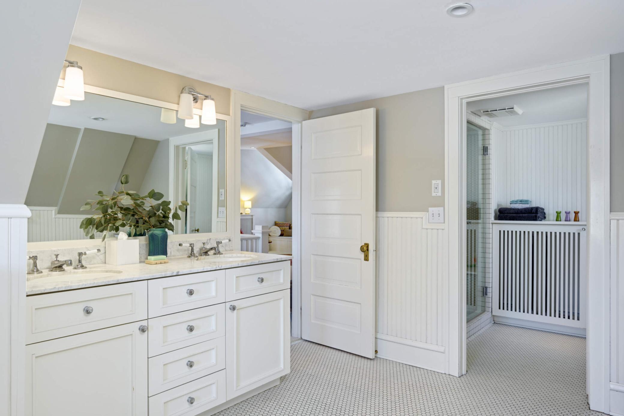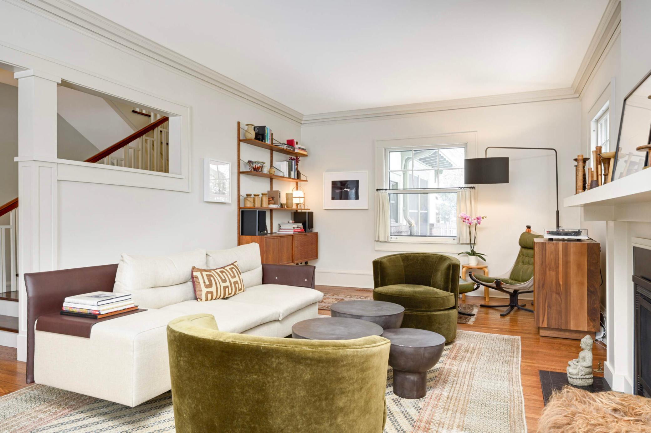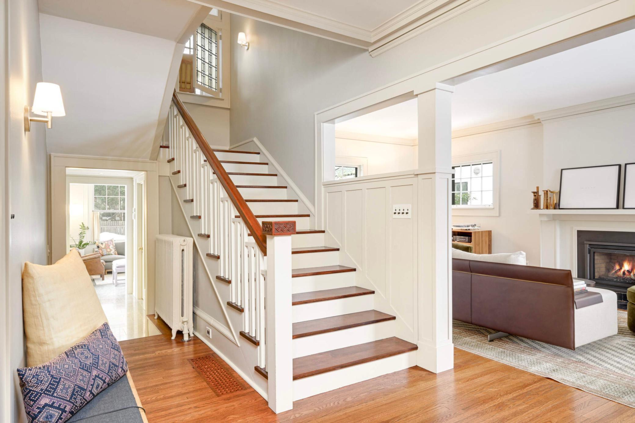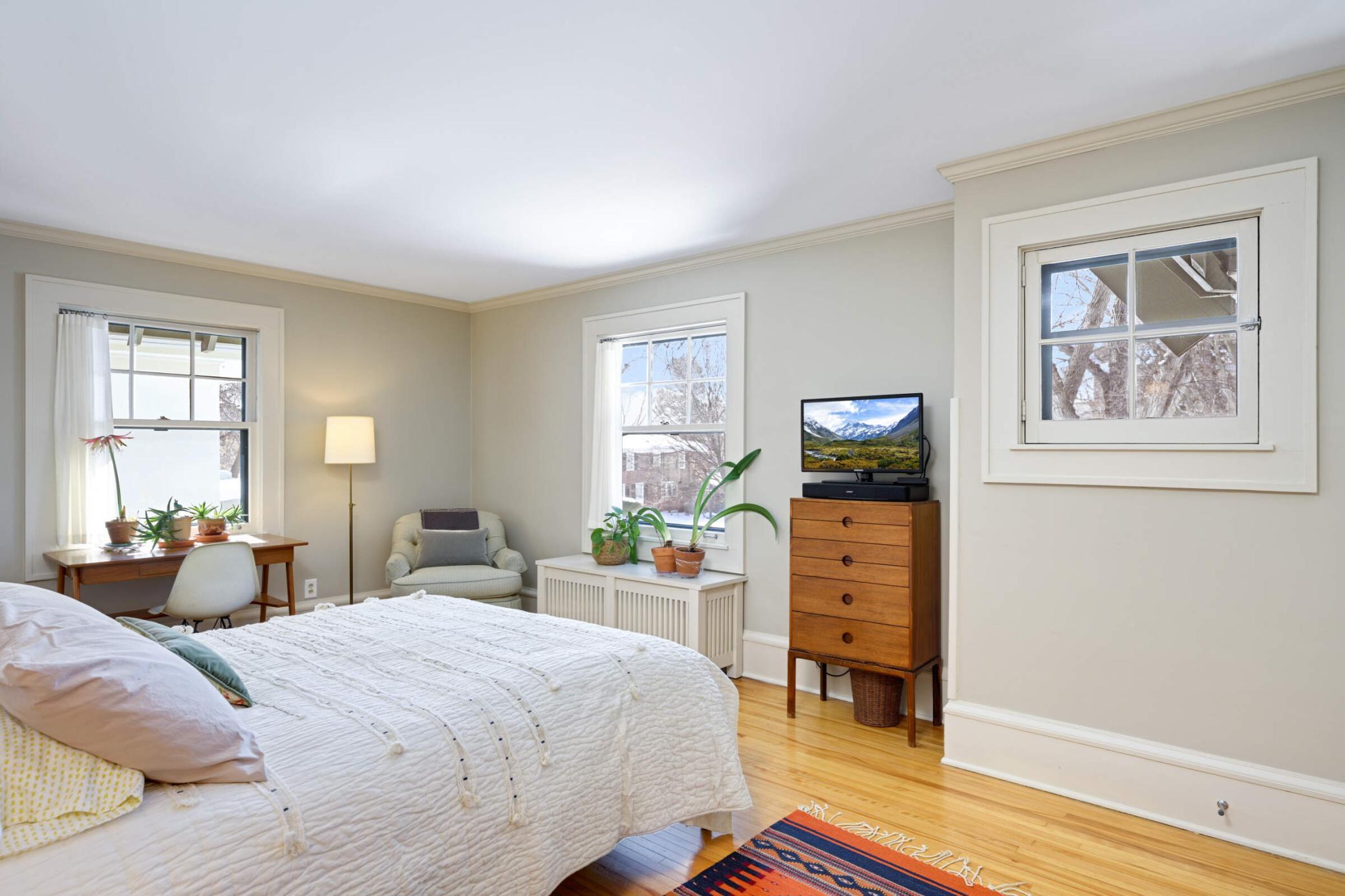 cozy family room (w/in-floor heat), formal dining, 1/2 bath, walk-in mudroom/closet & a chef's kitchen. The 2nd story hosts 4 bedrooms, a sunroom, & two renovated bathrooms. 3rd flr boasts an XL