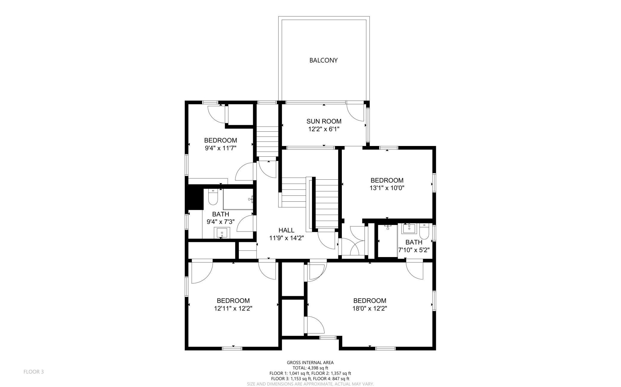 | Third (3rd) Bedroom | 10.4x10.7 | Upper |