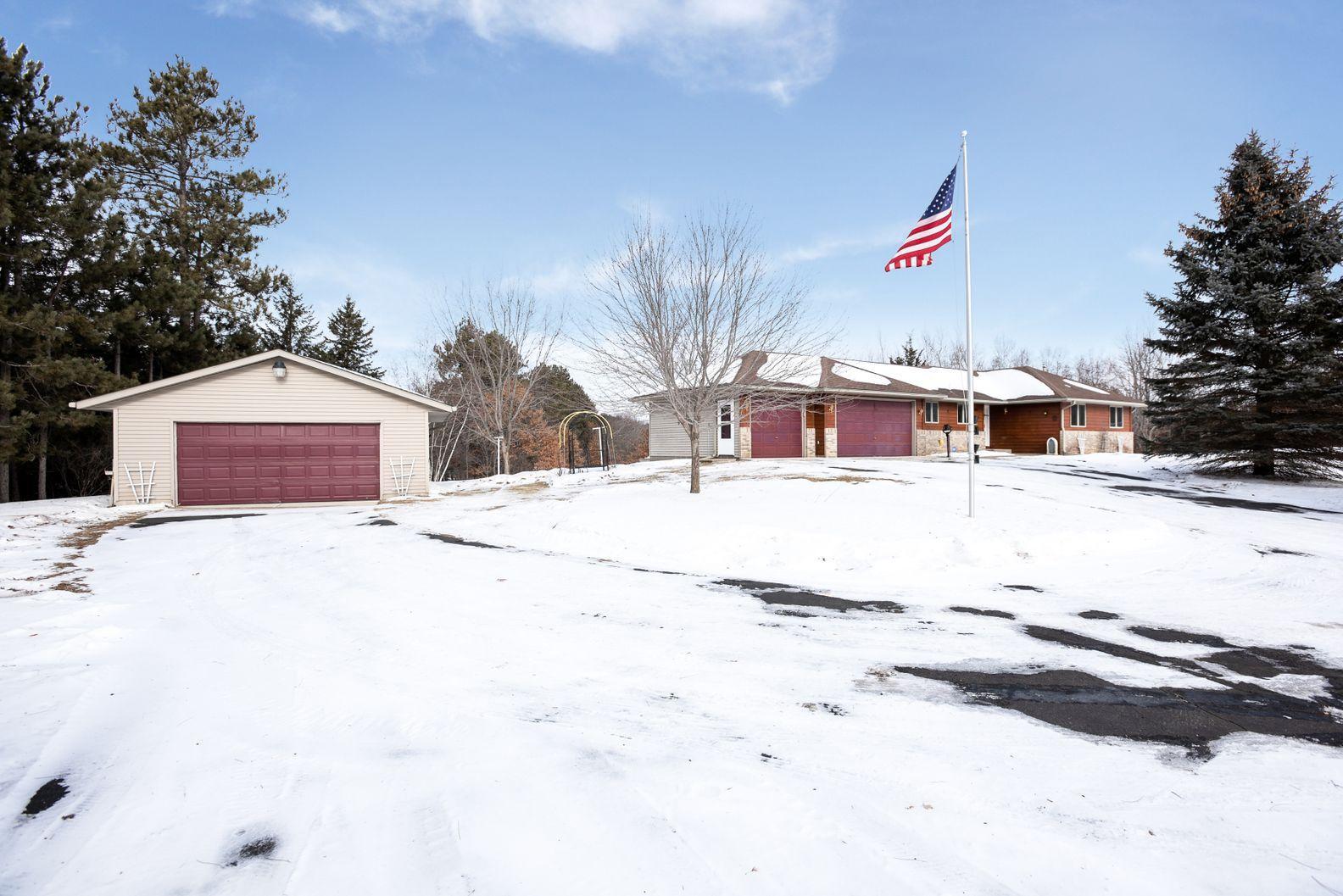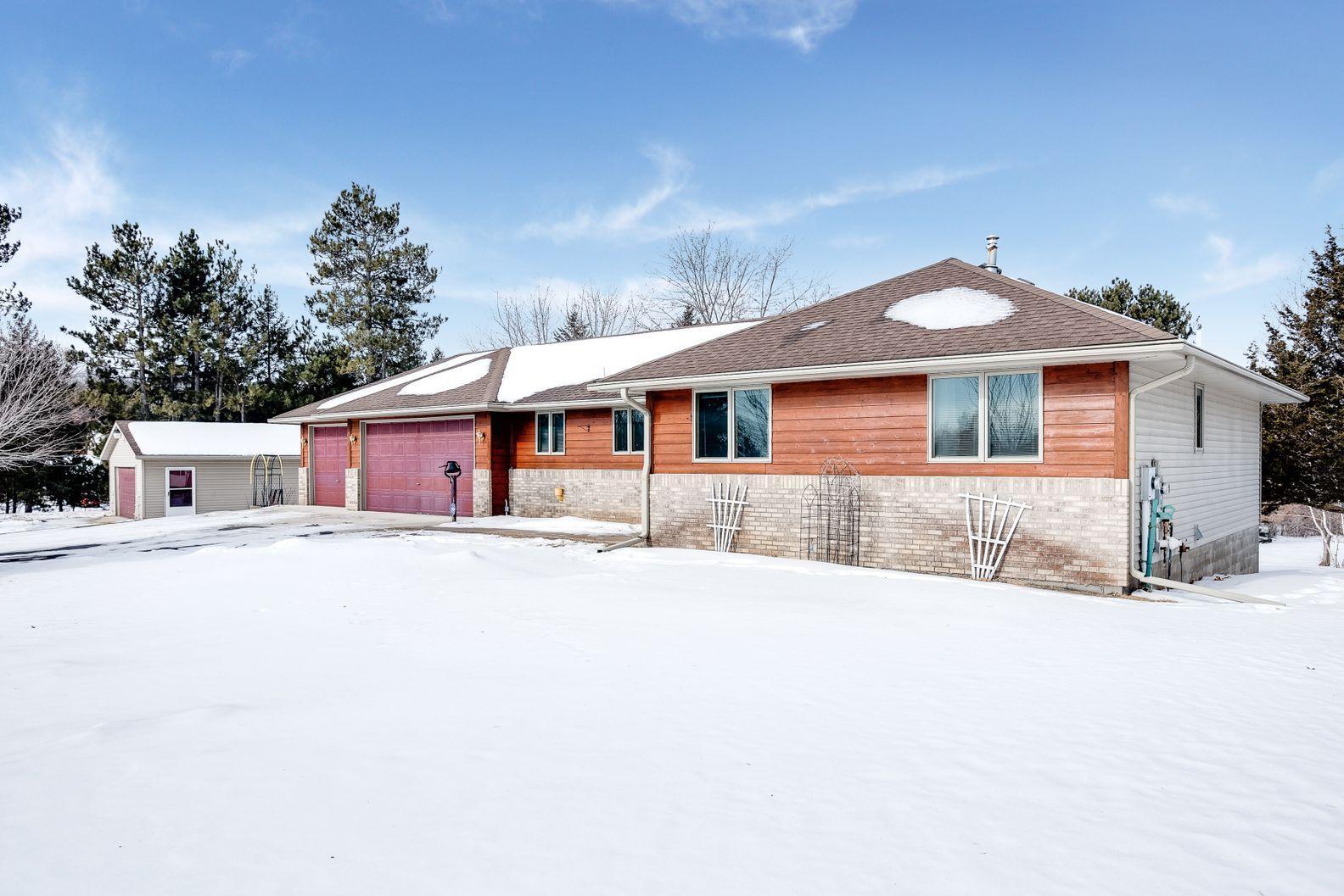 Beautiful 1 level living on 5.1 acres with 3 car completely insulated & finished attached garage, a 24'x24' detached garage plus a 12'x16' storage shed. 3 bdrm, 1 bth on main level including open entertaining space and sunroom overlooking the large backyard. Basement finished complete with another bdrm/bath, large family room and more storage.