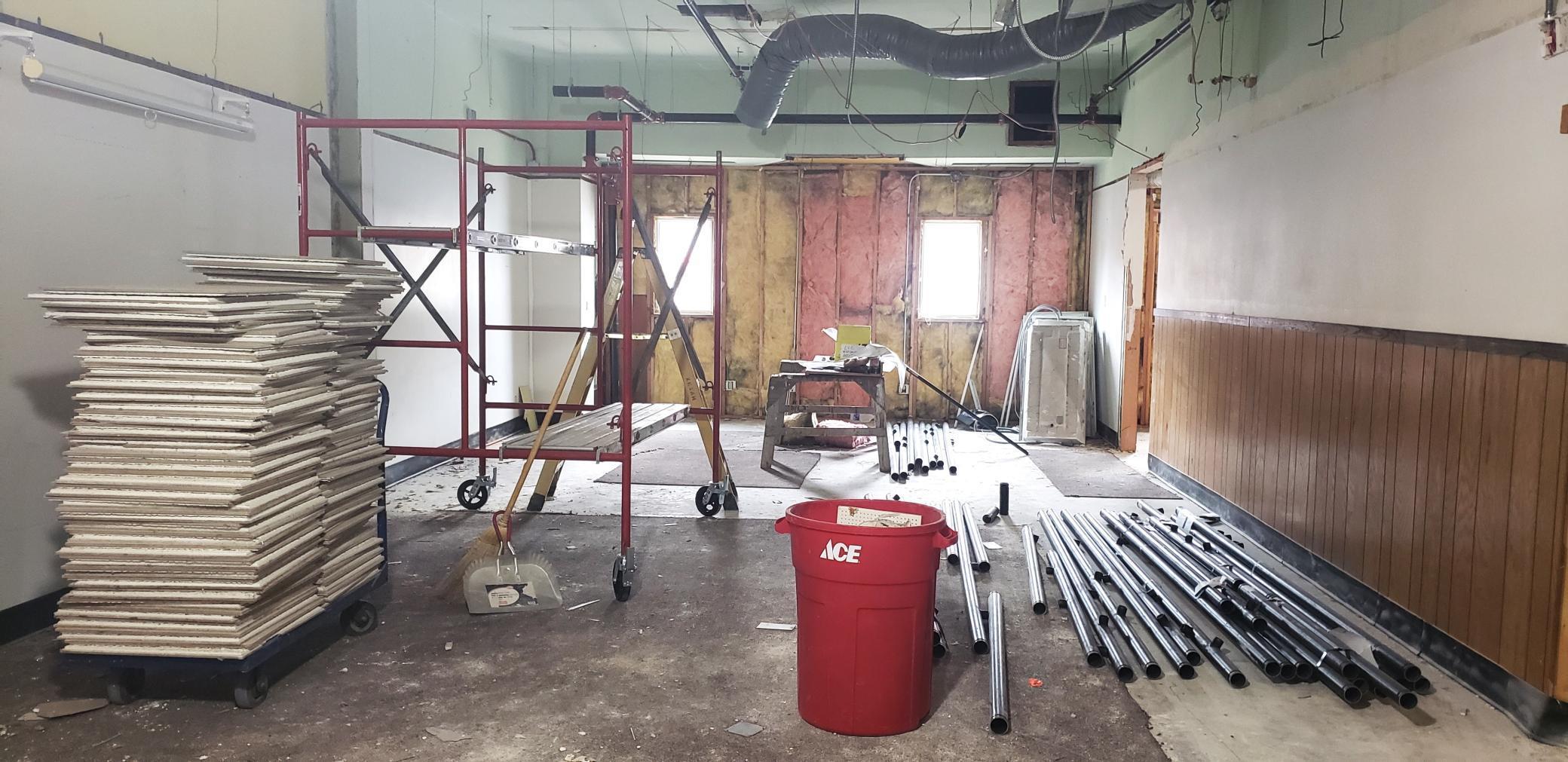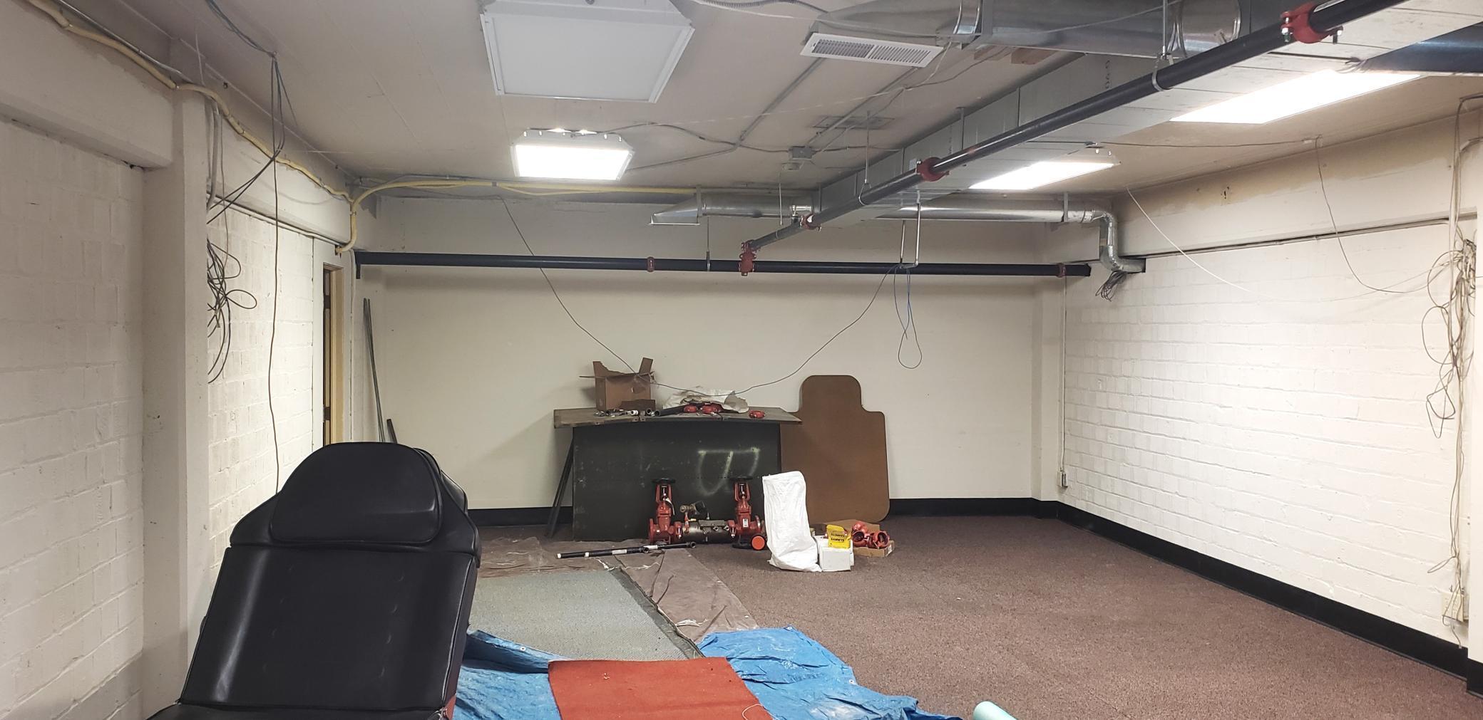 **Sprinkler System in process of being completed; photos of space are under construction.