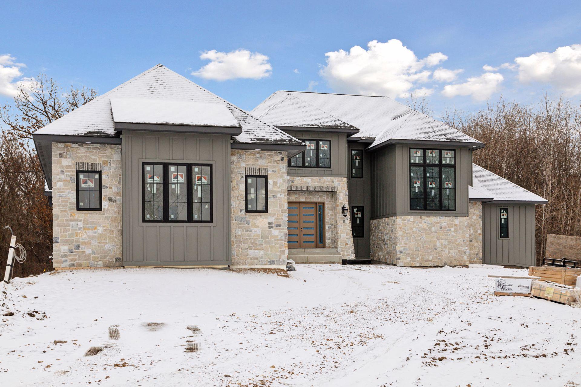 Welcome to this beautiful designed French Country home in the Crescent Curve neighborhood. Sitting on a 2.5 acre, wooded lot, this property has everything you could ever need. A large entry way, flowing into a great room with a built in fireplace and access to a private deck. The kitchen features luxury cabinets, a large center island, and walk in pantry. The right wing of the home houses a library and the primary suite. This bedroom is highlighted by a bathroom with a separate soaking tub and shower, that flows right into the walk-in closet. Upstairs are three additional bedrooms, with ensuite bathroom access for each. The basement will come finished with another large entertainment space and wet bar for hosting guests. You will find the perfect space for an exercise room, wine cellar, and additional bedroom. This home is under construction with an estimated completed of March, 2025.