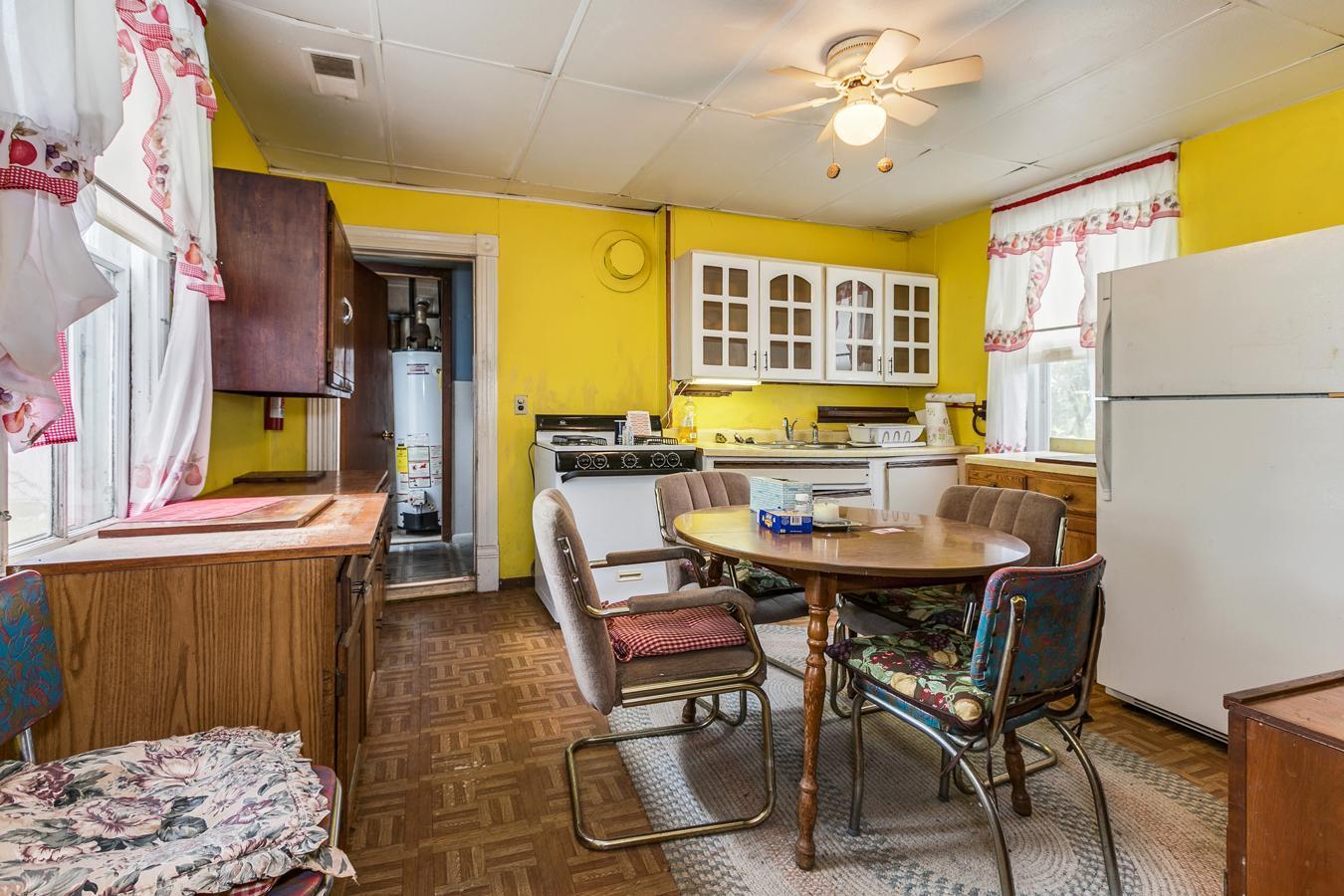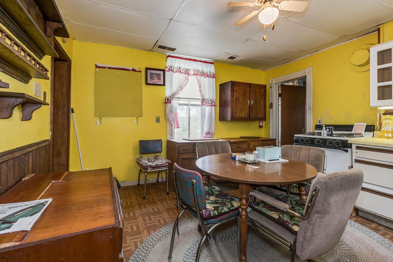 1900's farm house needs a lot of work. Selling AS-IS. Beautiful lot has fruit trees and gorgeous country views. The house has hardwood floors hidden under the carpets, lots of country charm potential.
