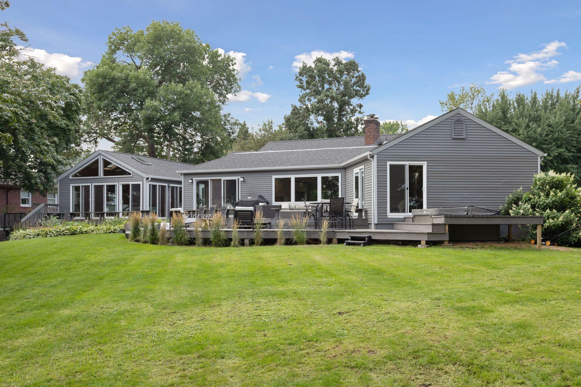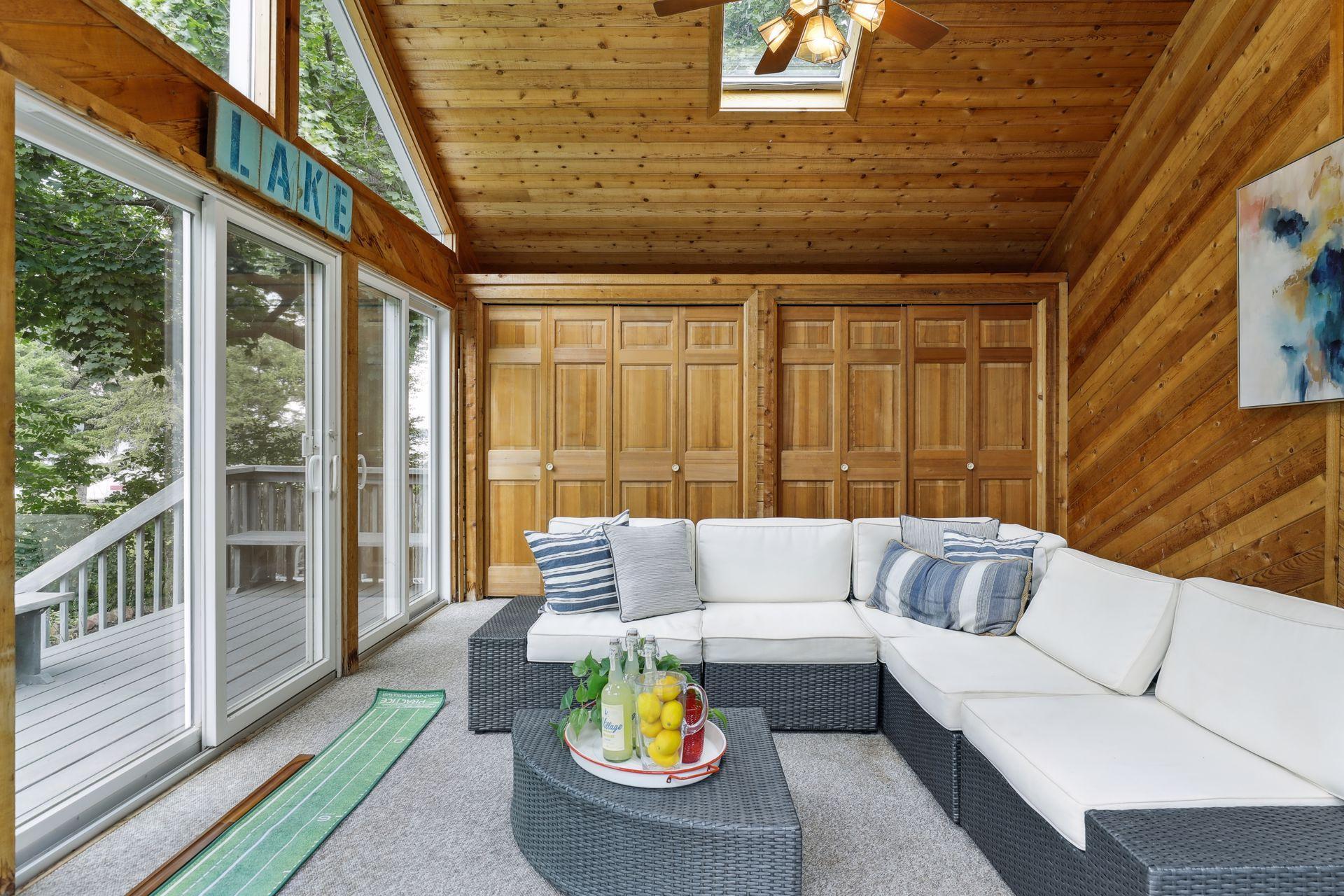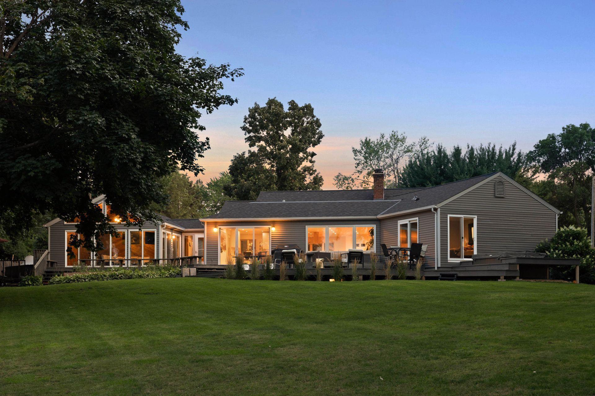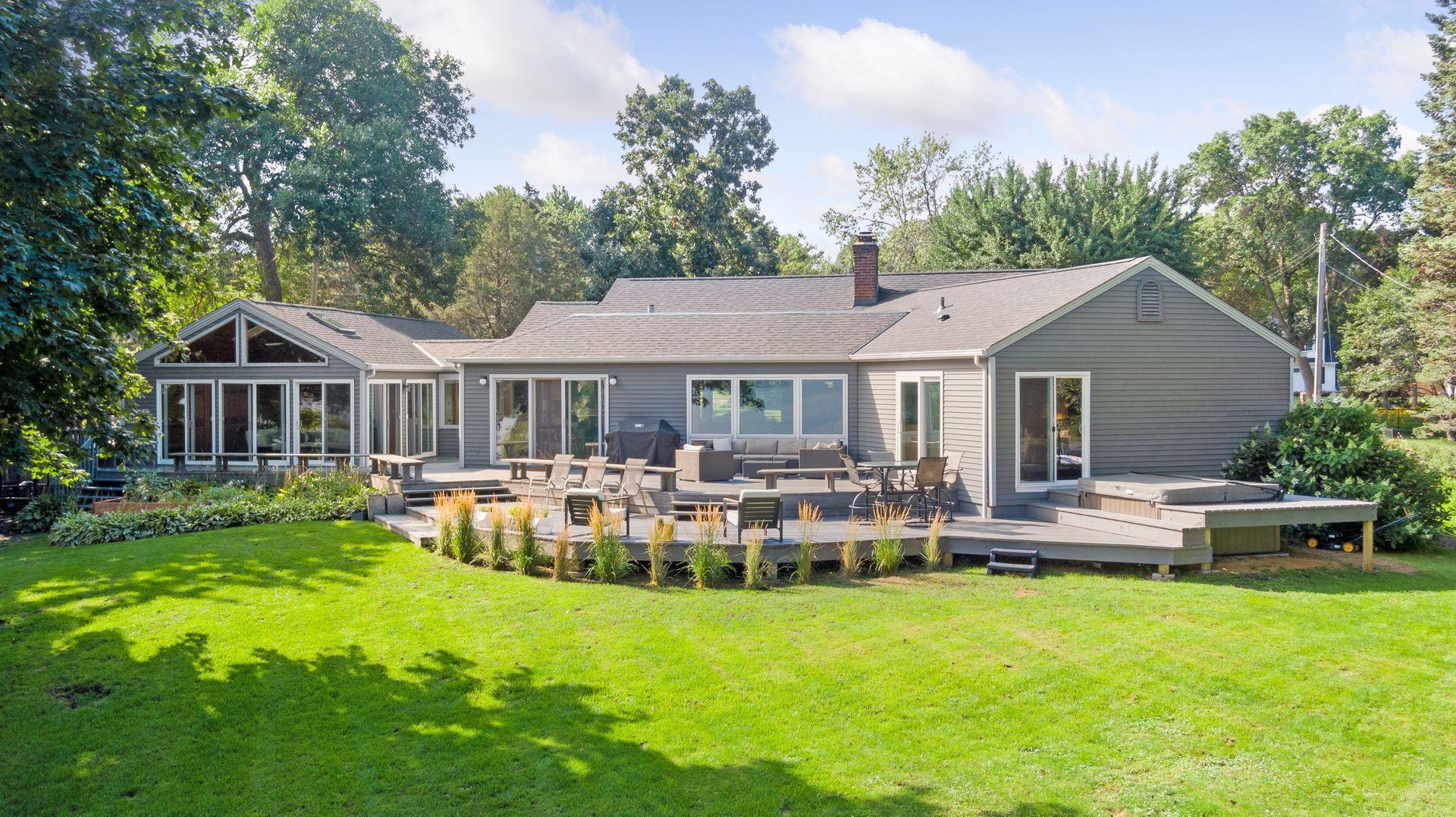 Welcome to 2215 S. Shore Blvd! This 4 BR, 3 BA home sits on a beautiful ONE acre lot, with 122’ of prime, well manicured lakeshore. Wonderfully remodeled with an open floor plan, gourmet kitchen w/ high end appliances, lovely wood floors, and modernized bathrooms…you will love the panoramic views of the lake and the large yard leading to it. The owners’ suite enjoys excellent views of the lake, and walks out to deck and hot tub. Embrace your best lake living here! Whether it’s morning coffee, evening sunsets, or everything in between…the home’s expansive deck and 3-season porch are just the cherry on top. The large horseshoe driveway wraps around additional street-side green space, perfect for the potential of adding an additional garage, or simply enjoying more room to play.