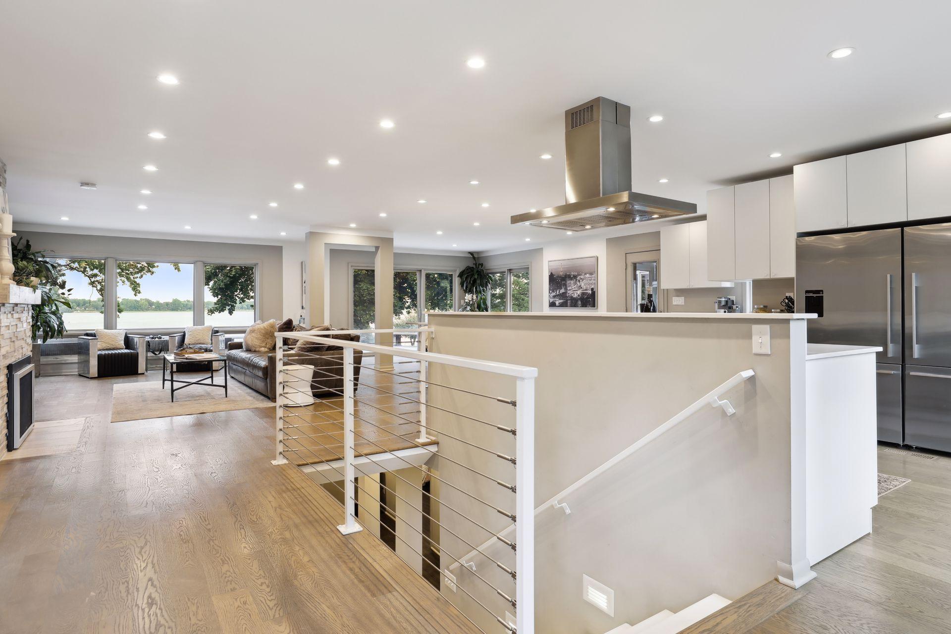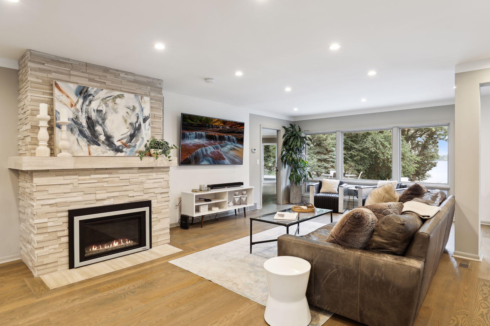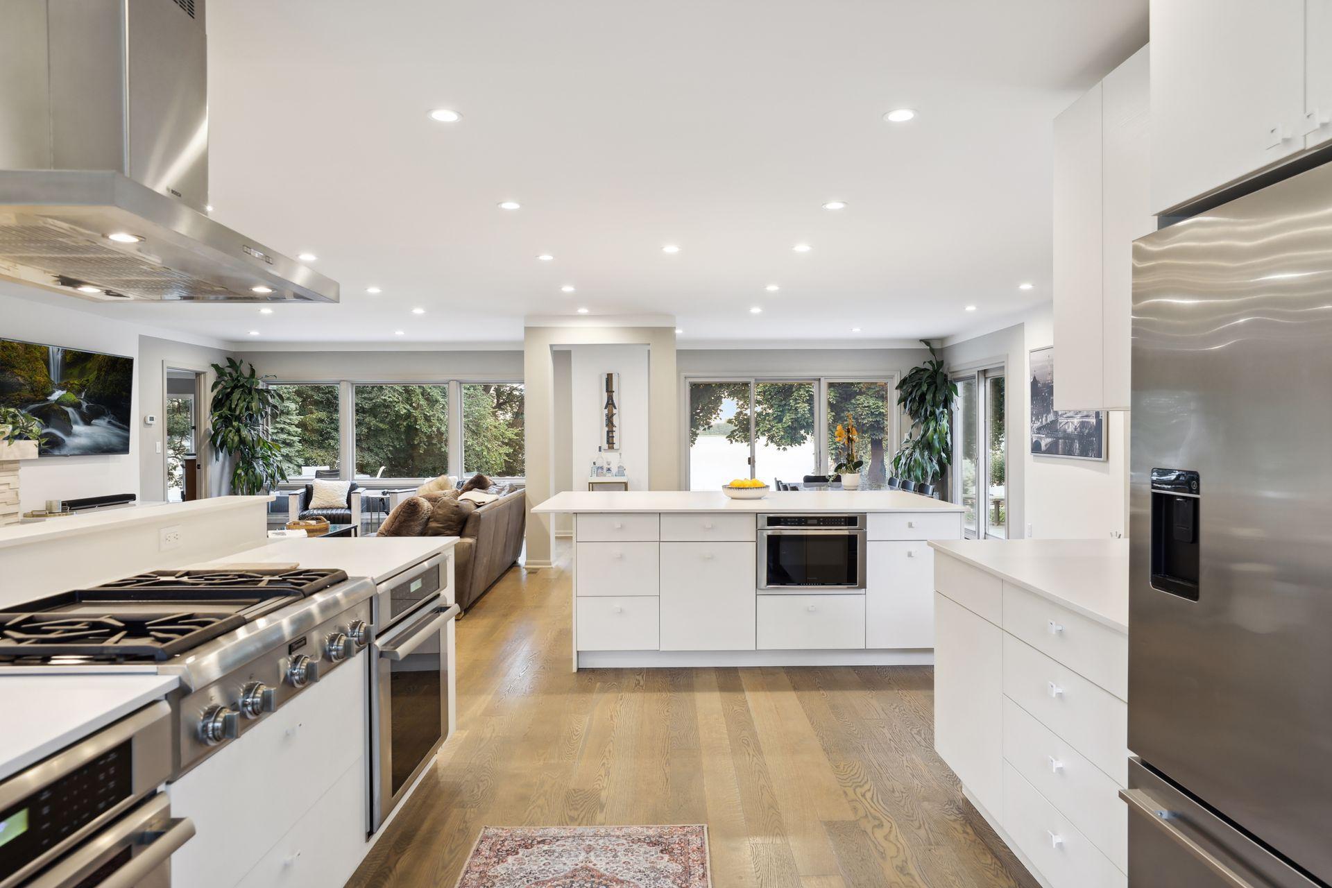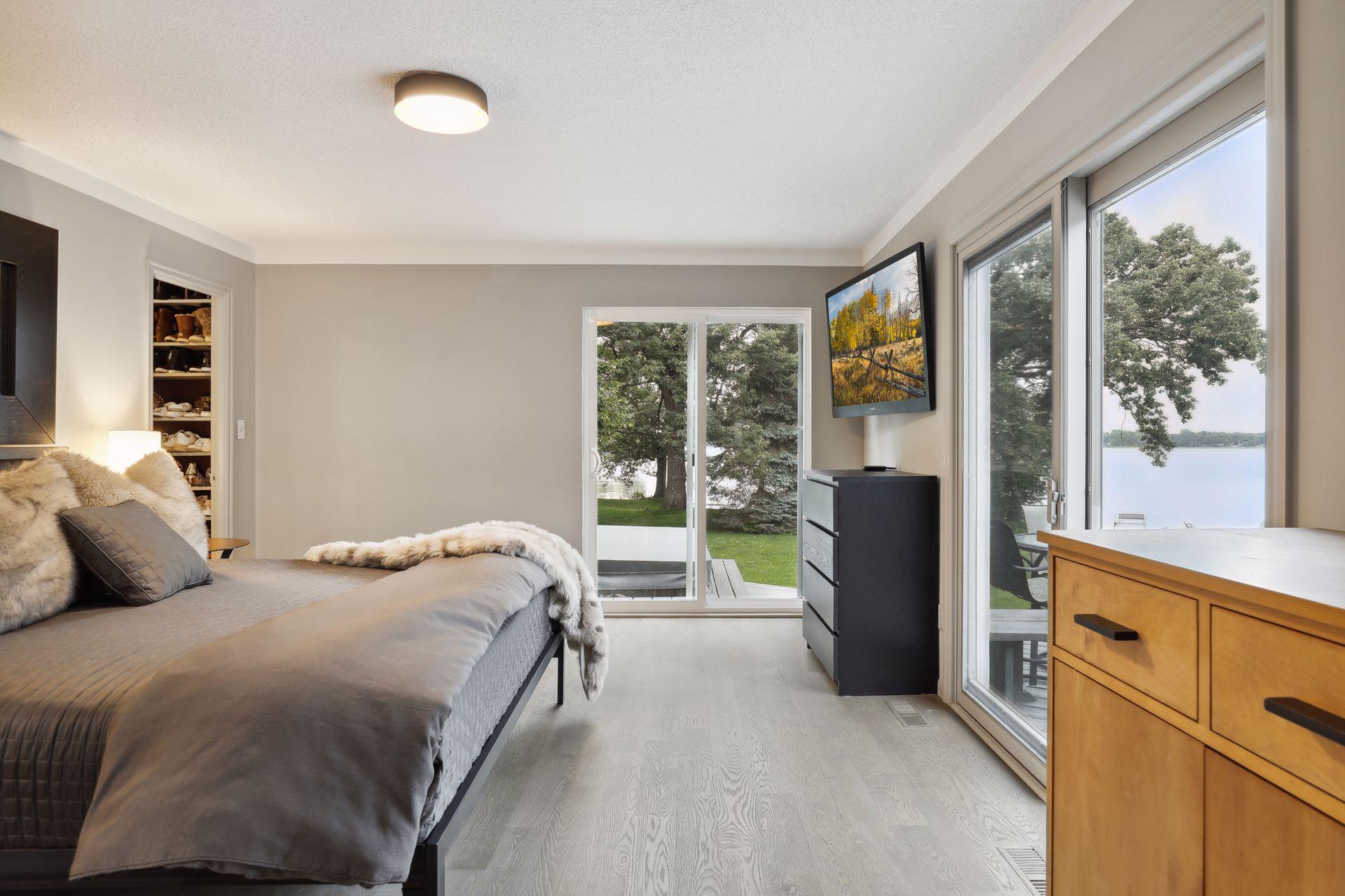 Welcome to 2215 S. Shore Blvd! This 4 BR, 3 BA home sits on a beautiful ONE acre lot, with 122’ of prime, well manicured lakeshore. Wonderfully remodeled with an open floor plan, gourmet kitchen w/ high end appliances, lovely wood floors, and modernized bathrooms…you will love the panoramic views of the lake and the large yard leading to it. The owners’ suite enjoys excellent views of the lake, and walks out to deck and hot tub. Embrace your best lake living here! Whether it’s morning coffee, evening sunsets, or everything in between…the home’s expansive deck and 3-season porch are just the cherry on top. The large horseshoe driveway wraps around additional street-side green space, perfect for the potential of adding an additional garage, or simply enjoying more room to play.