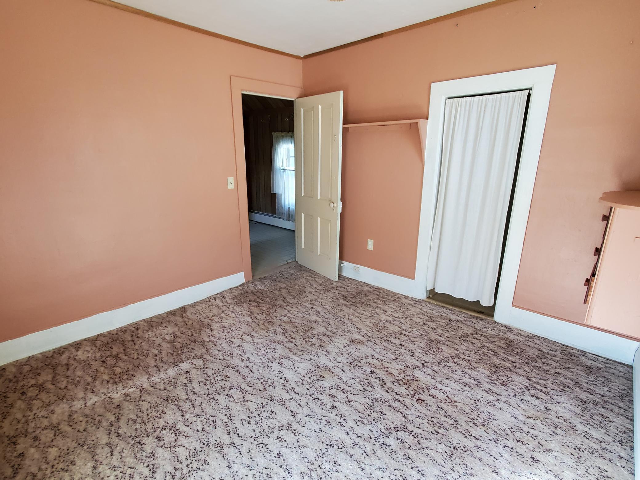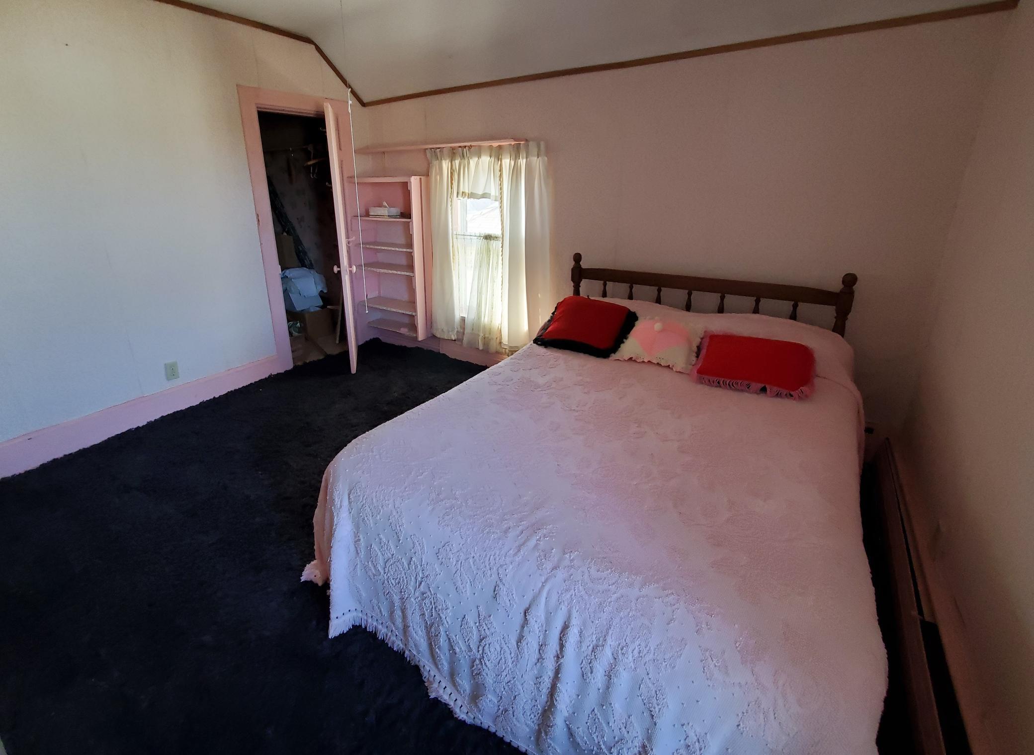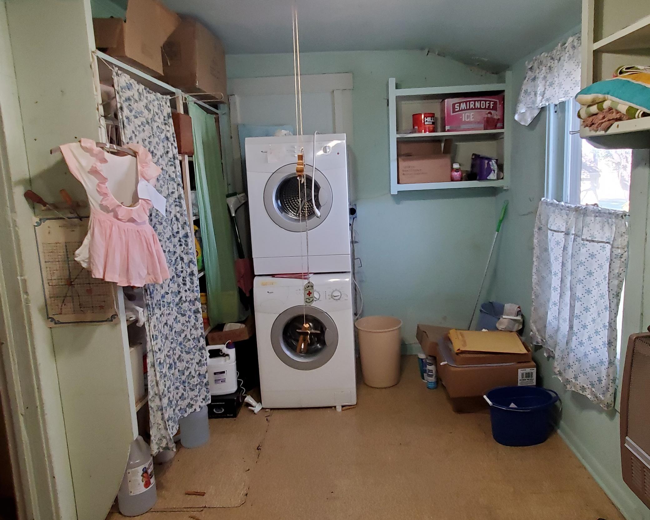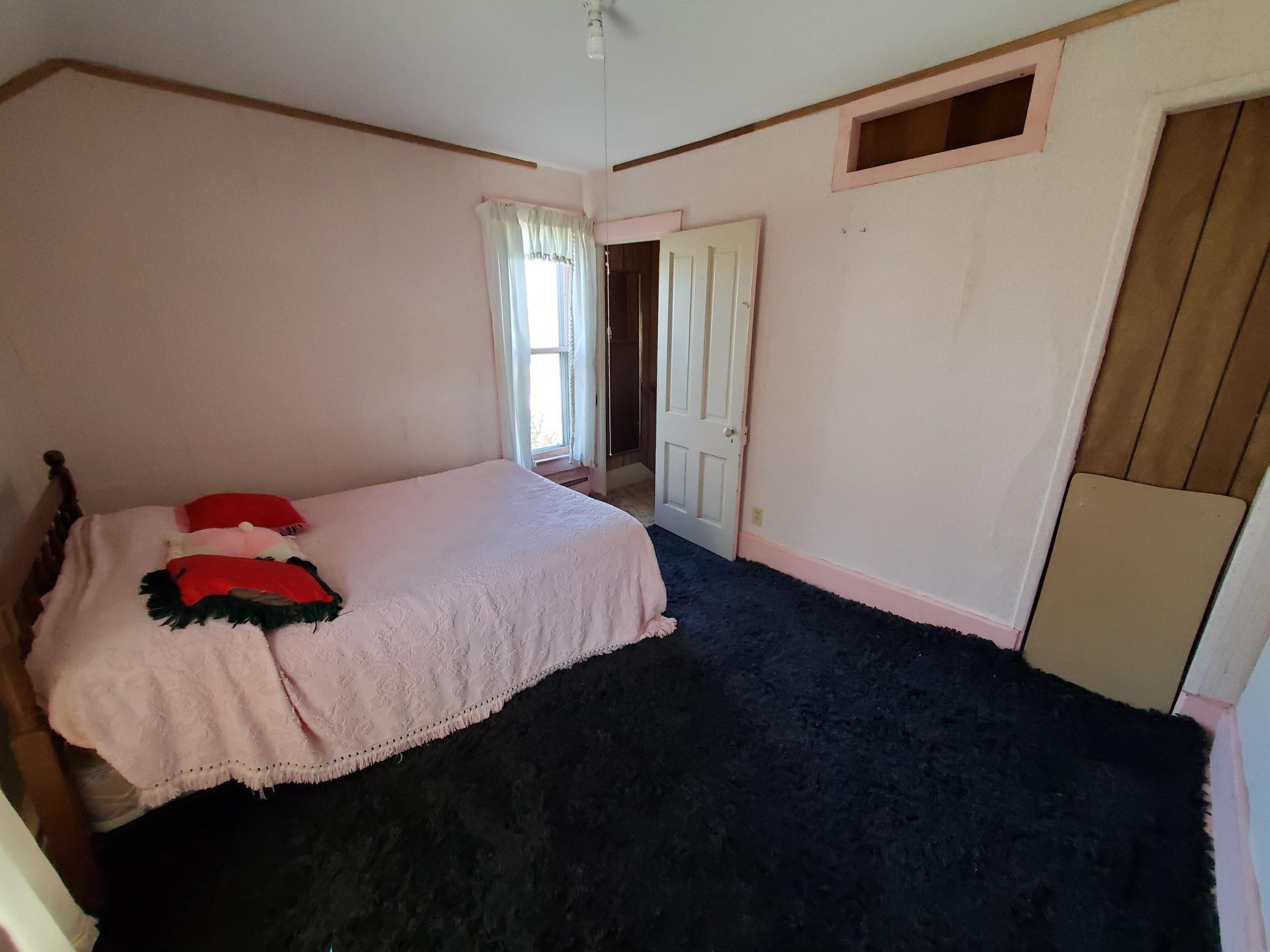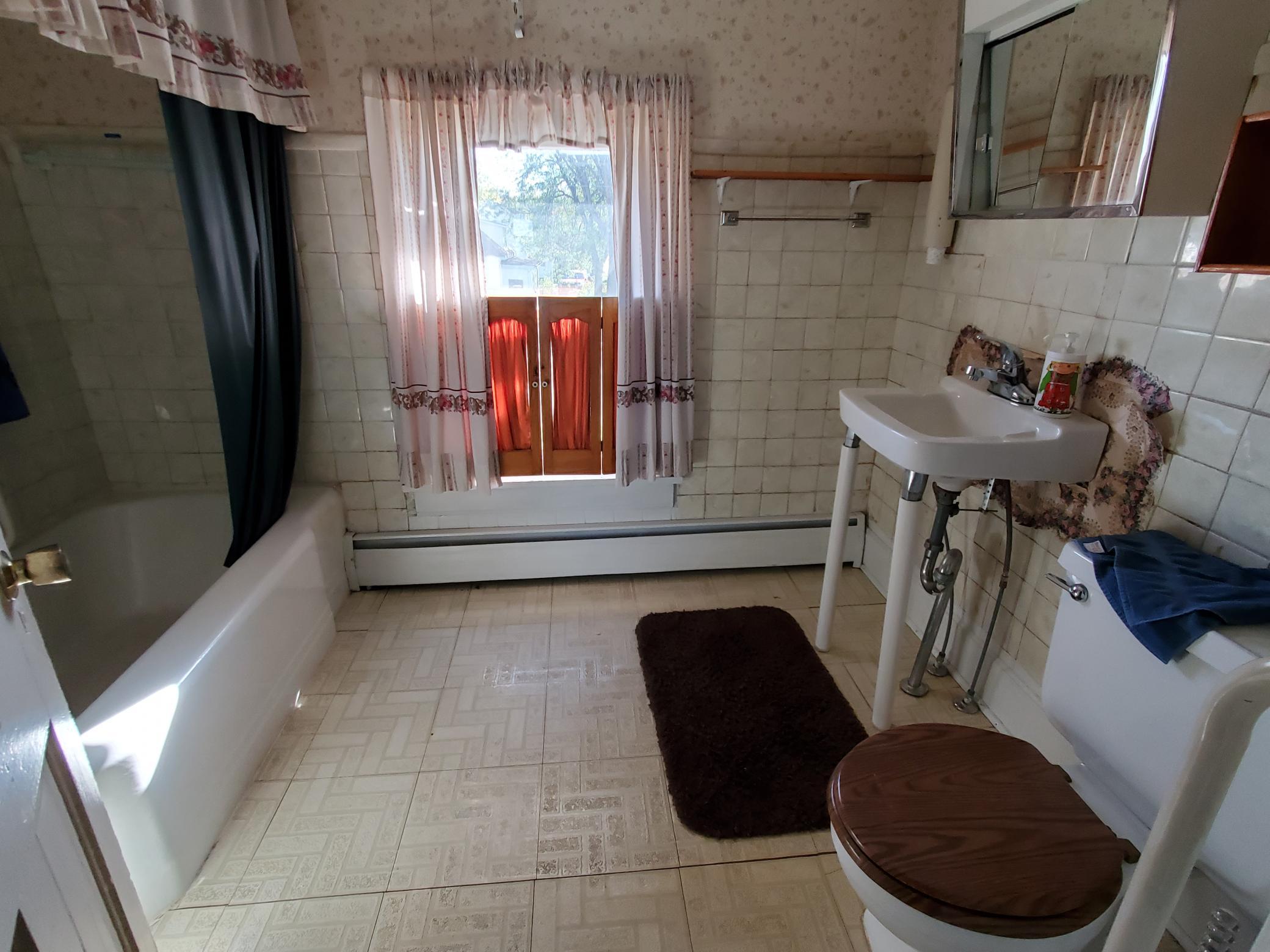 Spacious 4 bedroom home with 2 baths. Convenient wheel chair ramp leads to front enclosed porch. Main floor has living room, dining room, kitchen with oak cabinets, laundry/pantry room, plus a bedroom with 3/4 bath. Upper level has 3 bedrooms with plenty of closet space and full bath. Basement is unfinished with extra room for potential rec/family room. Chain link fenced in yard with storage shed. Attached carport and a detached garage with opener. Property is being SOLD AS IS.