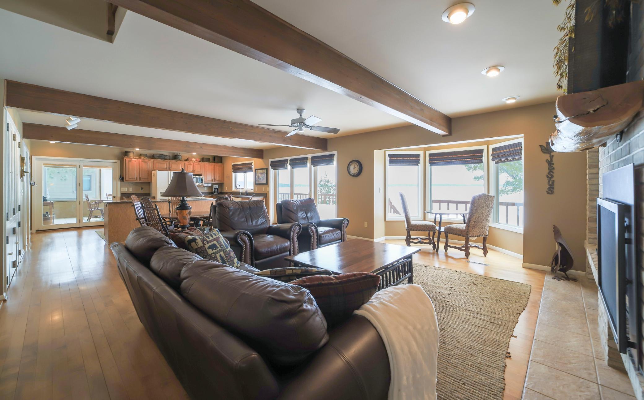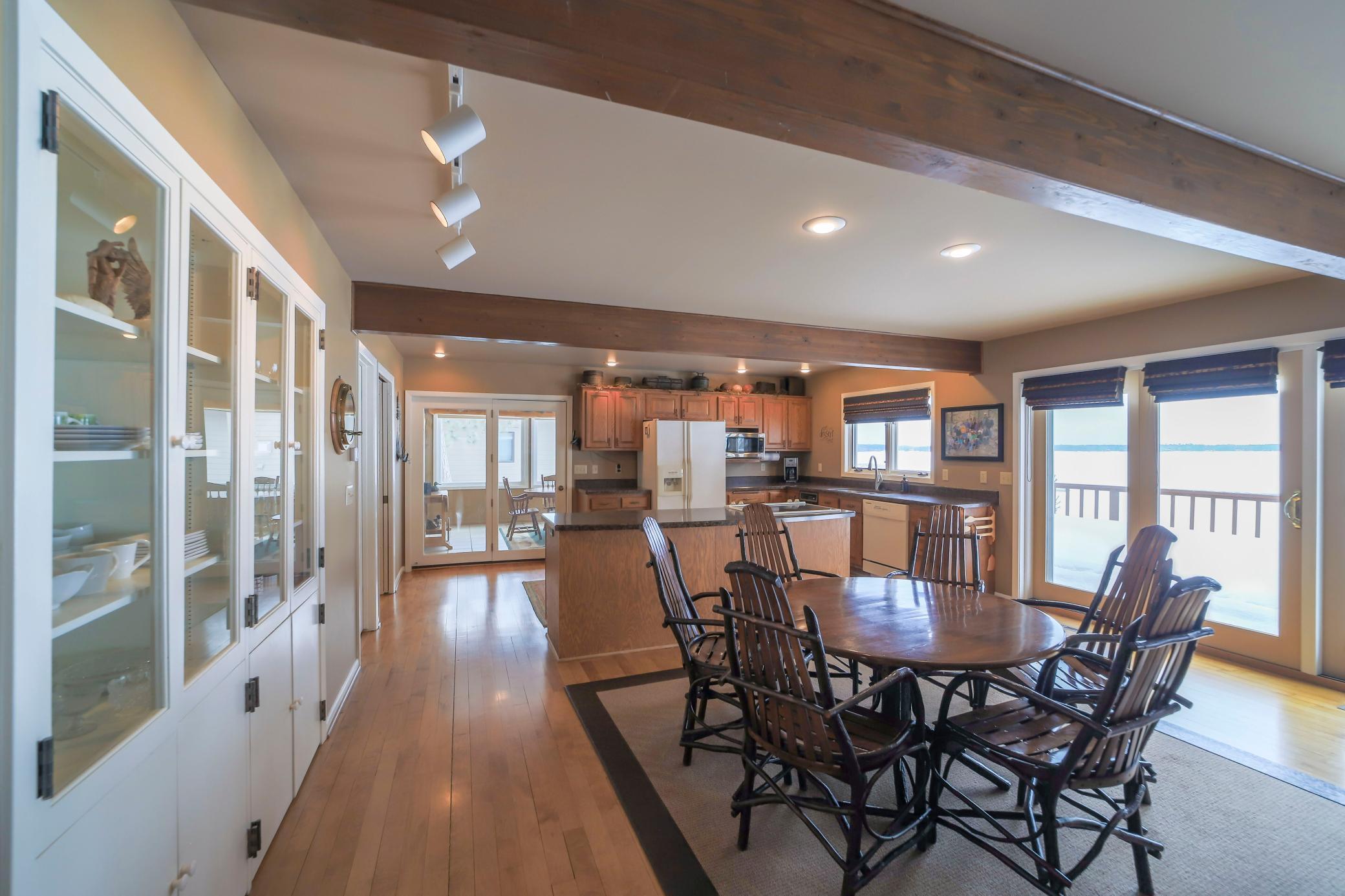 Public Remarks: Don't miss this four bedroom, four bath Pelican Lake home with over 5,600 square feet of living area. Home is located on the prestigious south end of Pelican Lake with 100 feet of sugar, sand beach with level elevation to the water's edge and has a hard to find heavily wooded 3.51 acre lot. Home features an open floor plan, hardwood floors, full finished walkout basement, landscaped yard, wooden beams, floor to ceiling brick fireplace, large lakeside deck, master bedroom suite that overlooks Pelican Lake, an attached two car garage and another two car detached garage. Don't miss this once in a lifetime property. Set up a showing today.