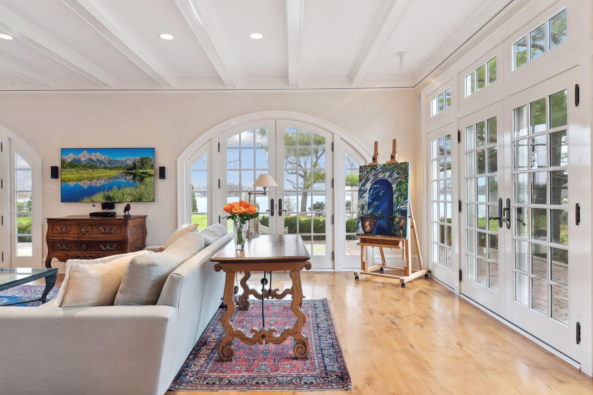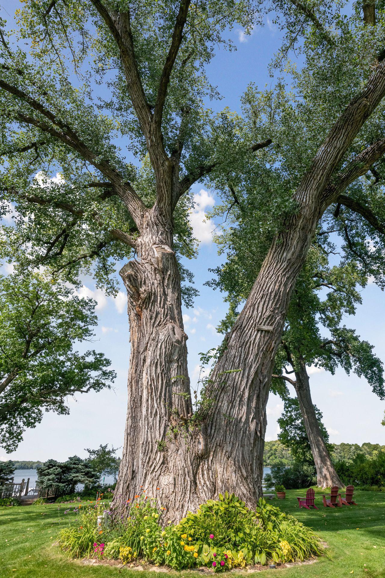 Gorgeous North-West facing estate setting on Lake Minnetonka. Enjoy 3.07 acres of grounds accessed off of a long winding driveway through towering mature trees, a level lawn to the lake, rip rap shoreline, deck on the waters edge as well as mature canopy and green walls of lush landscaping around the perimeter. The property offers approximately 864 feet of total water frontage (~249 ft of lakeshore on Maxwell Bay and ~615 ft of lakeshore on the channel including permanent inlet boat slip)! Views are comprised of long water views over Maxwell Bay and private wooded nature preserve of Noerenberg Memorial Gardens. Rumor has it, the largest Cottonwood tree in the state of MN is sitting center stage on this property (40 ft circumference at the base + 120 ft spread at the top of the canopy)!