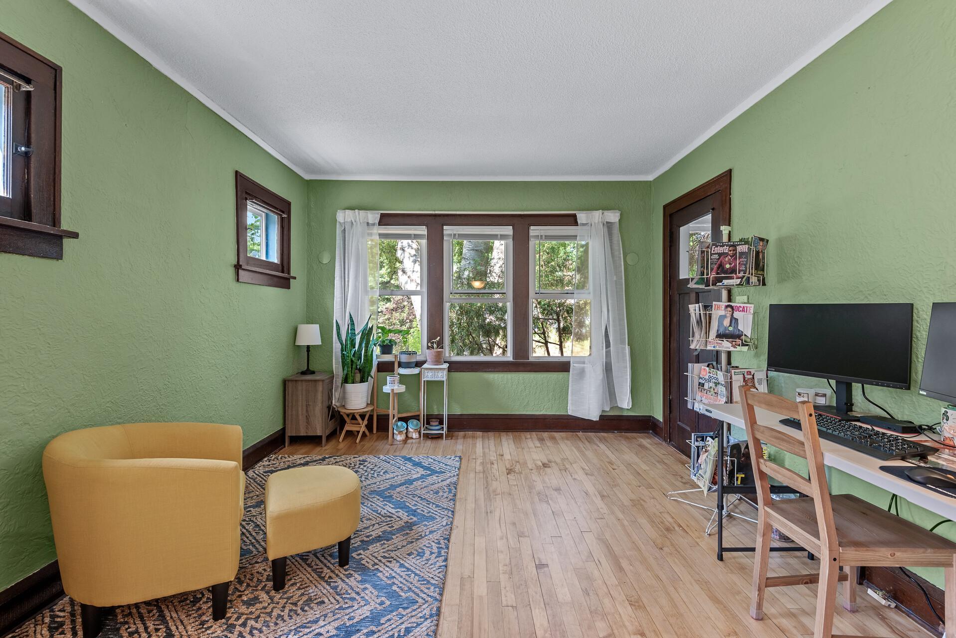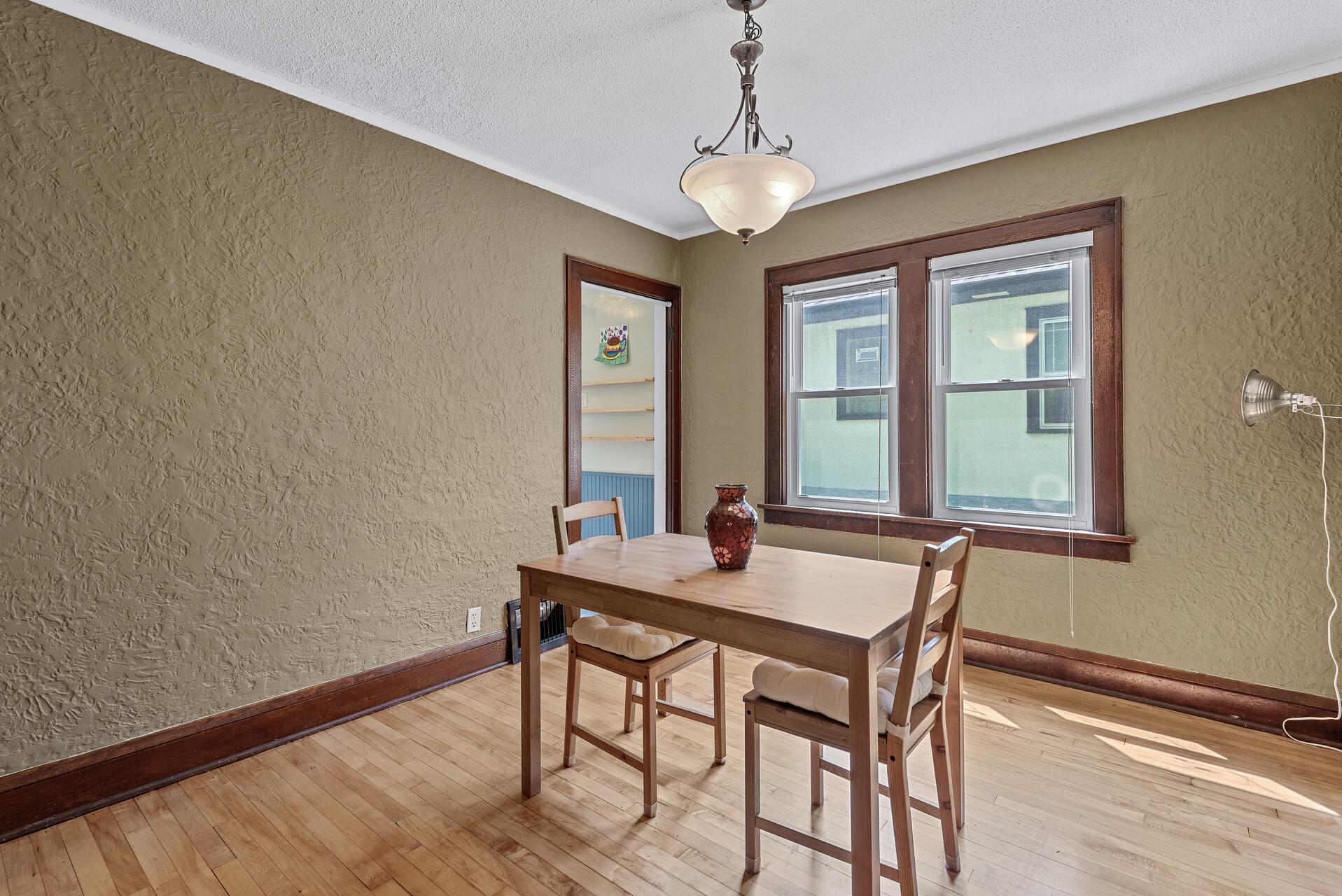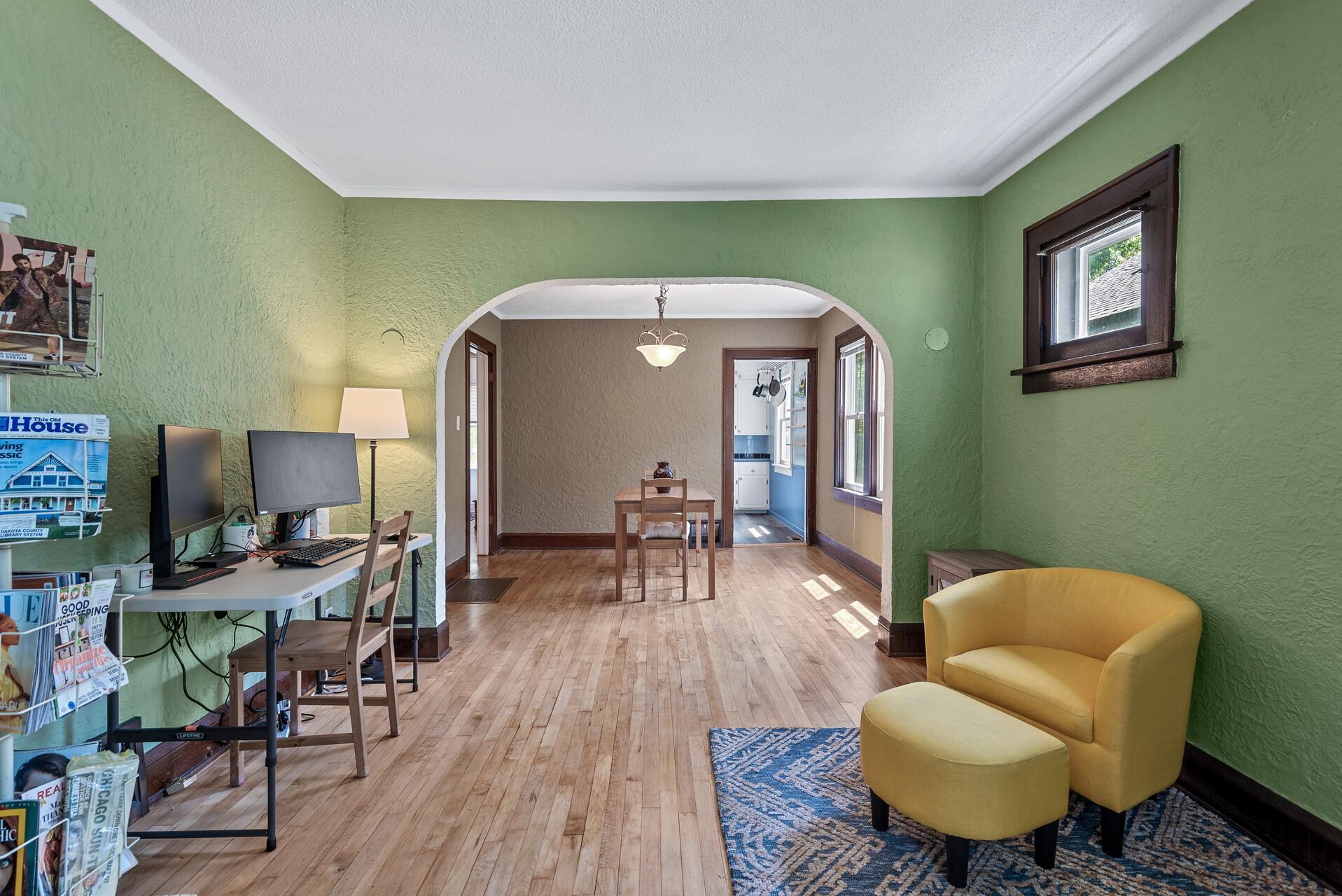 Charming and move-in ready! This two-bedroom home with original hardwood floors and updated finishes is ready for you to make your home. Welcome your guests in through the 3-season front porch. Enjoy gardening this summer in the raised beds along the south side of the home. Take advantage of the extra storage in the garage! Basement office space not counted in finished square footage.