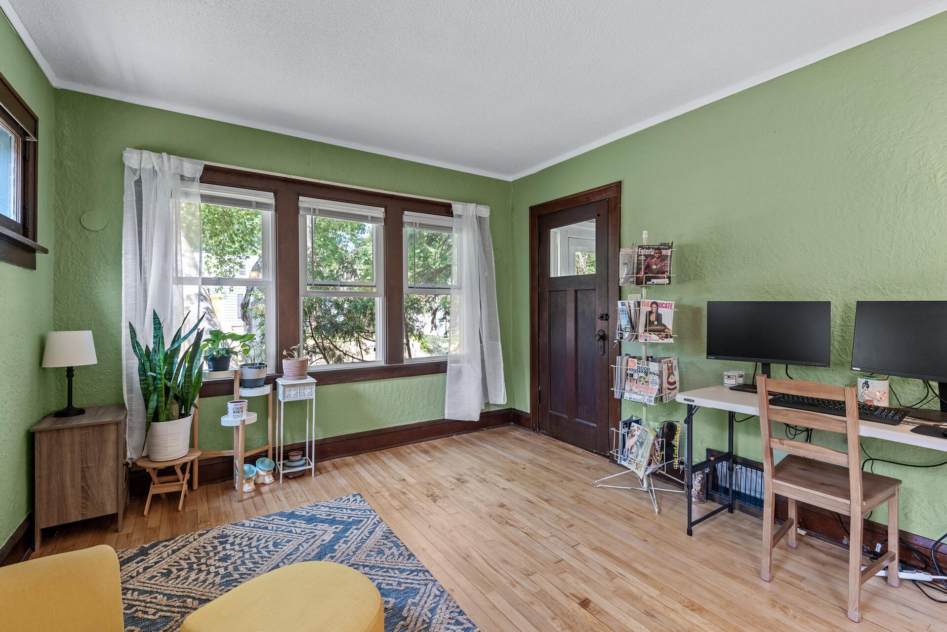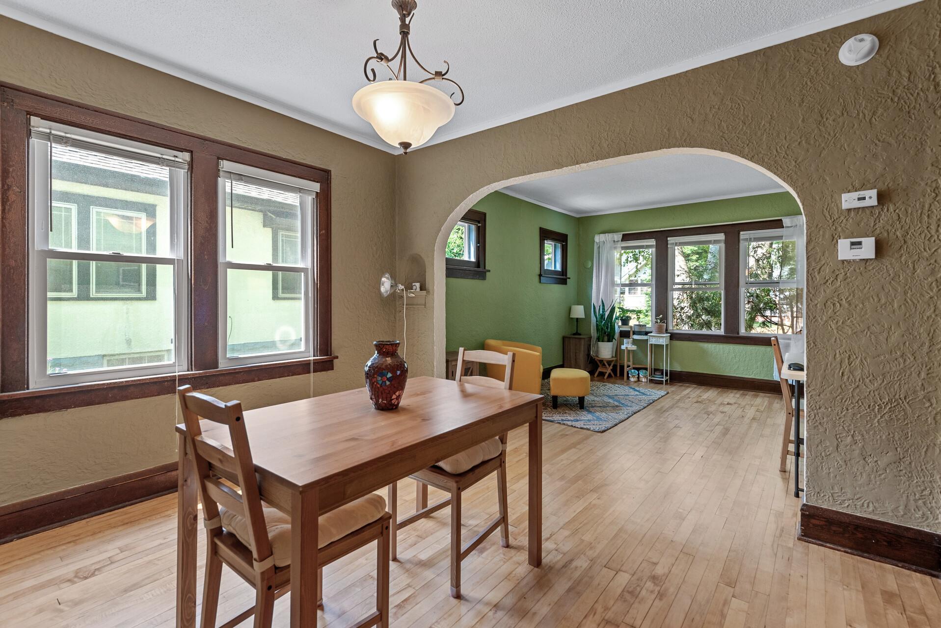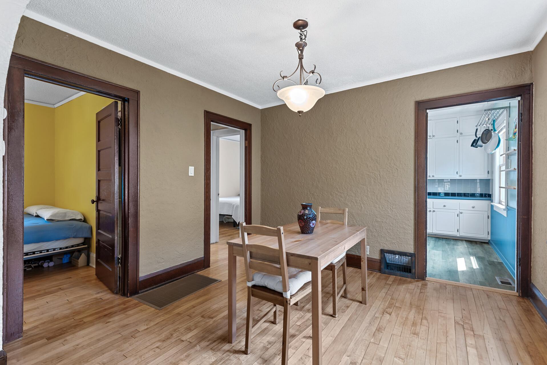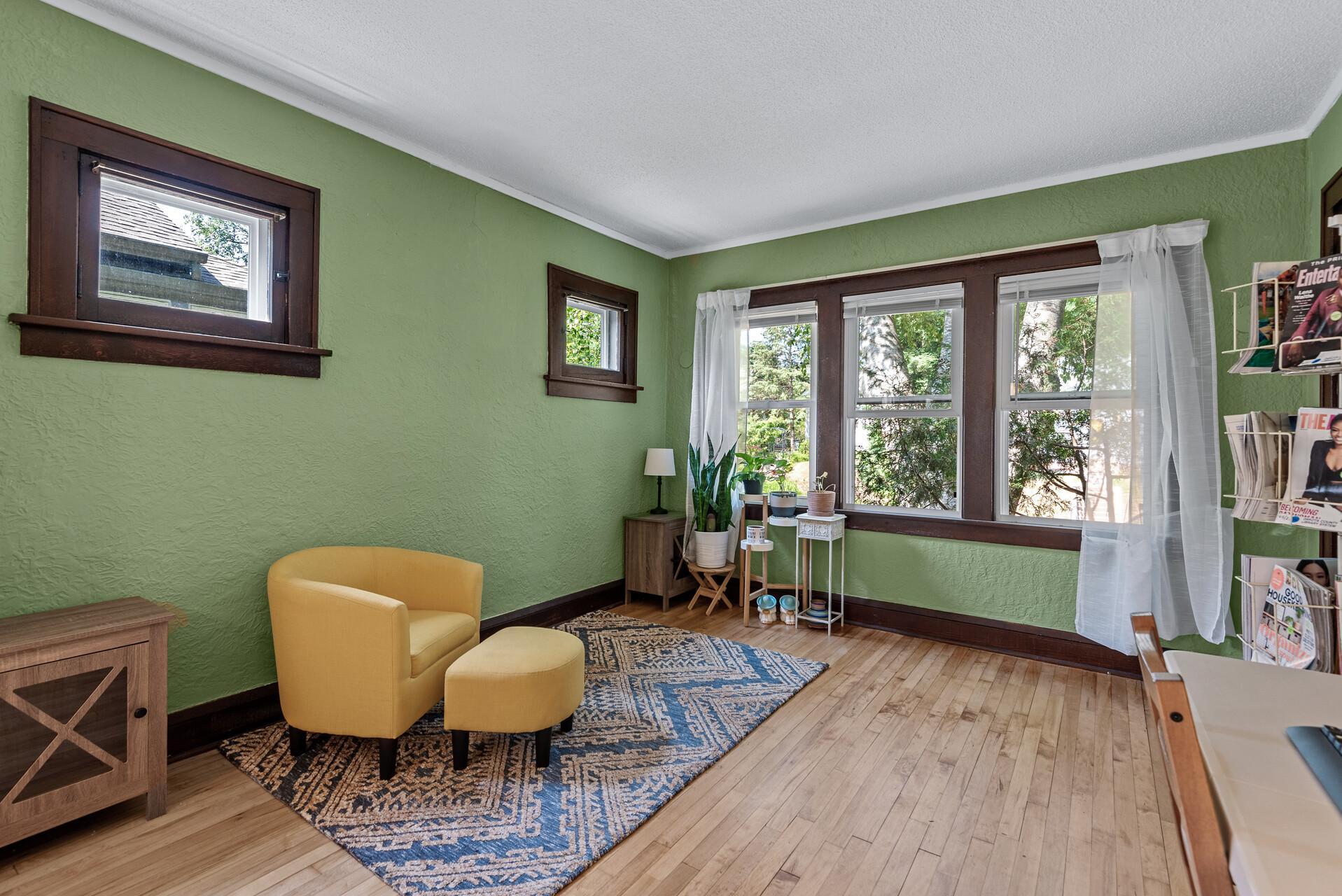 Charming and move-in ready! This two-bedroom home with original hardwood floors and updated finishes is ready for you to make your home. Welcome your guests in through the 3-season front porch. Enjoy gardening this summer in the raised beds along the south side of the home. Take advantage of the extra storage in the garage! Basement office space not counted in finished square footage.