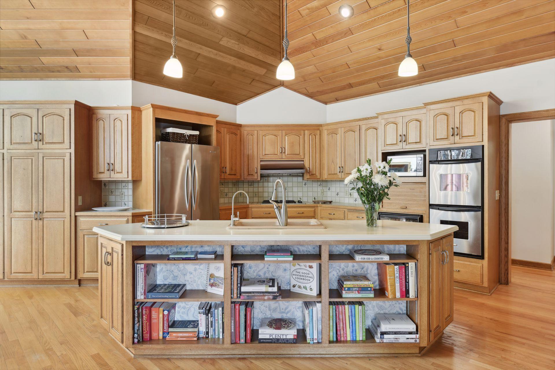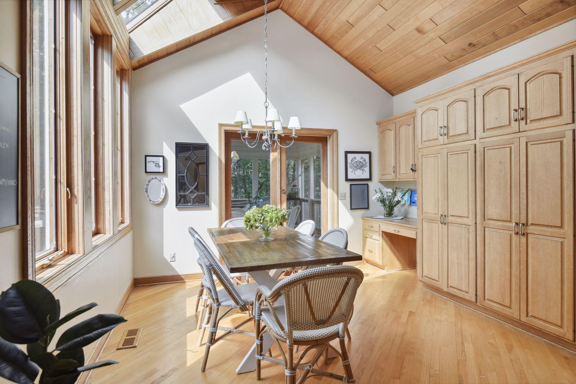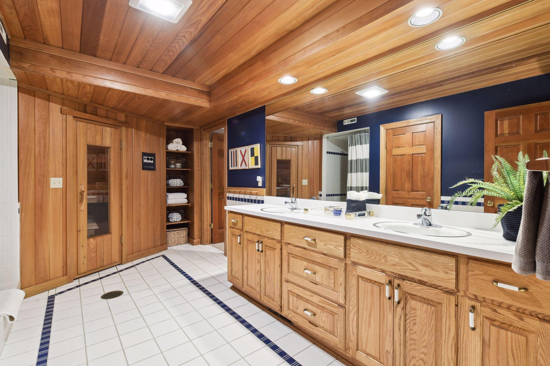 Amenities Unit: Ceiling Fan(s); Deck; French Doors; Hardwood Floors; In-Ground Sprinkler; Kitchen Center Island; Kitchen Window; Main Floor Primary Bedroom; Natural Woodwork; Paneled Doors; Patio; Porch; Primary Bedroom Walk-In Closet; Satellite Dish; Sauna; Security System; Skylight; Tile Floors; Vaulted Ceiling(s); Walk-In Closet