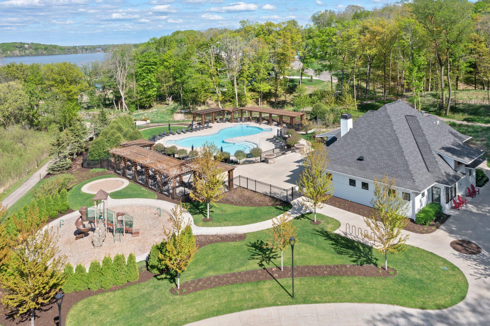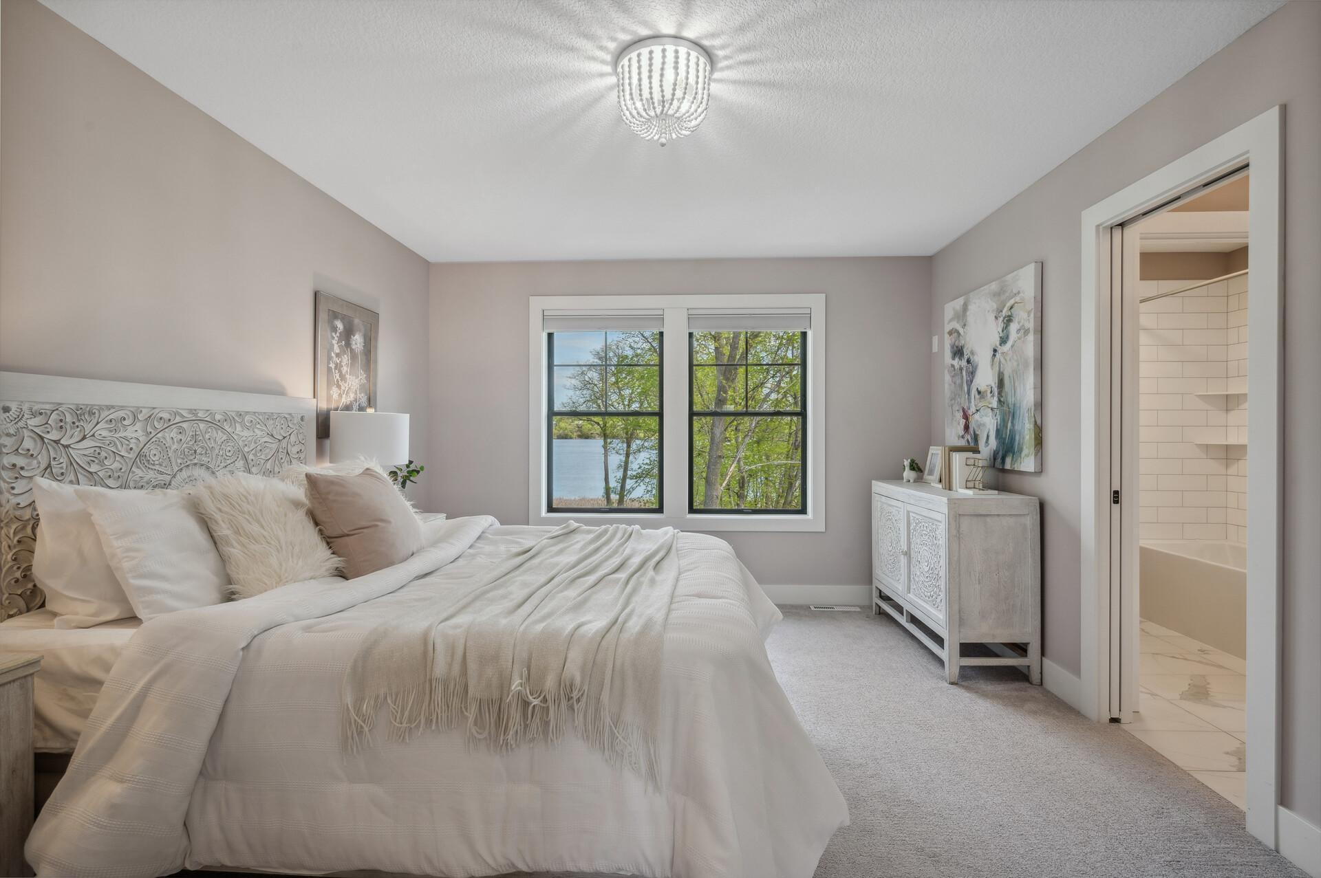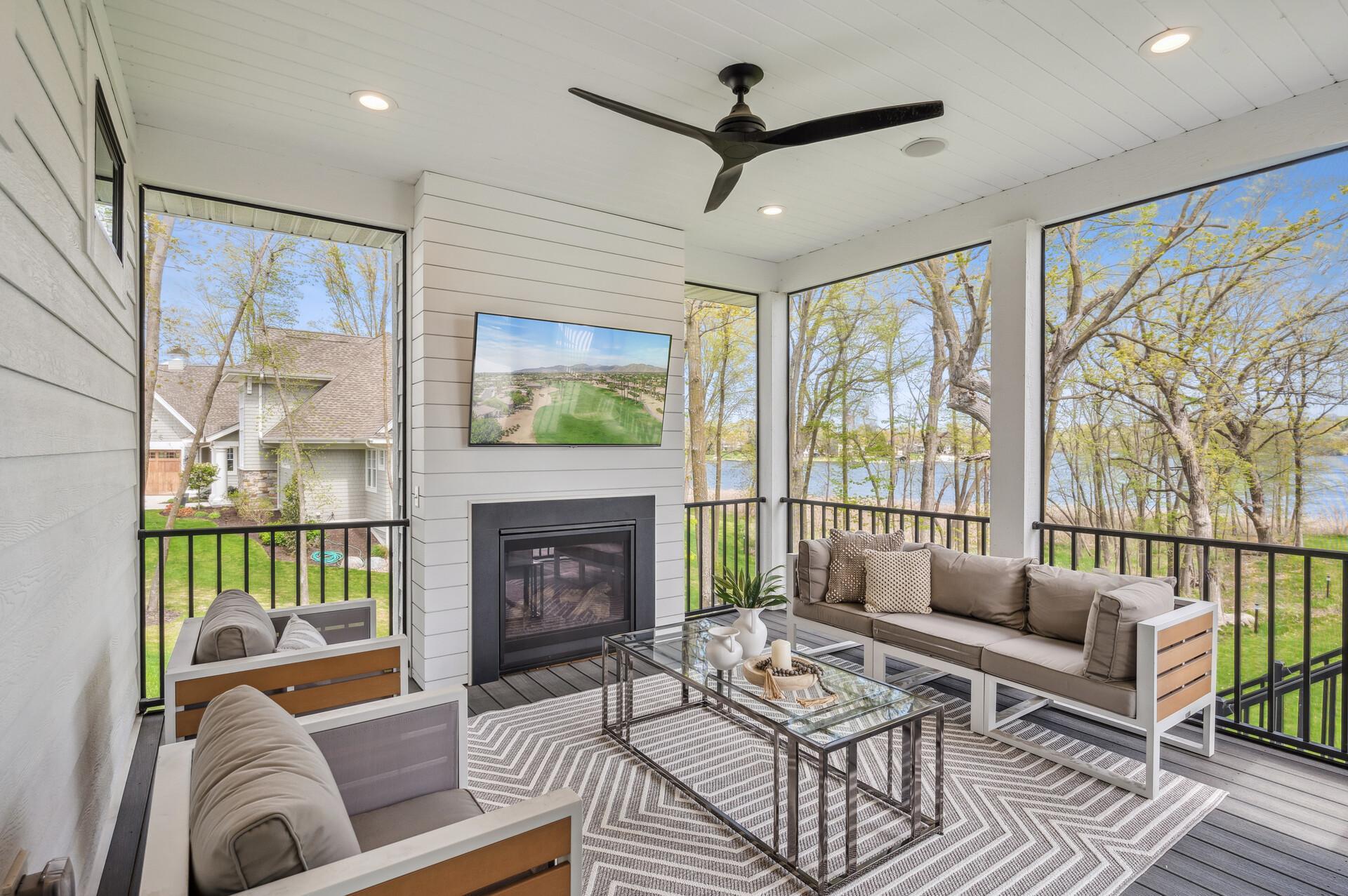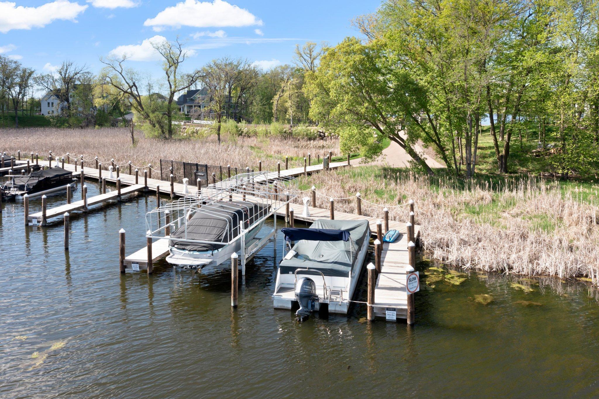 Nestled on over an acre this impeccable 2-story home offers 220 feet of lakeshore to the pristine waters of Lake Minnetonka, including a shared private dock with two boat slips. Step through grand French doors into a world of luxury, where herringbone-style LVP floors & lofty 9-foot ceilings set a tone of sophistication. Relax by the gas-burning fireplace in the spacious living room, with large windows framing serene backyard views. The kitchen features quartz countertops, & premium appliances. Adjacent informal dining space leads to a stunning screened porch with gas fireplace. A versatile den & a large mudroom with a powder room complete the main level. Upstairs, the primary suite has a lavish private bathroom, while three additional bedrooms have their own bathroom access with an ensuite and jack-and jill style. Lower level features a family room, workout nook, two bedrooms, & access to the patio. Enjoy exclusive amenities including a clubhouse, pool, playground, & walking trails.