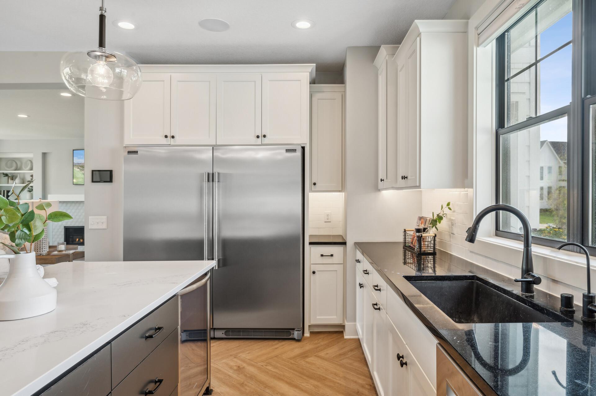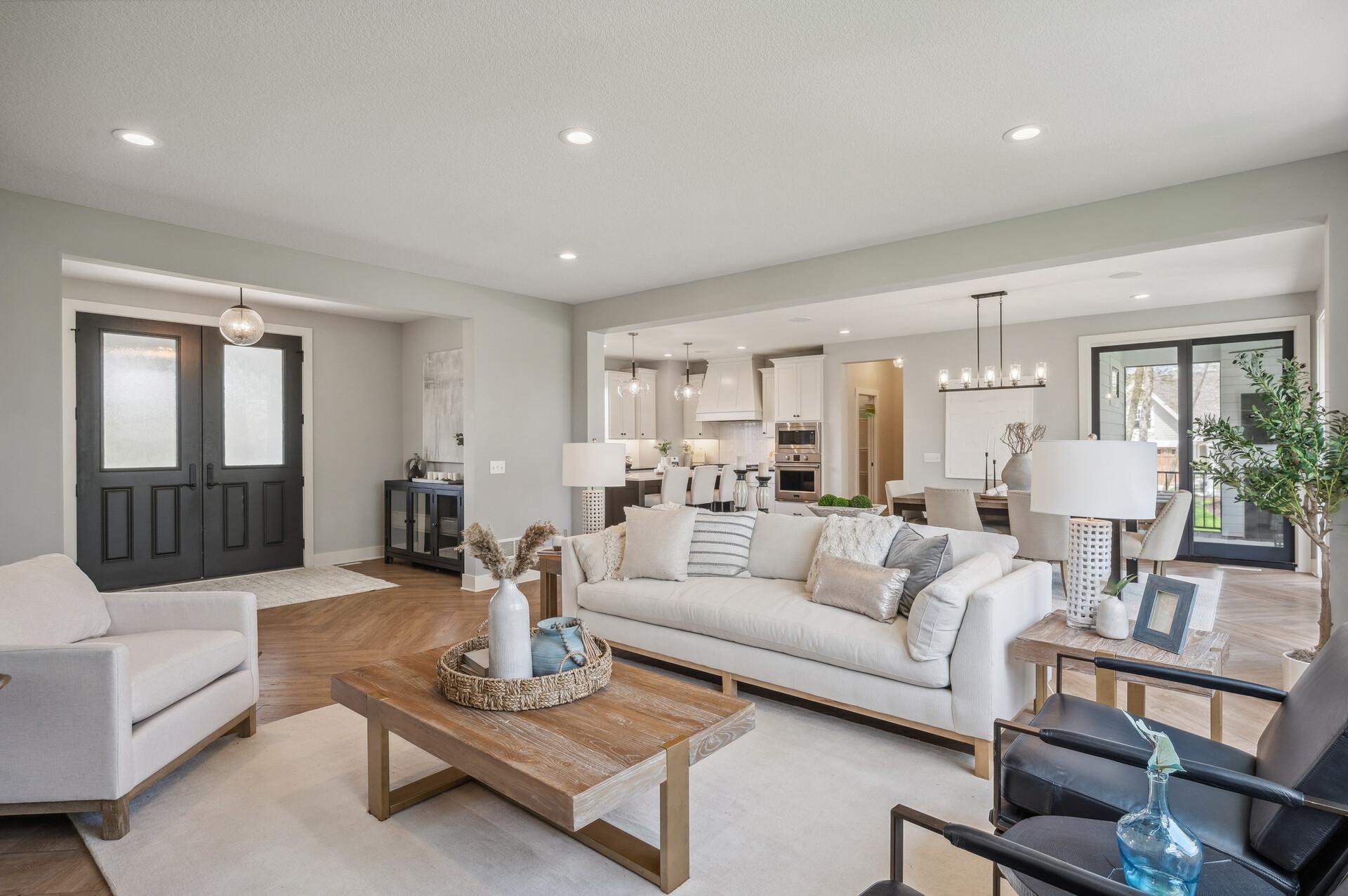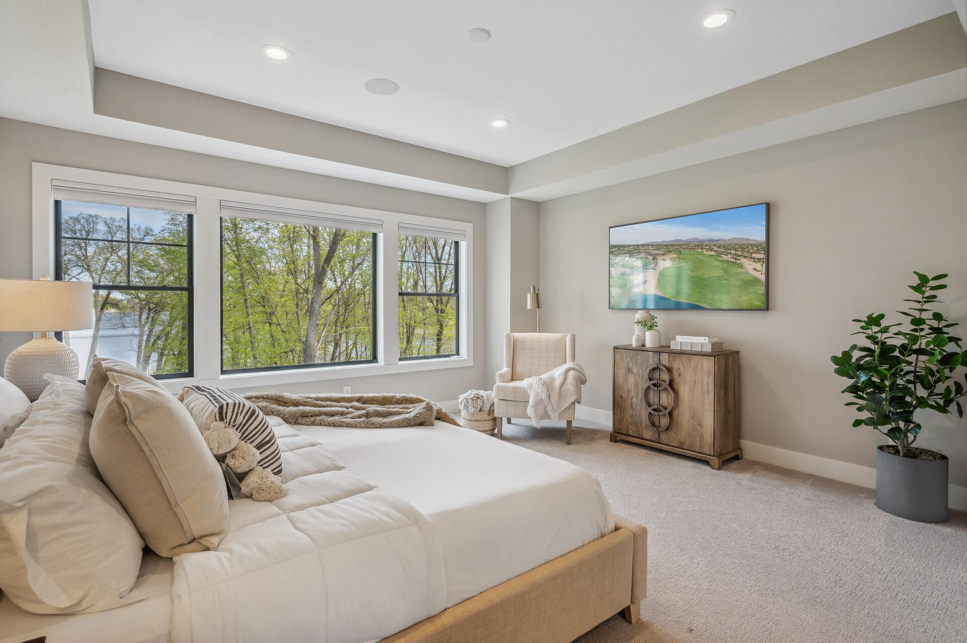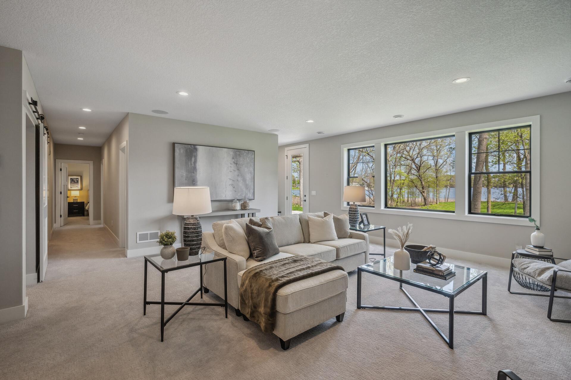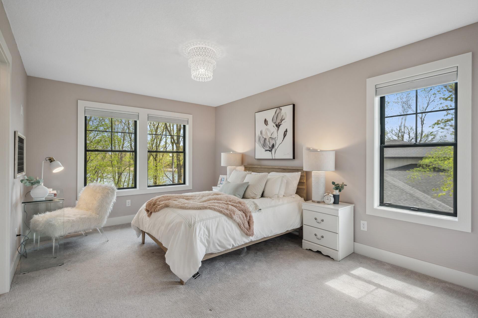 Nestled on over an acre this impeccable 2-story home offers 220 feet of lakeshore to the pristine waters of Lake Minnetonka, including a shared private dock with two boat slips. Step through grand French doors into a world of luxury, where herringbone-style LVP floors & lofty 9-foot ceilings set a tone of sophistication. Relax by the gas-burning fireplace in the spacious living room, with large windows framing serene backyard views. The kitchen features quartz countertops, & premium appliances. Adjacent informal dining space leads to a stunning screened porch with gas fireplace. A versatile den & a large mudroom with a powder room complete the main level. Upstairs, the primary suite has a lavish private bathroom, while three additional bedrooms have their own bathroom access with an ensuite and jack-and jill style. Lower level features a family room, workout nook, two bedrooms, & access to the patio. Enjoy exclusive amenities including a clubhouse, pool, playground, & walking trails.