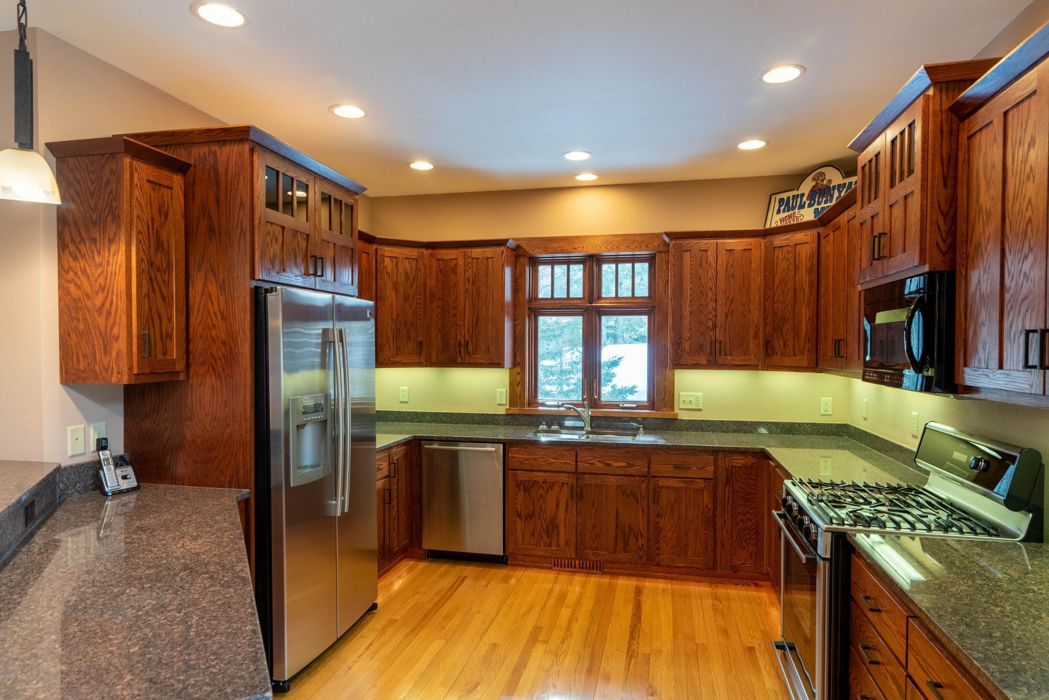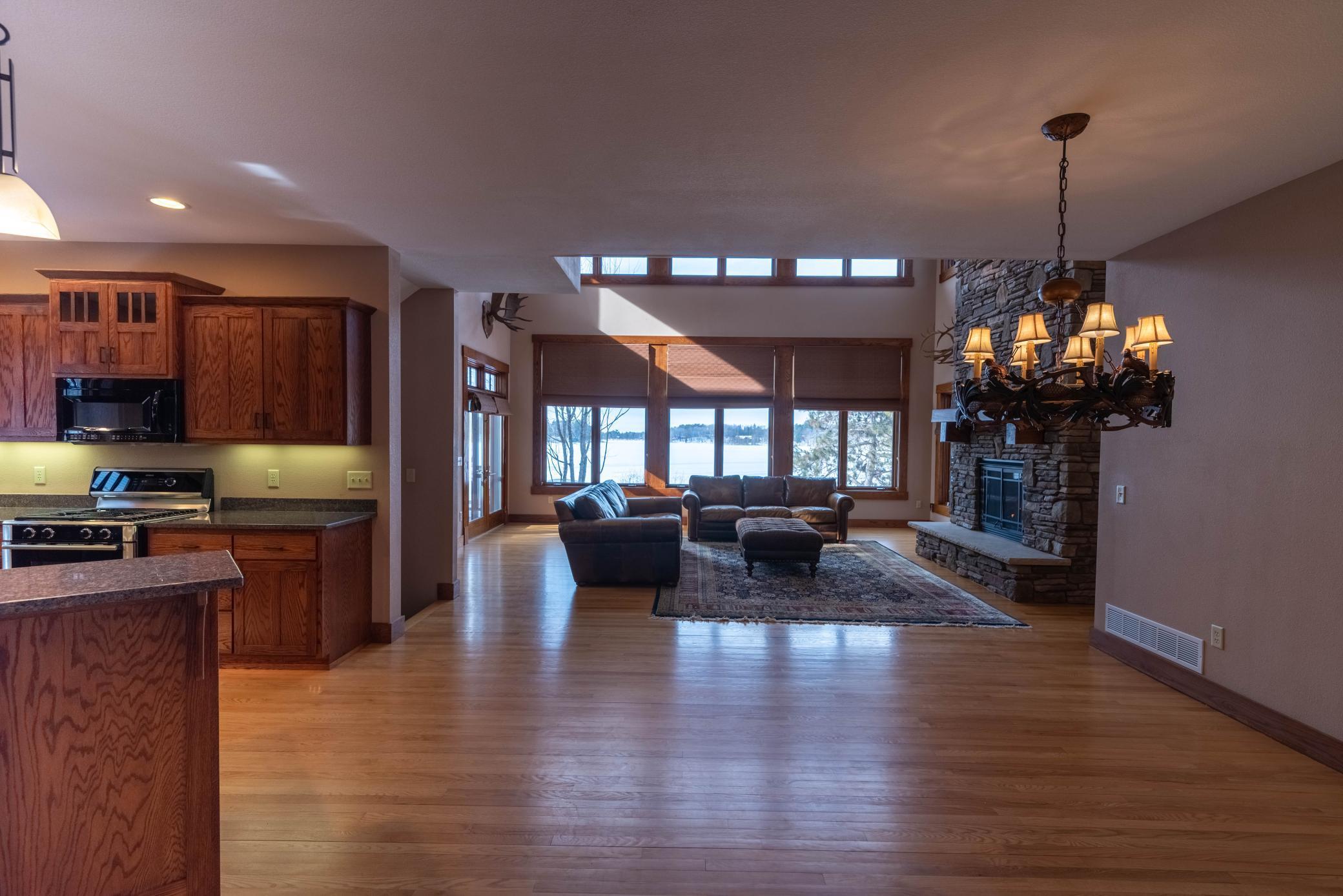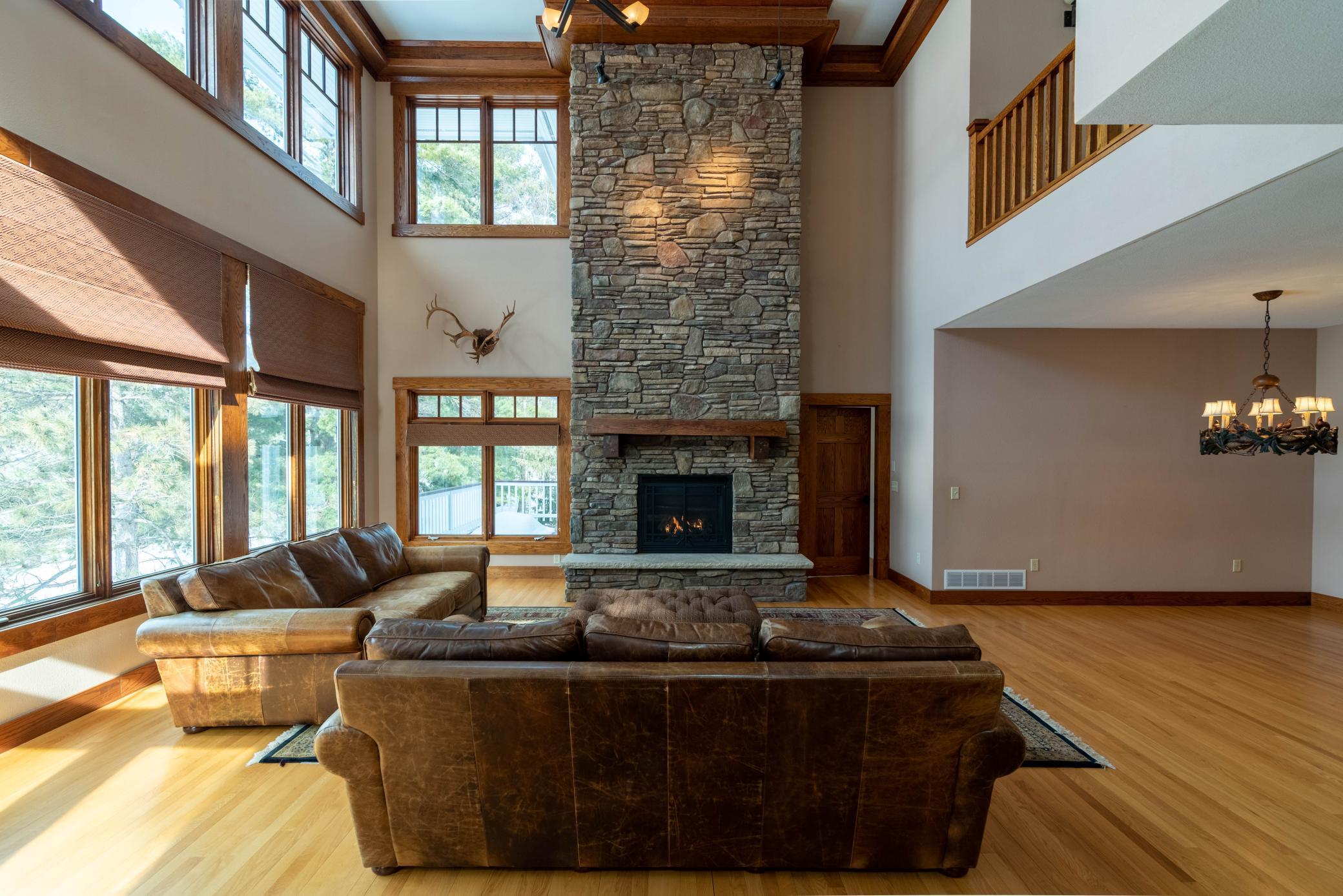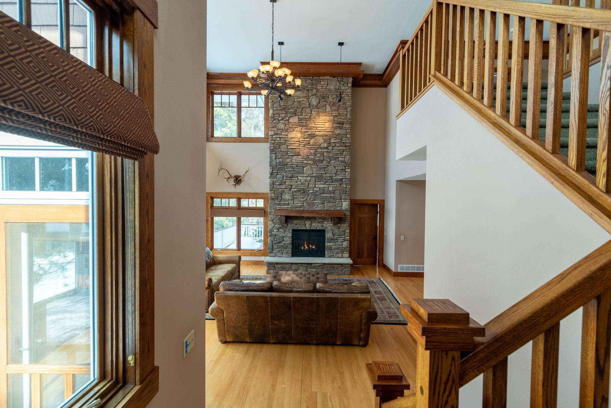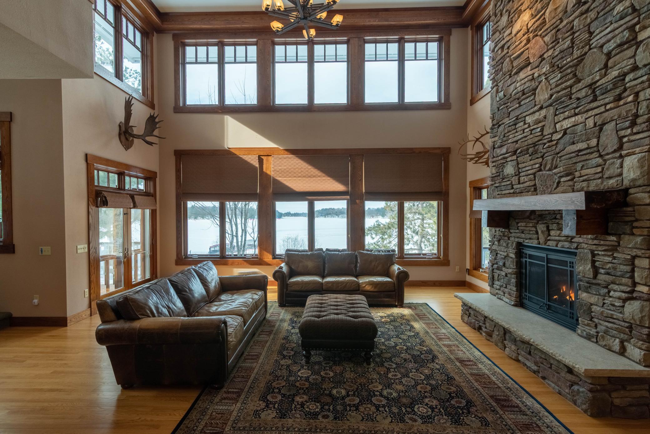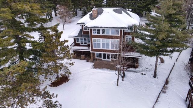 Public Remarks: Rush Lake on the famous Whitefish Chain of Lakes? Wait no more, this 4000+SF 4+BR 4+Bath Craftsman Style home is a 10! On 2.05 acres, with open 2 story Great Room, massive Stone Fireplace & multiple decks. Detailed Oak racetrack around the ceiling is backlit. Roomy & airy floorplan with large rooms, walkout basement, wet bar, paver walks & patio. Thick Oak trim & shaker style doors are reminiscent of Frank Lloyd Wright architecture. Full wall of lakeside windows & huge loft bring the outdoors in. West facing manicured grounds with amazing sunsets on the lake & easy elevation the the beach. Master bedroom & bath