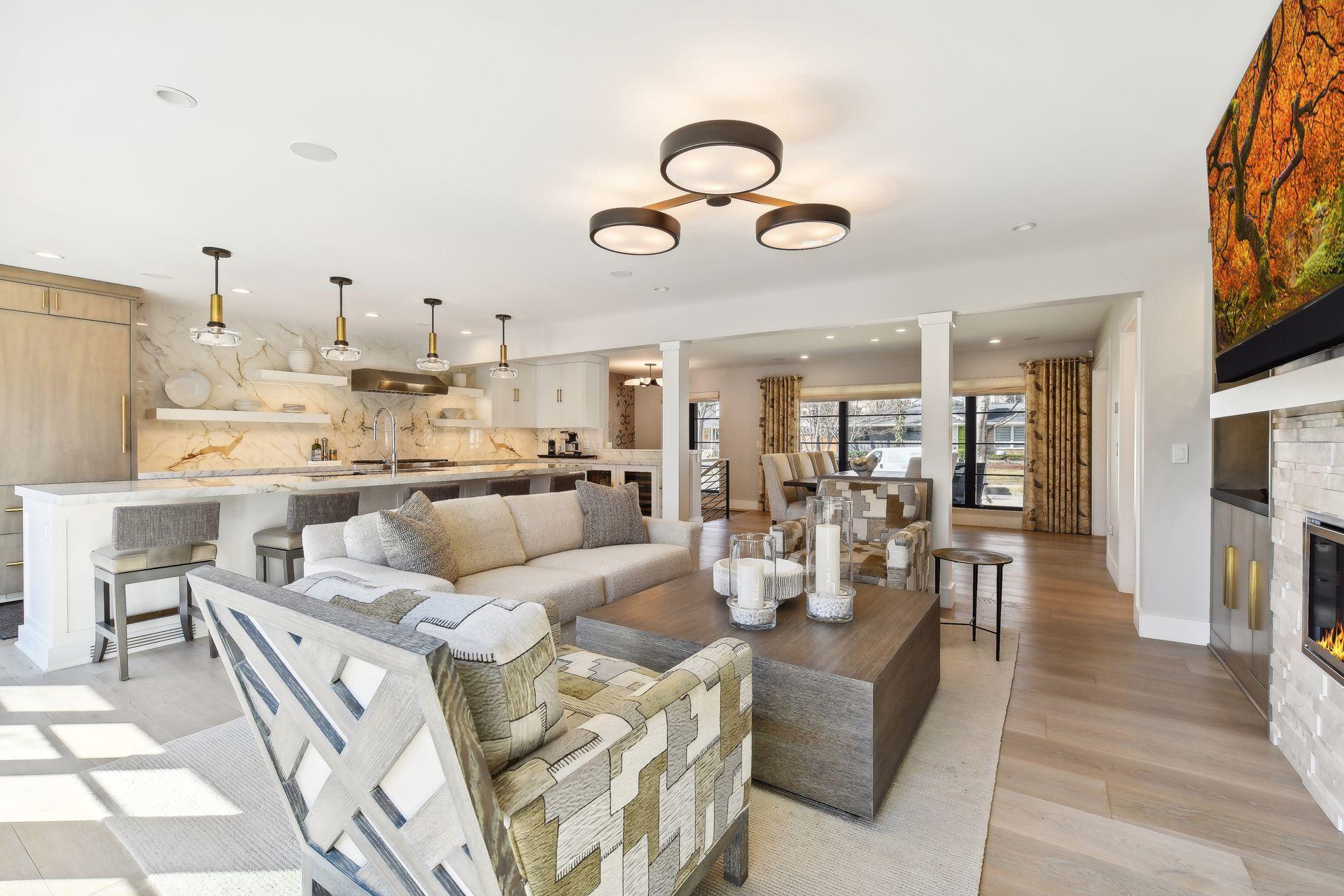 Public Remarks: Completely reimagined in 2021, this whole house transformation, all new, top to bottom, inside & out, offers a stunning modern home that offers true one-level living. Step in to an open-planned kitchen, family and dining area, light filled front to back with walls of windows. The large center-island anchors the kitchen with gorgeous porcelain countertops, mix of white and modern oak cabinetry, plus Wolf, Sub-Zero, and Cove appliances. A generous primary suite addition includes a walk-in-closet, ¾ bath with double vanity and large tray-ceilinged bedroom that overlooks the functional backyard. A second main floor bedroom/office and full bathroom anchors the NW corner. A new mudroom/laundry provides useful storage when entering from the 2-car heated garage. Lower level includes 2 additional bedrooms, ¾ bathroom, and an amusement/flex area, plus extra storage. Connect with neighbors on your front porch or relax outside on your large 350sf deck. Steps to the Lake and Linden Hills!