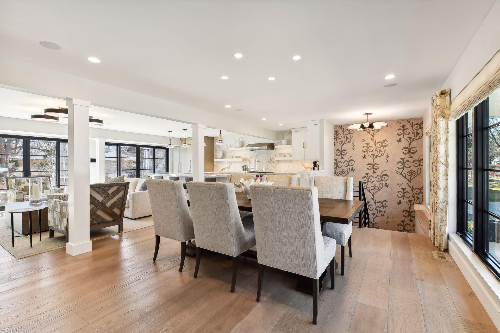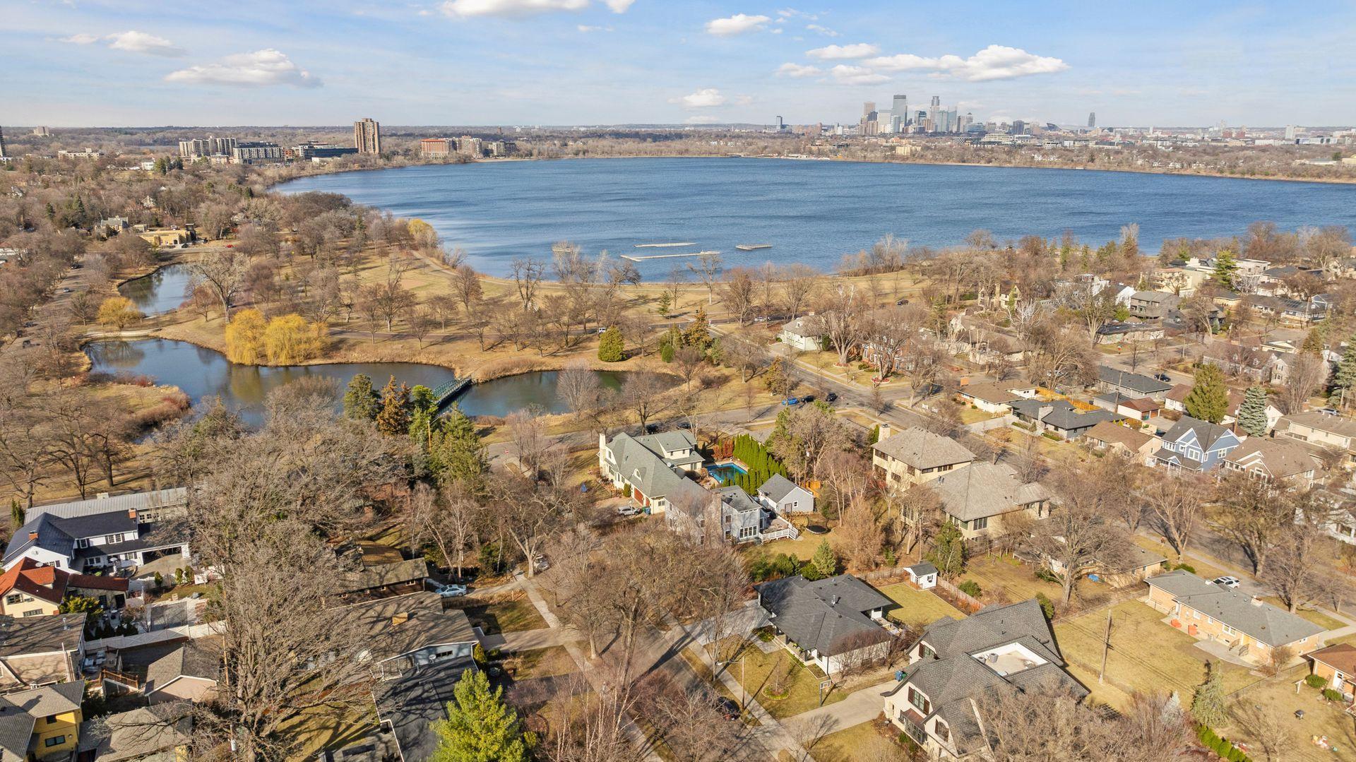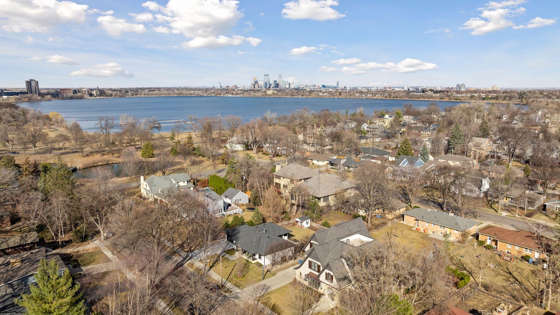 Completely reimagined in 2021, this whole house transformation, all new, top to bottom, inside & out, offers a stunning modern home that offers true one-level living. Step in to an open-planned kitchen, family and dining area, light filled front to back with walls of windows. The large center-island anchors the kitchen with gorgeous porcelain countertops, mix of white and modern oak cabinetry, plus Wolf, Sub-Zero, and Cove appliances. A generous primary suite addition includes a walk-in-closet, ¾ bath with double vanity and large tray-ceilinged bedroom that overlooks the functional backyard. A second main floor bedroom/office and full bathroom anchors the NW corner. A new mudroom/laundry provides useful storage when entering from the 2-car heated garage. Lower level includes 2 additional bedrooms, ¾ bathroom, and an amusement/flex area, plus extra storage. Connect with neighbors on your front porch or relax outside on your large 350sf deck. Steps to the Lake and Linden Hills!