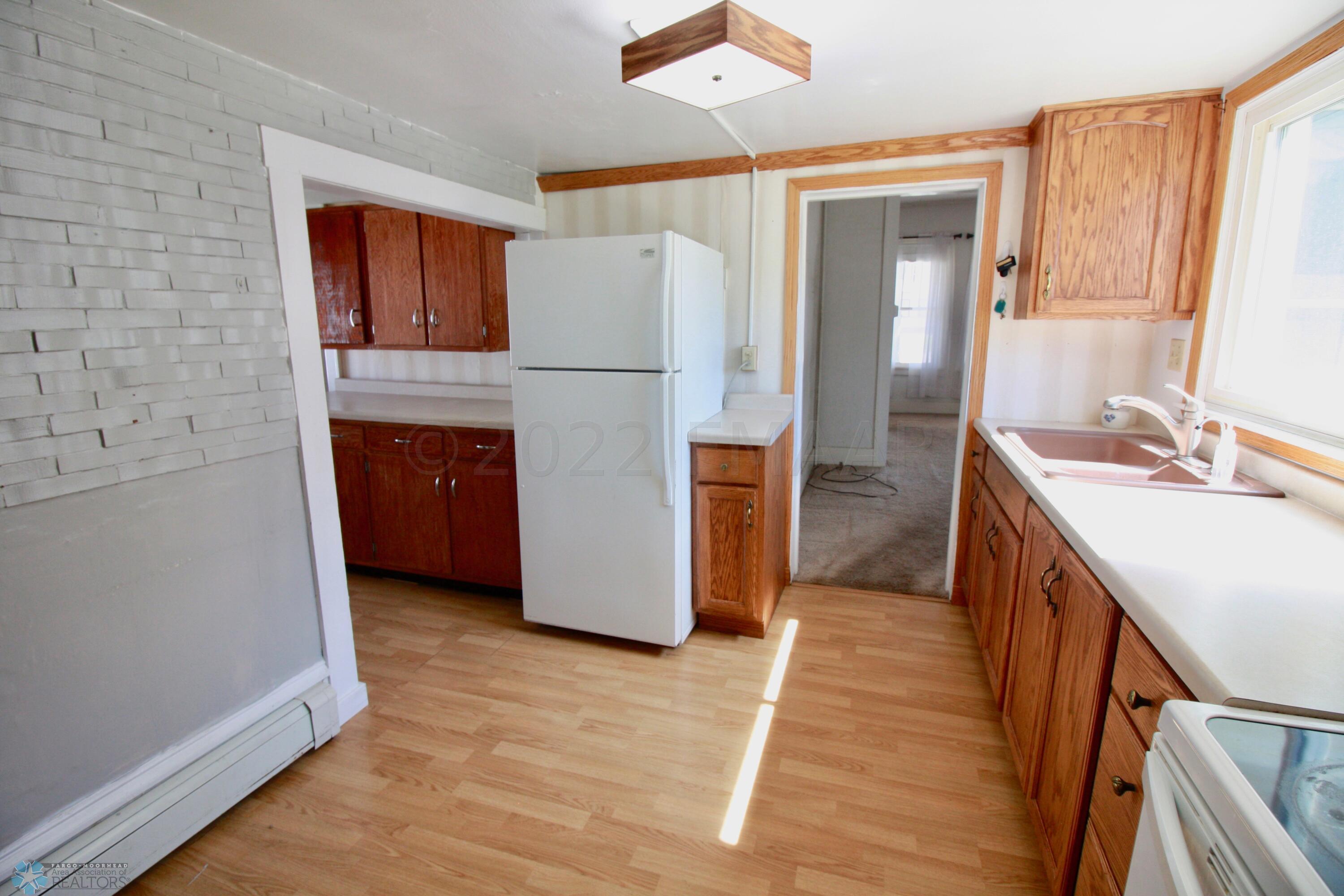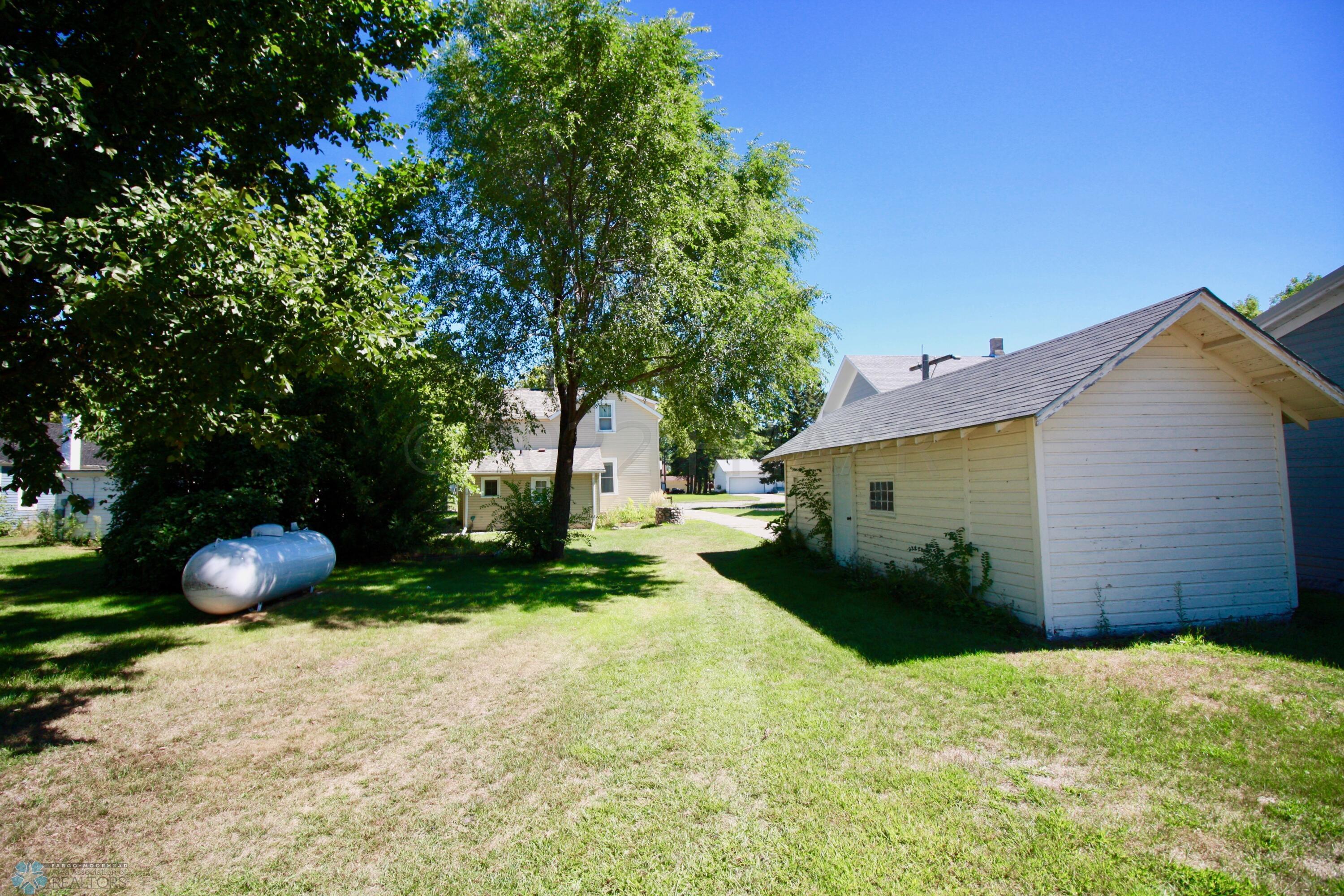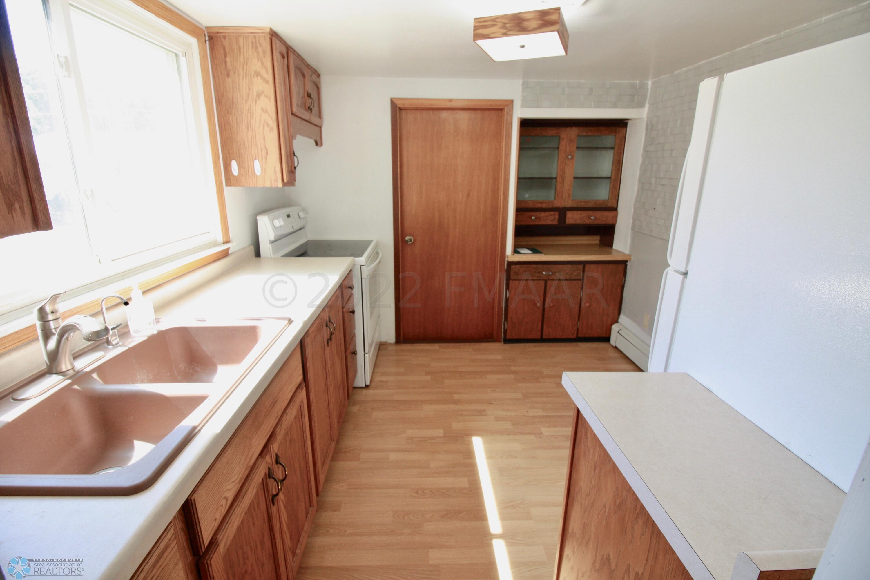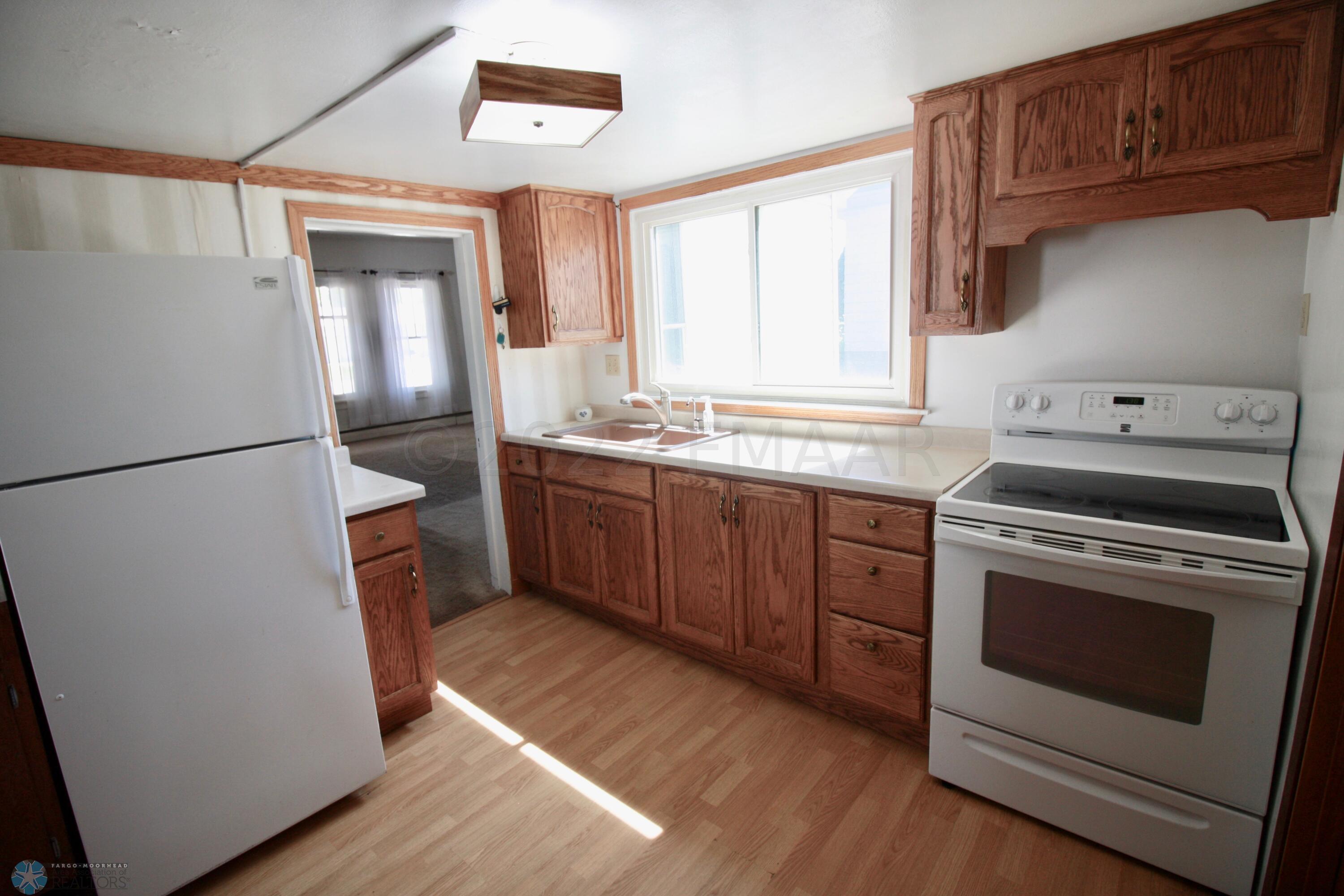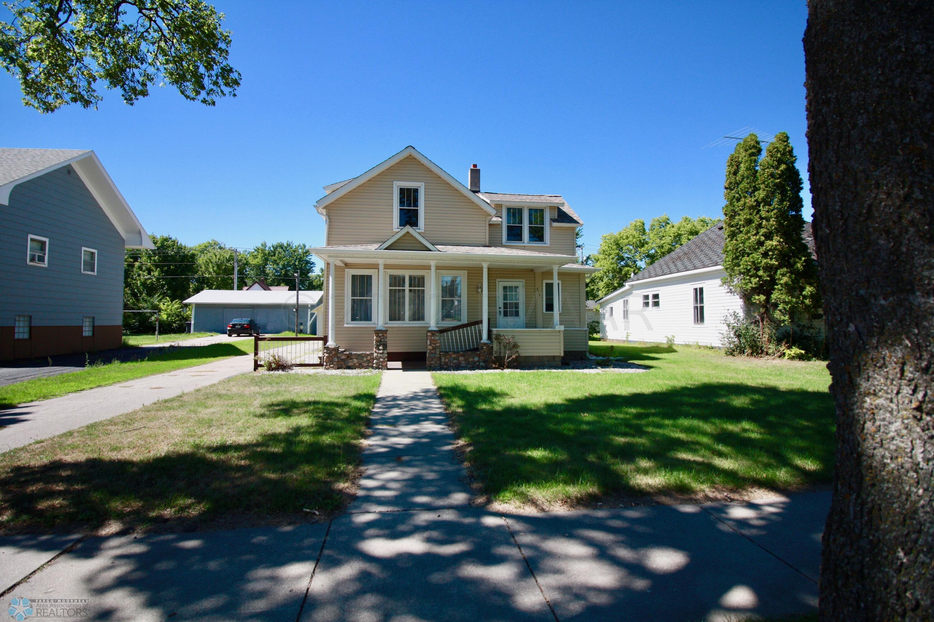 Welcome to this steel sided home, with lifetime shingles, two bedrooms, 2 bathrooms, nine foot ceilings, some newer windows and a ton of potential! This cute bungalow is located within walking distance to the school and all of the amenities of downtown! It has a no worry exterior and waiting for those flooring and paint updates if desired. It boasts two foyers, front and back, newer Dakota cabinets, newer propane boiler and water heater, with a paved driveway and extra long single garage with opener. You won't find a better deal at this price. Call soon for a tour! Conventional financing or cash preferred. Home is sold AS IS.
