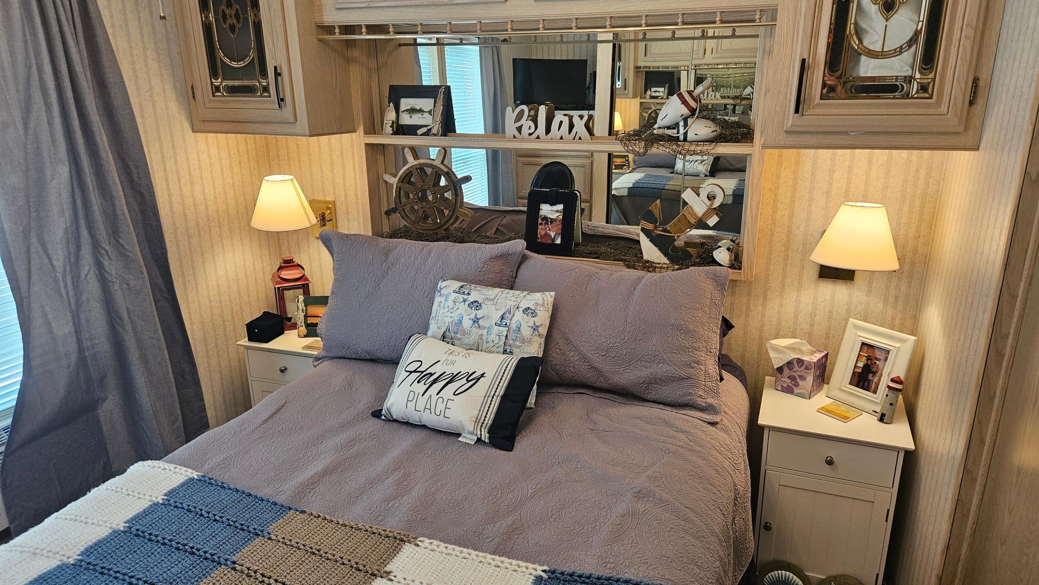 Welcome to your ultimate summer home, This Park home is nestled in prestigious Breakers Of Sunset Bay (Gated Community). This home has a nice sized bedroom with plenty of closet space with an attached bathroom. It has plenty of room for entertaining with its great floorplan. You'll get to enjoy sitting on the patio on those beautiful summer days to watch the stunning sunsets right from your patio. Come take a look at this well cared for home in this well managed association with all the amenities it offers, You get the perks of owning without the hassle of maintenance you'll find the perfect summer home. The community lodge was remodeled in '22 for added comfort and gatherings with a game room and back patio. Separate showers/bathroom/laundry machines located across from the lodge for guests or longer than a weekend stay. Oh, did I mention it's coming furnished. Patio set, grill and much more. Make this home yours before it's gone! Boat slips available for separate fee.