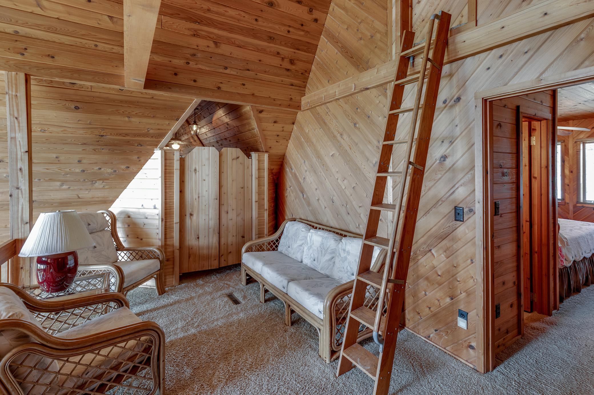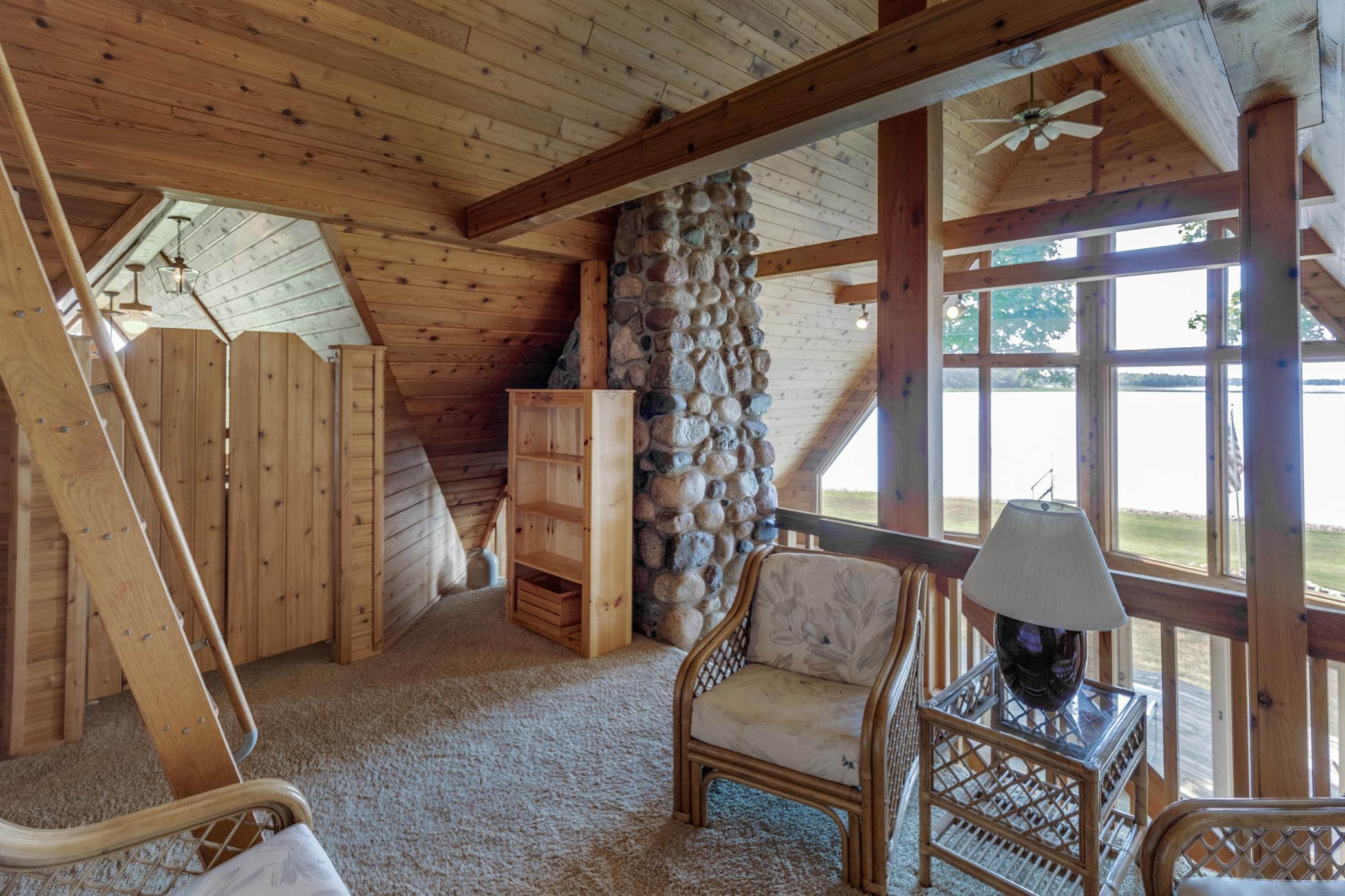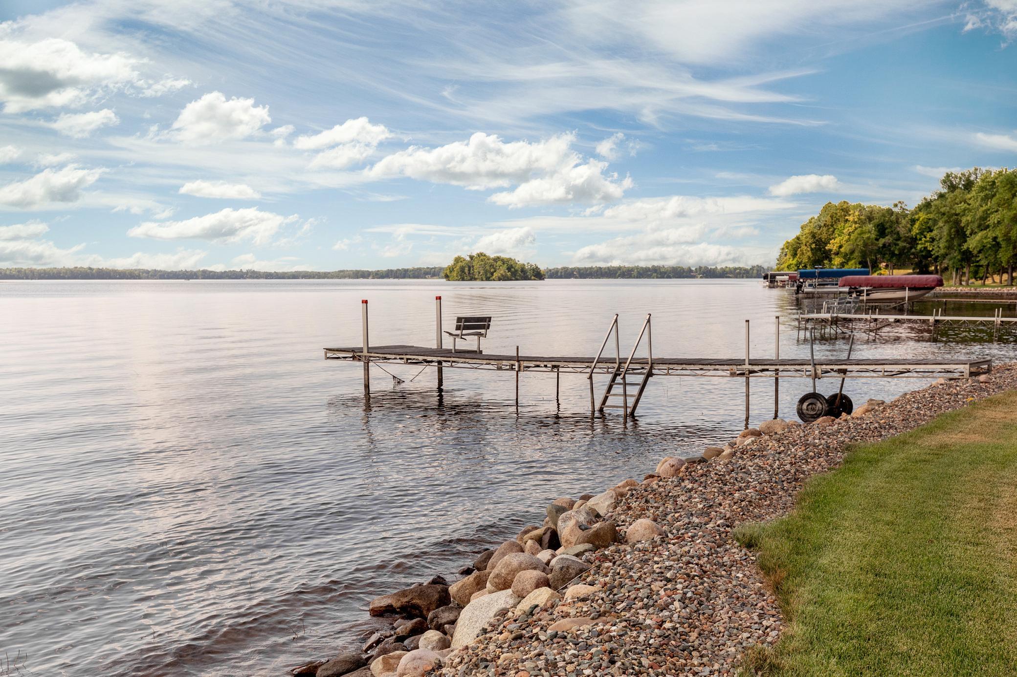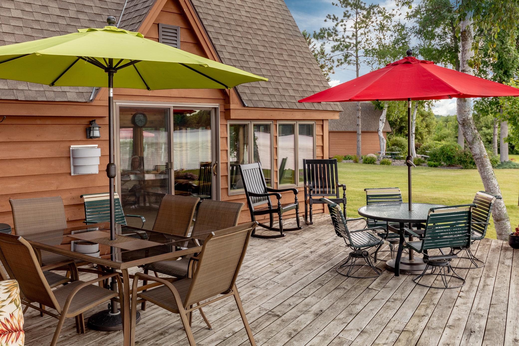 Spectacular grounds with incredible landscaping and flower gardens, and panoramic views with end-of-road privacy on a peninsula overlooking Farm Island Lake! This beautifully maintained cedar-sided home was designed with lake visibility from near every room, including great room and loft, sun room, and every bedroom. Enjoy lakeside entertaining from the wraparound deck, patios or large front yard overlooking more than 650 feet of both hard sand and natural waterfront. A two stall garage and large storage shed round out this stunning property on Farm Island Lake!