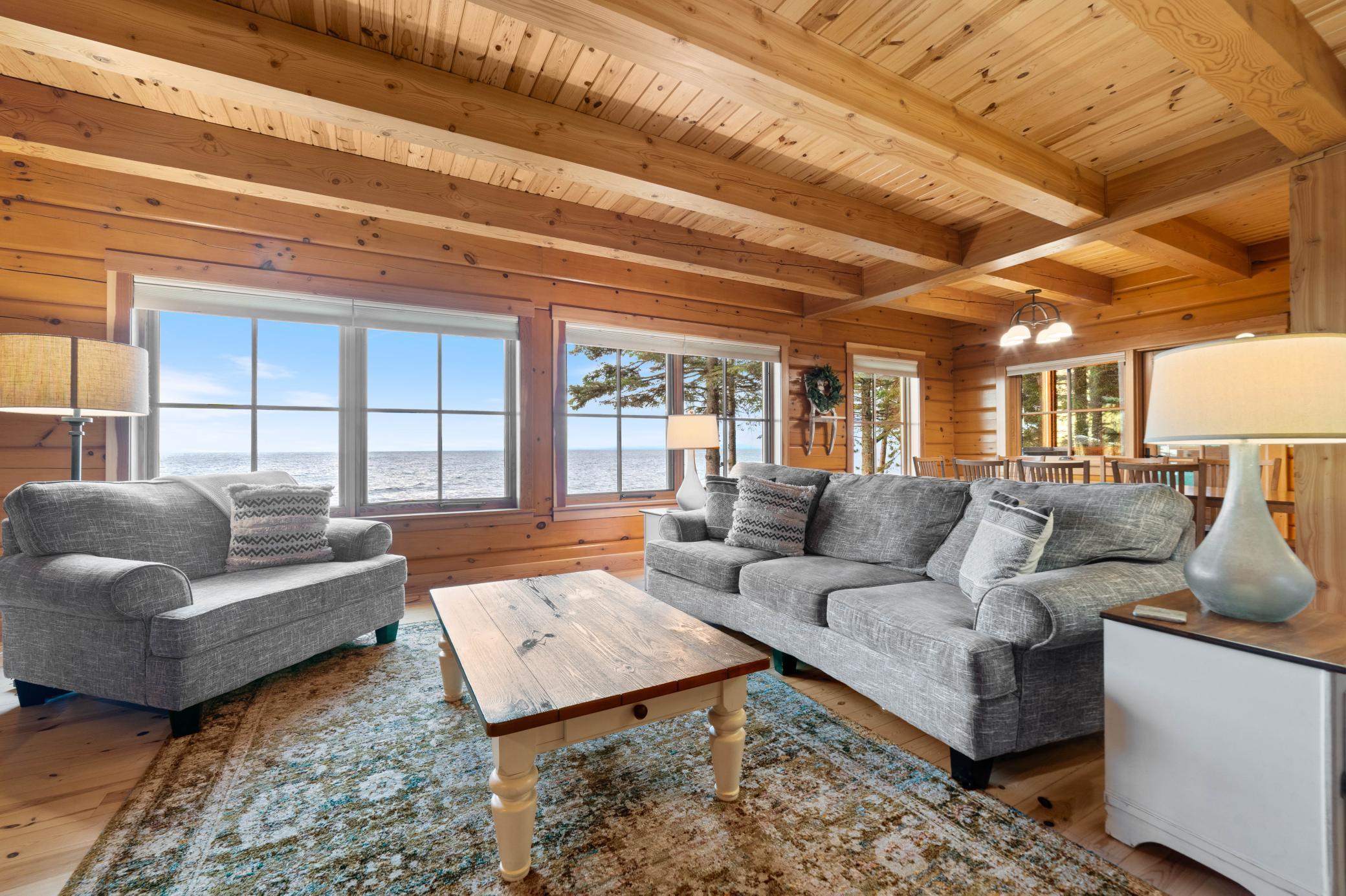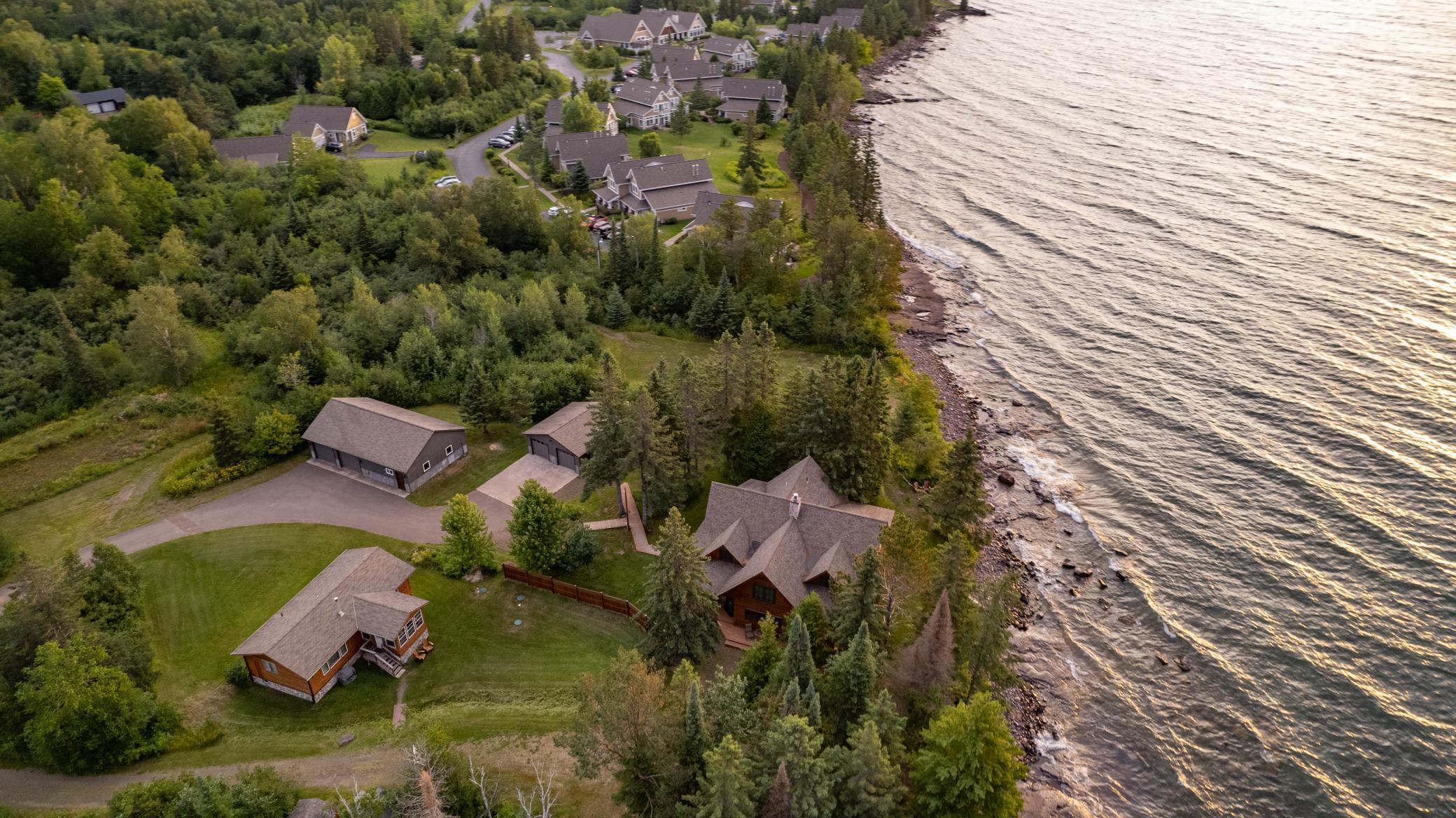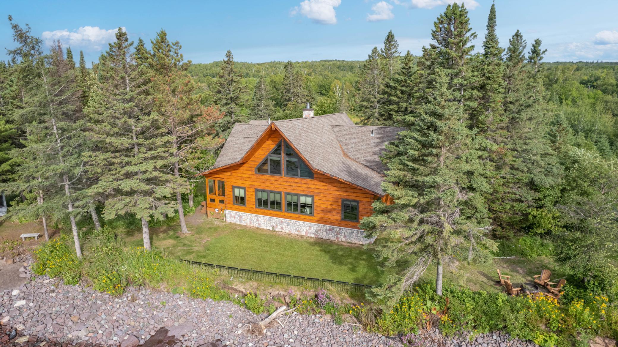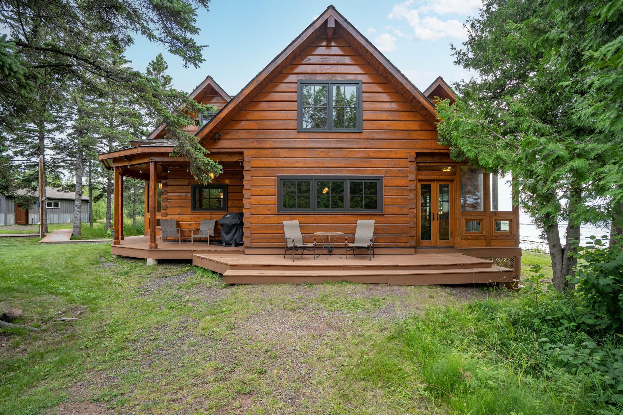 Public Remarks: Beautiful custom log home with guest cabin 2 detached garages and a screen house at the waters edge. This home is stunning with a large kitchen withcenter island and beautiful custom cabinets, large living area with wood burning fireplace that overlooks Lake Superior. The main floor also has an office,bedroom, full bath and laundry area with ample of storage. Upstairs you will find the primary suite with large windows with stunning views, a reading nookand a bedroom. The property includes a 46x28 heated & insulated garage, a 24x24 garage, screen house just inches from the water, and a guest house.The guest house is 20x40 with a 12x12 sun room, a large king bedroom and a living/kitchen that looks to the lake. This 11 acre property is zonedcommercial/resort and can host rentals with the county.